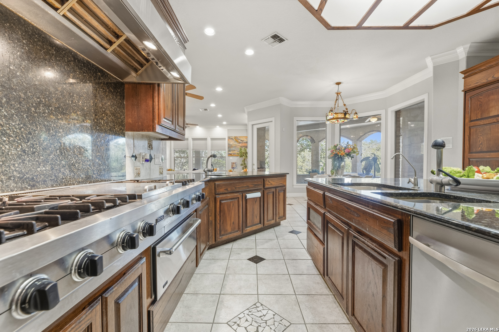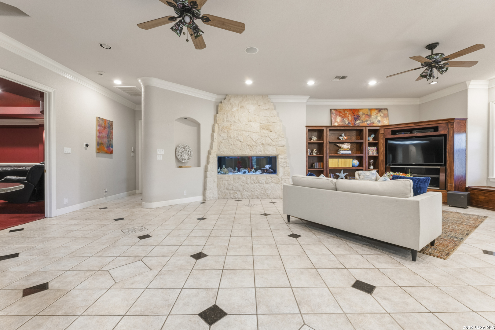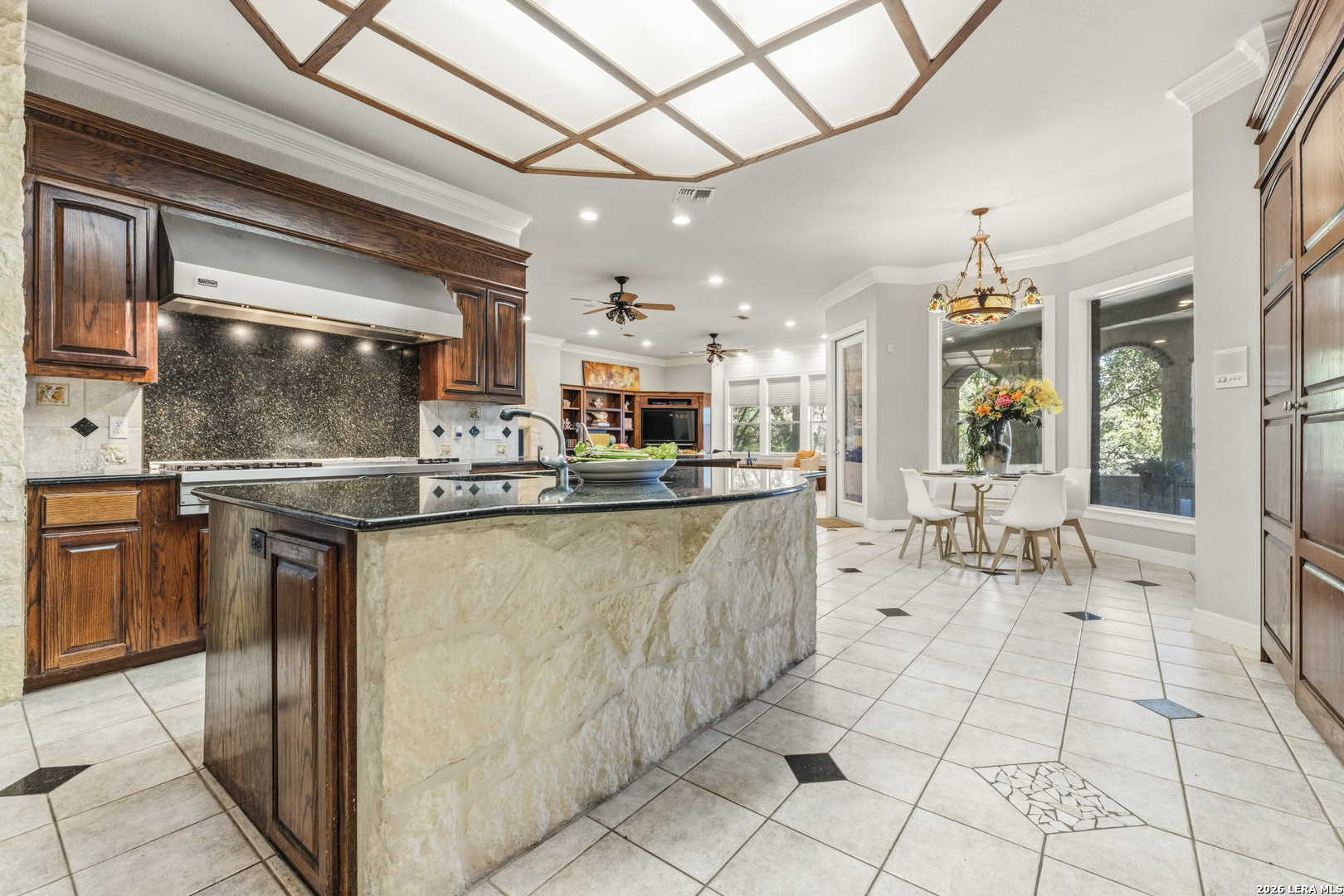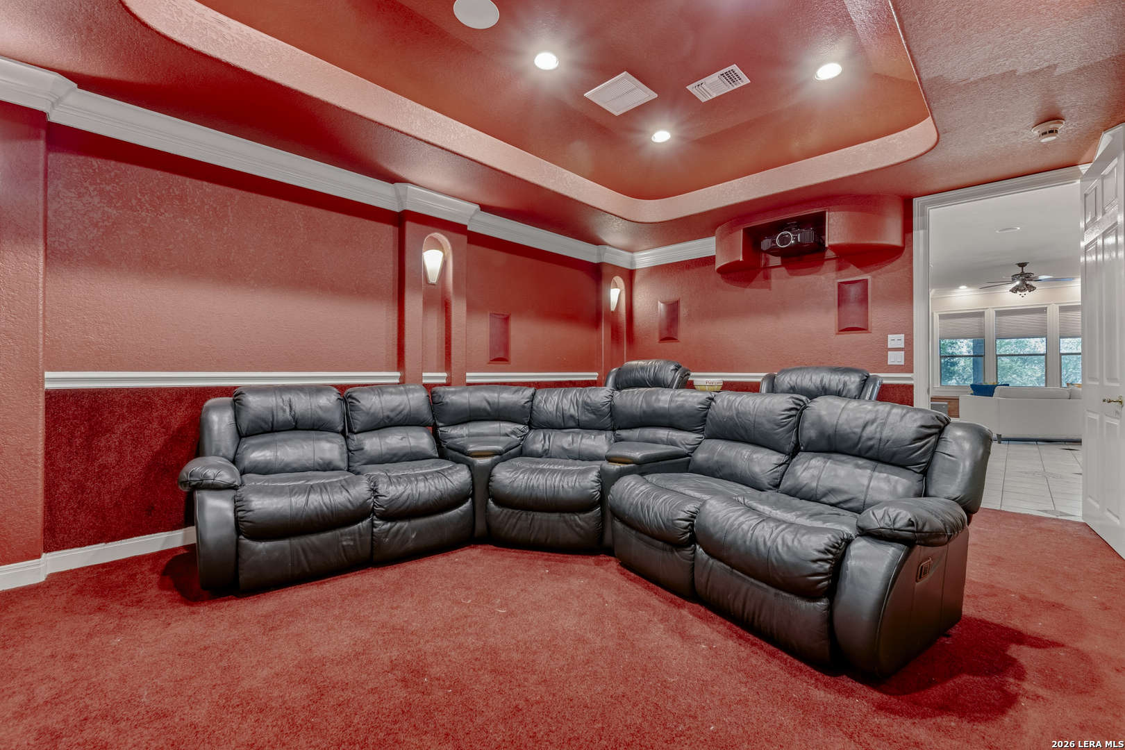 Welcome to your new, stunning home in Greystone where comfort, space, and Texas charm come together in a highly desirable San Antonio location! This beautifully maintained home offers a warm and inviting layout with generous living spaces, perfect for both everyday living and entertaining. This home is equipped with Solar Panels that will bring the electricity down. You have the added security of a guard gated community. Step inside to find an open-concept floor plan filled with natural light, featuring a spacious living area that flows seamlessly into the kitchen and dining space. The kitchen is a true centerpiece, complete with ample custom cabinetry, modern appliances, and plenty of counter space for meal prep or hosting gatherings. the sub-zero refrigerator and freezer are included. The woodwork in the home is absolutely gorgeous. You will absolutely enjoy the theater in this home, invite family or friends over for a fun, entertaining evening. Every bedroom has its own ensuite private bathroom. This home also features two primary suites. The primary suite provides a relaxing retreat with a well-appointed ensuite bath that features a separate walk in shower and garden tub and two walk-in closets, and is ready to be your own private retreat. Additional bedrooms are generously sized, offering flexibility for family, guests, or a secondary home office. You will also love having the game room upstairs, which can be a versatile room as well, for you. Designed with both elegance and intrigue, the home also showcases 3 custom Murphy doors-offering seamless hidden entryways that add character, privacy, and a touch of sophistication. Outside, enjoy a private backyard ideal for weekend barbecues, morning coffee, or simply unwinding after a long day. Whether you're entertaining or enjoying quiet evenings, this outdoor space is ready for it all. Conveniently located near shopping, dining, and major highways, this home offers the perfect balance of tranquility and accessibility. Don't miss your opportunity to own a move-in-ready gem in one of San Antonio's sought-after areas