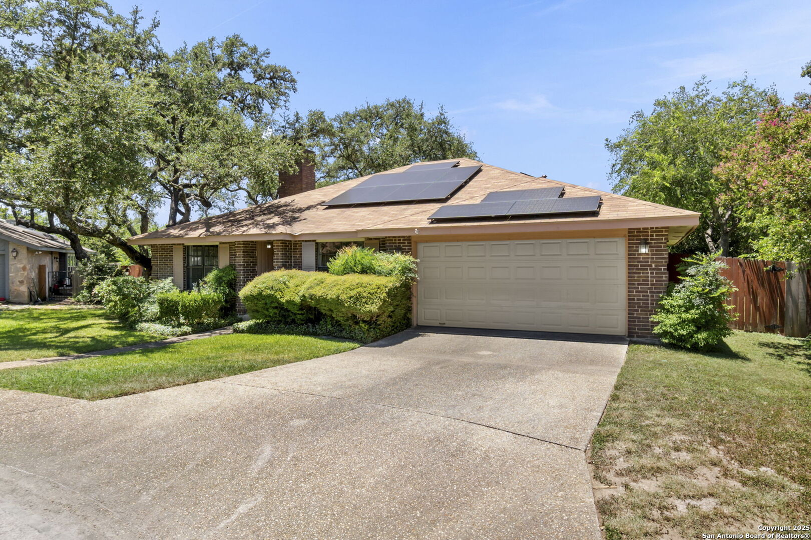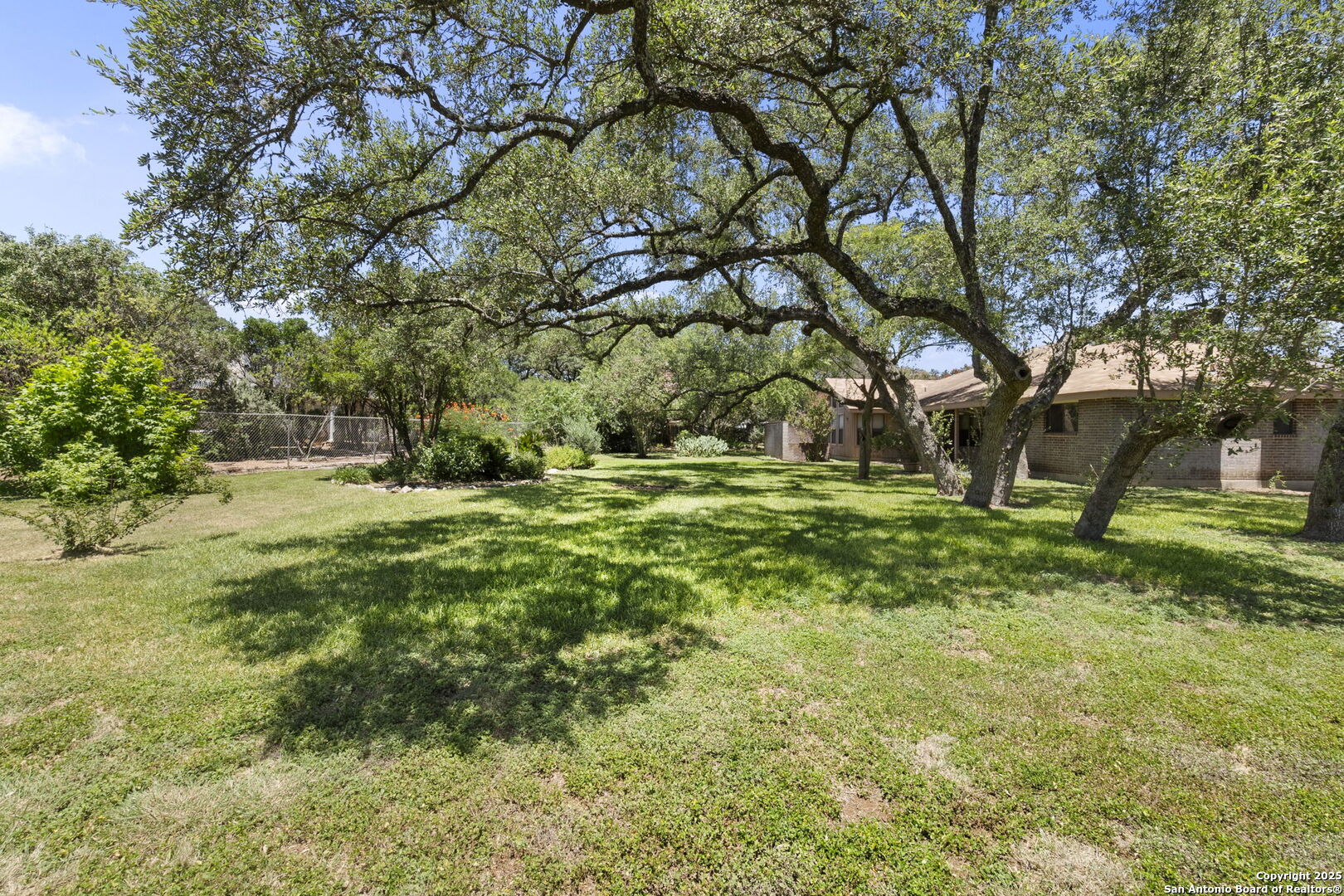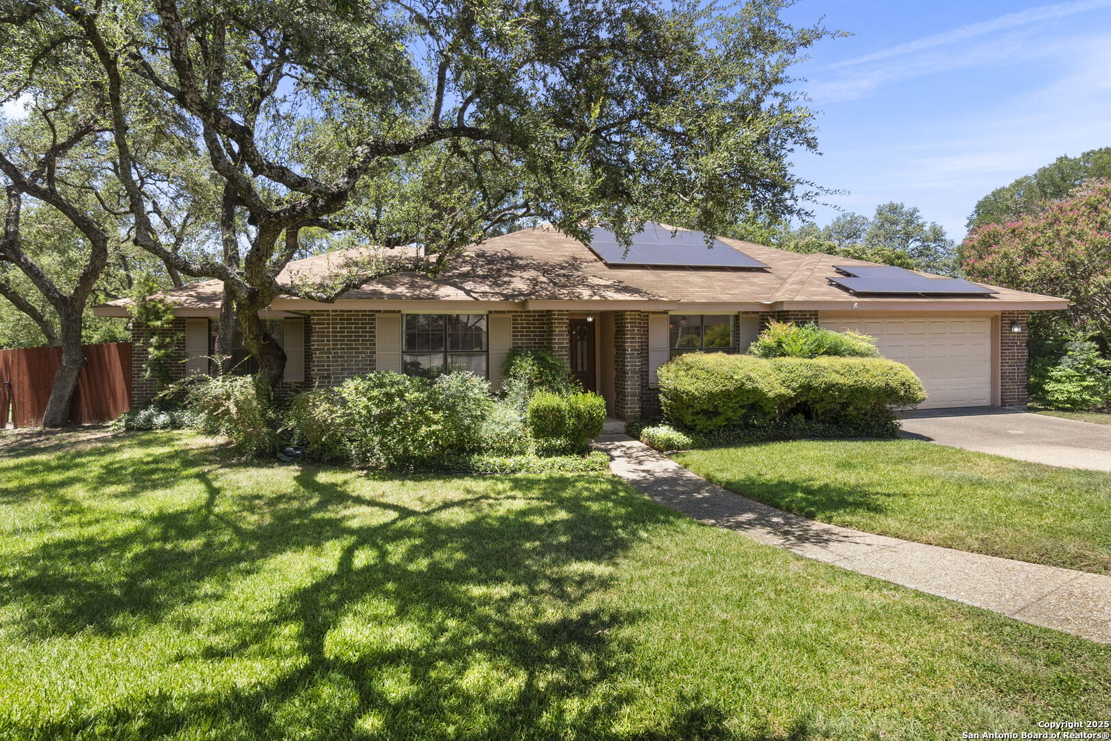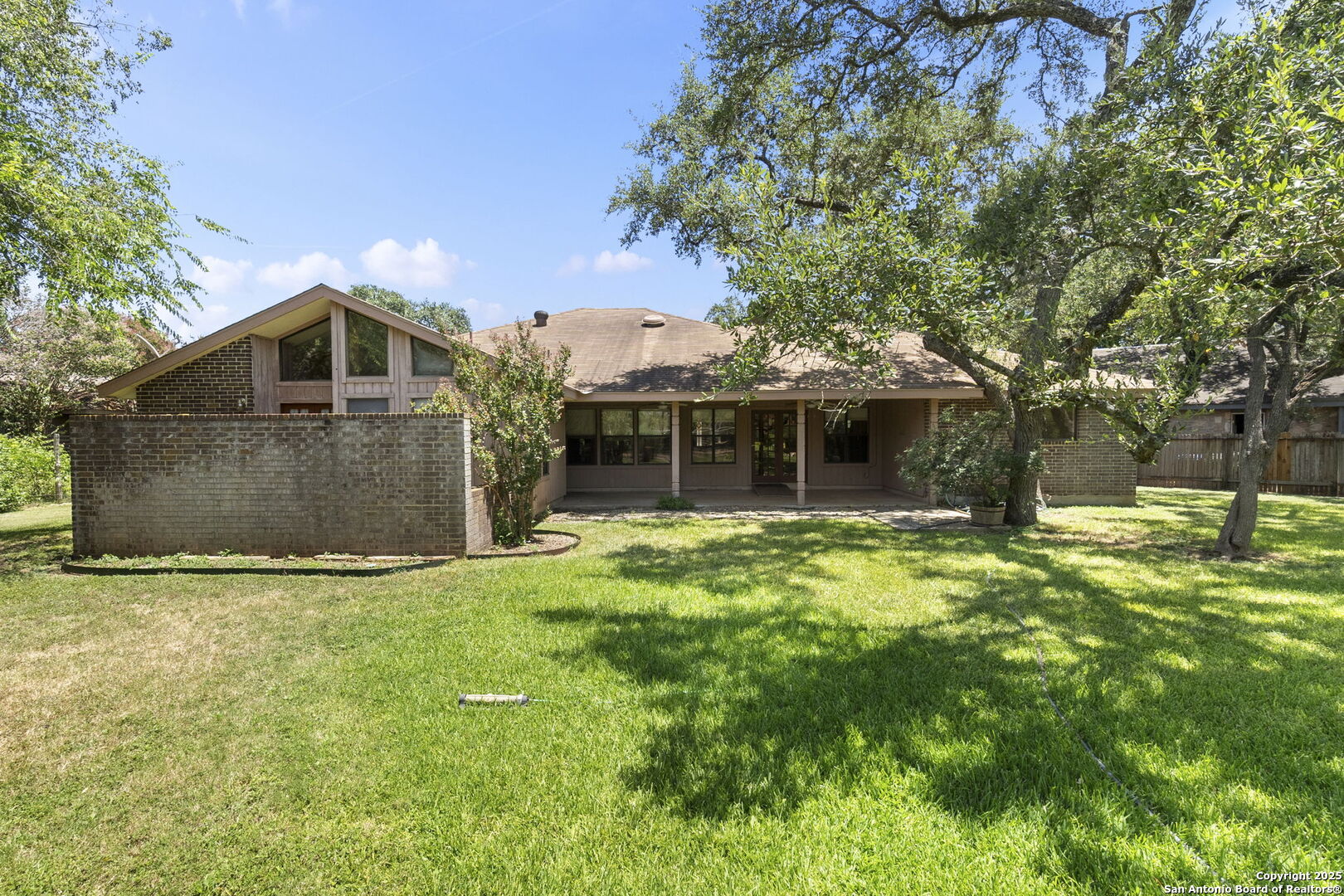 Charming & adorable one story, thoughtfully laid out with custom features & designer touches*Located in the beautifully planned, established section of Encino Park with wide lots, pretty streets & excellent amenities*Home on a small cul de sac enhanced with heritage trees, lush landscaping & attractive homes*Wonderful open layout with 2 living & two dining areas*The entry foyer is flanked by the living room on the left & dining on the right*Just beyond, relax & enjoy the unified space of the casual living room, island kitchen & breakfast area - perfect for entertaining or personal retreat*Private primary suite has outdoor access to the covered patio and includes a stunning spa bath with lots of windows & peaked ceilings & French doors to a bricked courtyard*Highlights include a cozy two sided brick fireplace between the two living areas, a wet bar, island kitchen*Wood cabinets galore with matching wood trim & window sills*Delightful vintage fixtures*Ample laundry room with lots of cabinets, large utility sink, refrigerator space*Versatile bonus room beyond the utility room that can be used as a space-efficient office, hobby room, pantry or storage*Enjoy outdoor living on the generous covered patio with views of the heritage trees & attractive landscaping*Fantastic 1/3 of an acre lot with raised beds for gardening, plenty of room for a pool, ADU & outdoor recreation*Solar panels, replaced roof, & HVAC are added values*Ideally located off Hwy 281, near Loop 1604, close to major shopping, dining & entertainment*Acclaimed NorthEast ISD Schools*