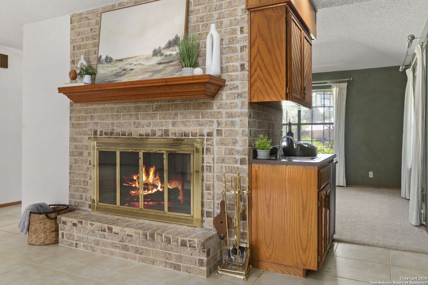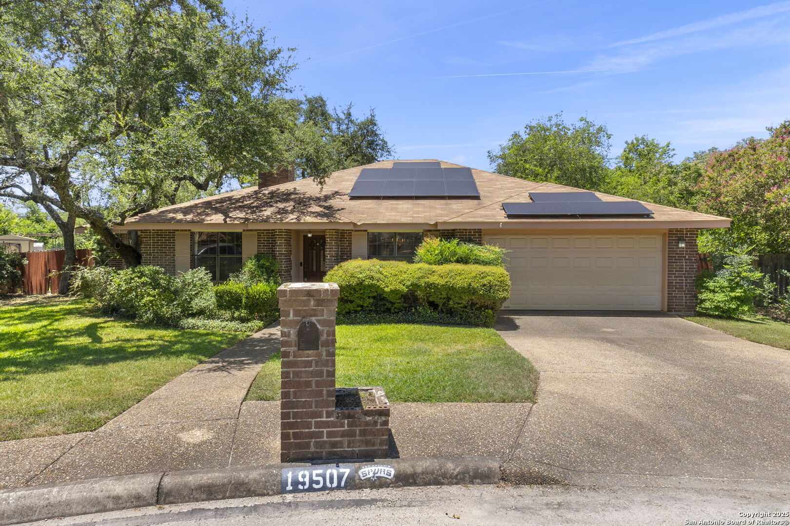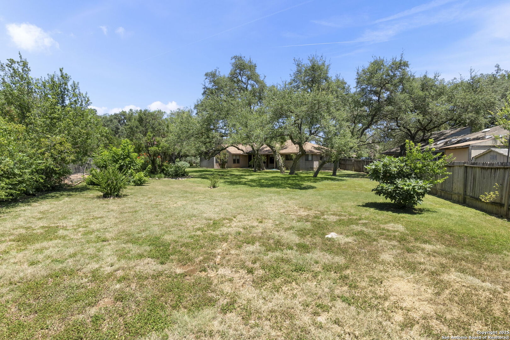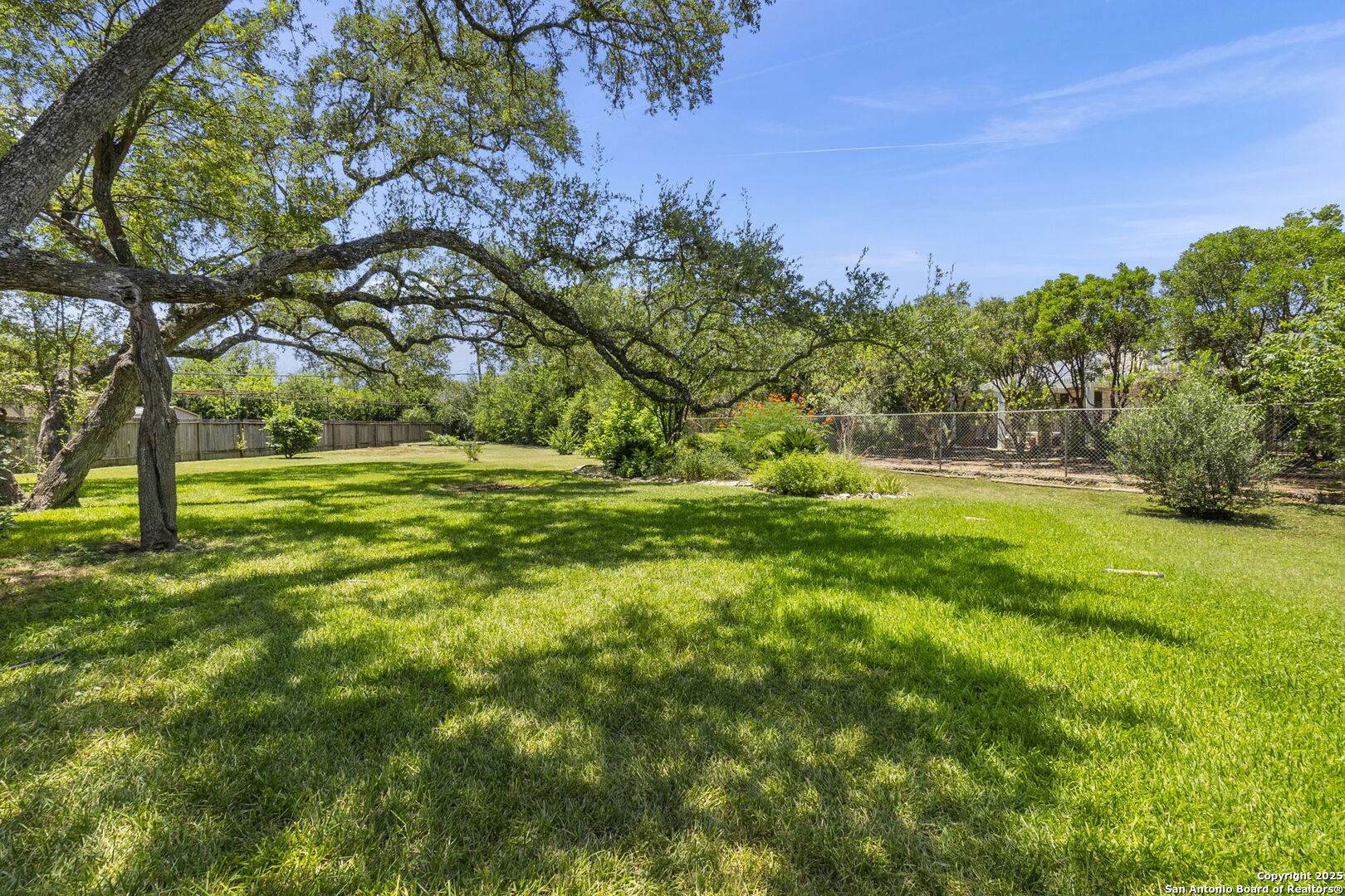 Charming & adorable one story, thoughtfully laid out with custom features & designer touches*Located in the beautifully planned, established section of Encino Park with wide lots, pretty streets & excellent amenities*Home on a small cul de sac enhanced with heritage trees, lush landscaping & attractive homes*Wonderful open layout with 2 living & two dining areas*The entry foyer is flanked by the living room on the left & dining on the right*Just beyond, relax & enjoy the unified space of the casual living room, island kitchen & breakfast area - perfect for entertaining or personal retreat*Private primary suite has outdoor access to the covered patio and includes a stunning spa bath with lots of windows & peaked ceilings & French doors to a bricked courtyard*Highlights include a cozy two sided brick fireplace between the two living areas, a wet bar, island kitchen*Wood cabinets galore with matching wood trim & window sills*Delightful vintage fixtures*Ample laundry room with lots of cabinets, large utility sink, refrigerator space*Versatile bonus room beyond the utility room that can be used as a space-efficient office, hobby room, pantry or storage*Enjoy outdoor living on the generous covered patio with views of the heritage trees & attractive landscaping*Fantastic 1/3 of an acre lot with raised beds for gardening, plenty of room for a pool, ADU & outdoor recreation*Solar panels, replaced roof, & HVAC are added values*Ideally located off Hwy 281, near Loop 1604, close to major shopping, dining & entertainment*Acclaimed NorthEast ISD Schools*
