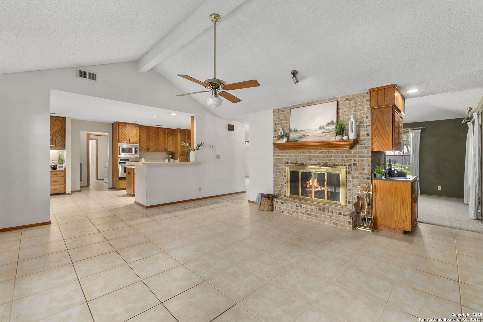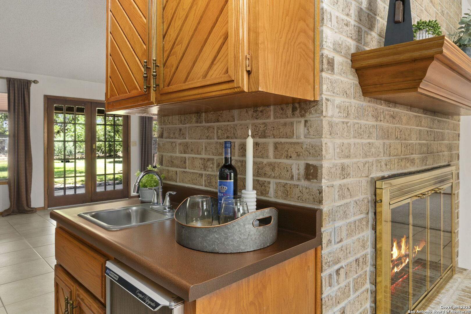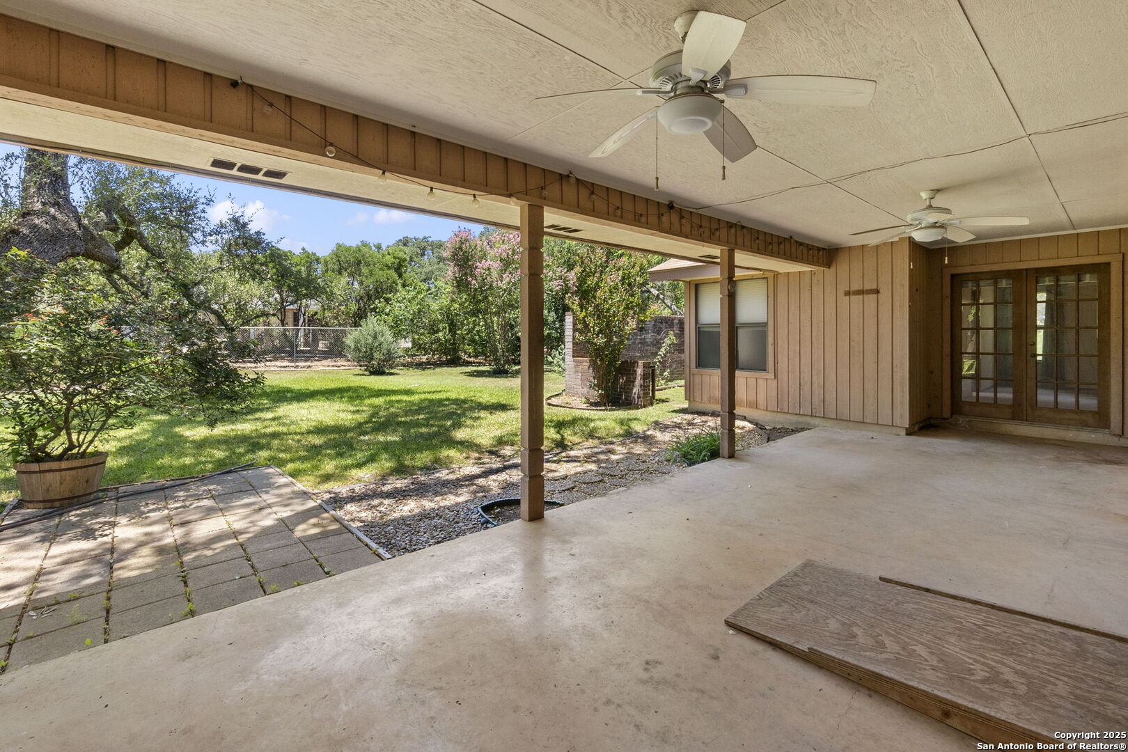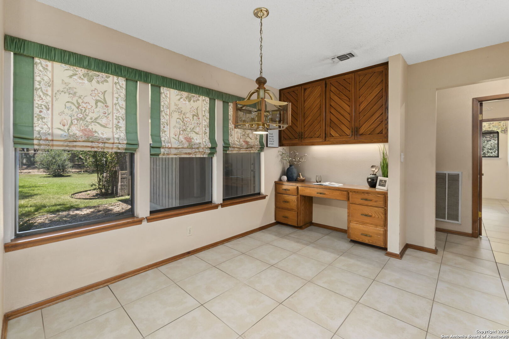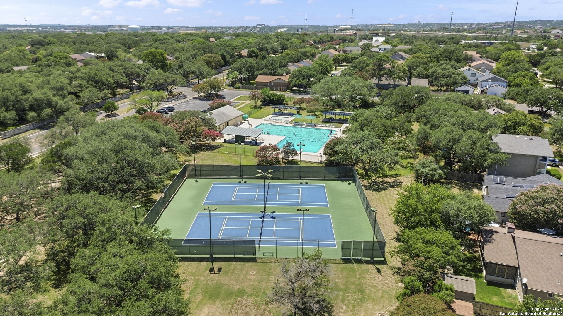 Charming & adorable one story, thoughtfully laid out with custom features & designer touches*Located in the beautifully planned, established section of Encino Park with wide lots, pretty streets & excellent amenities*Home on a small cul de sac enhanced with heritage trees, lush landscaping & attractive homes*Wonderful open layout with 2 living & two dining areas*The entry foyer is flanked by the living room on the left & dining on the right*Just beyond, relax & enjoy the unified space of the casual living room, island kitchen & breakfast area - perfect for entertaining or personal retreat*Private primary suite has outdoor access to the covered patio and includes a stunning spa bath with lots of windows & peaked ceilings & French doors to a bricked courtyard*Highlights include a cozy two sided brick fireplace between the two living areas, a wet bar, island kitchen*Wood cabinets galore with matching wood trim & window sills*Delightful vintage fixtures*Ample laundry room with lots of cabinets, large utility sink, refrigerator space*Versatile bonus room beyond the utility room that can be used as a space-efficient office, hobby room, pantry or storage*Enjoy outdoor living on the generous covered patio with views of the heritage trees & attractive landscaping*Fantastic 1/3 of an acre lot with raised beds for gardening, plenty of room for a pool, ADU & outdoor recreation*Solar panels, replaced roof, & HVAC are added values*Ideally located off Hwy 281, near Loop 1604, close to major shopping, dining & entertainment*Acclaimed NorthEast ISD Schools*