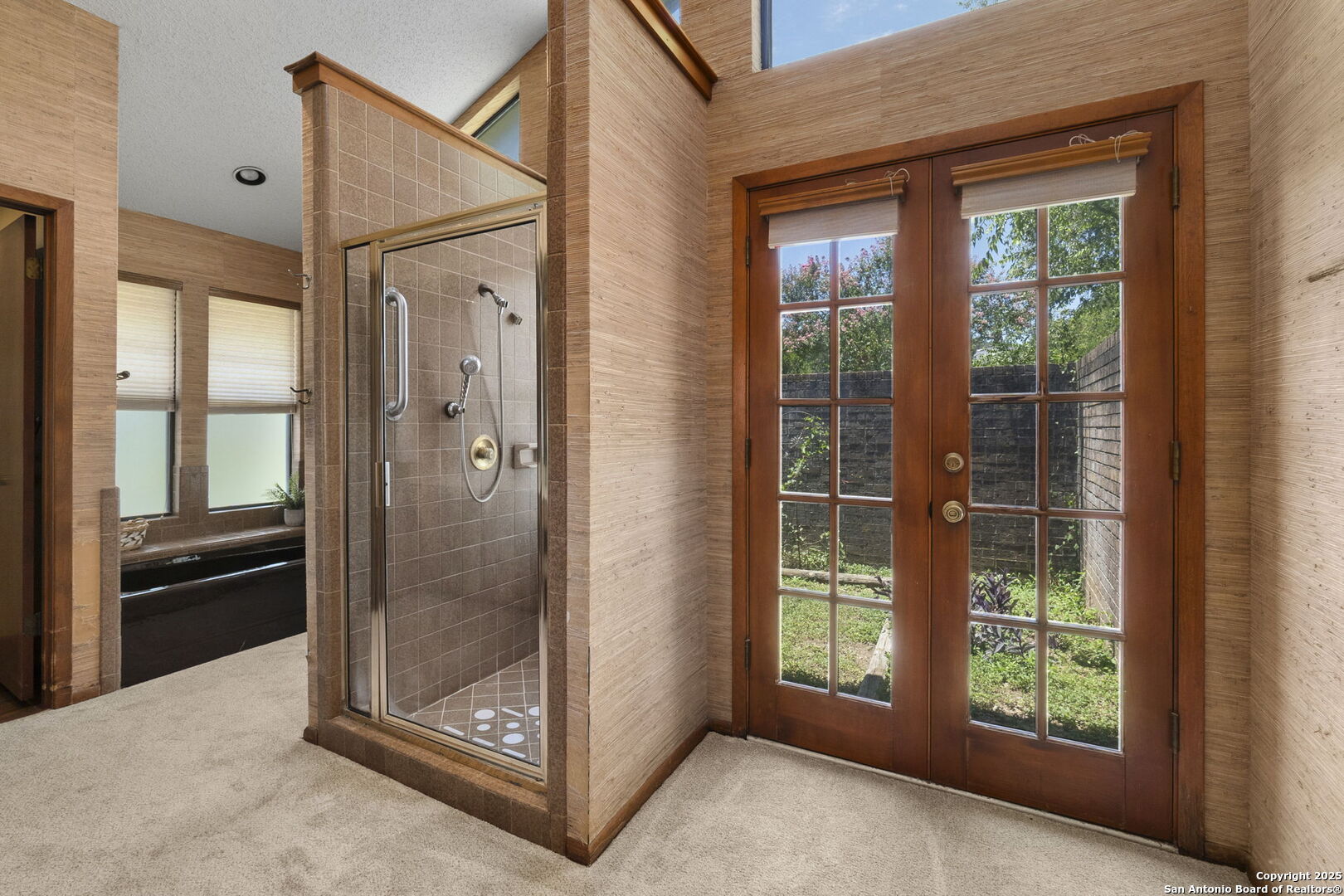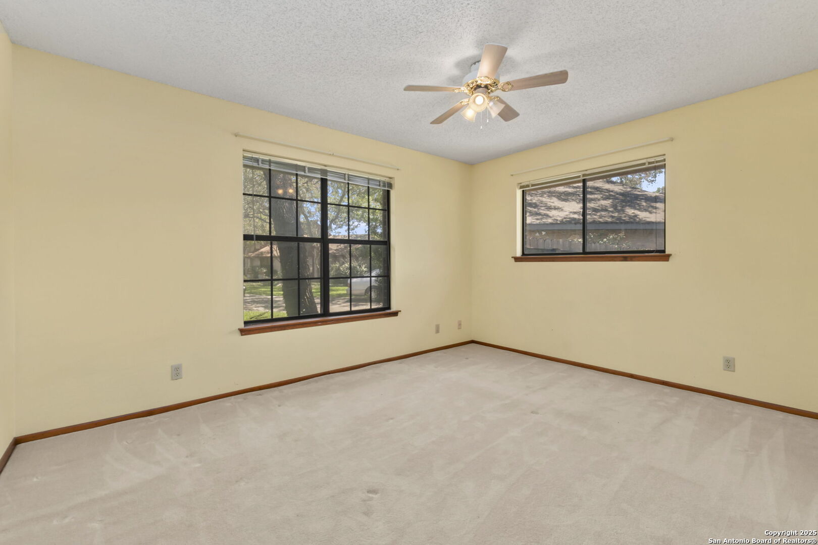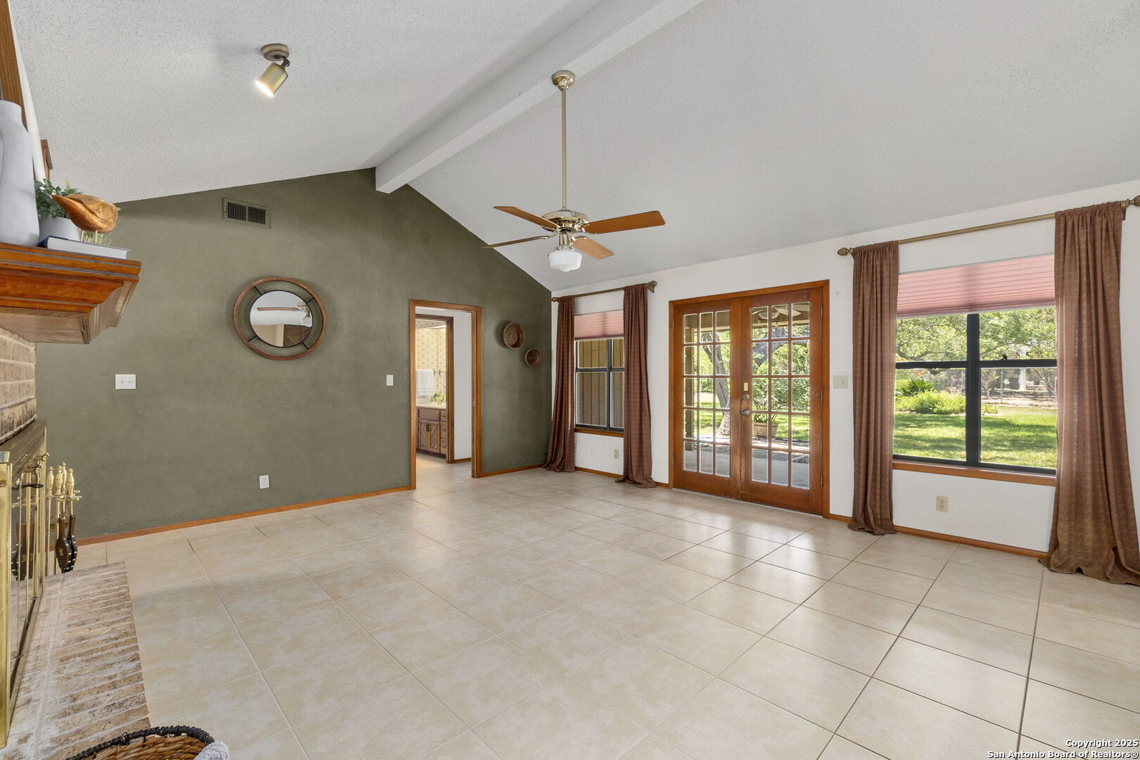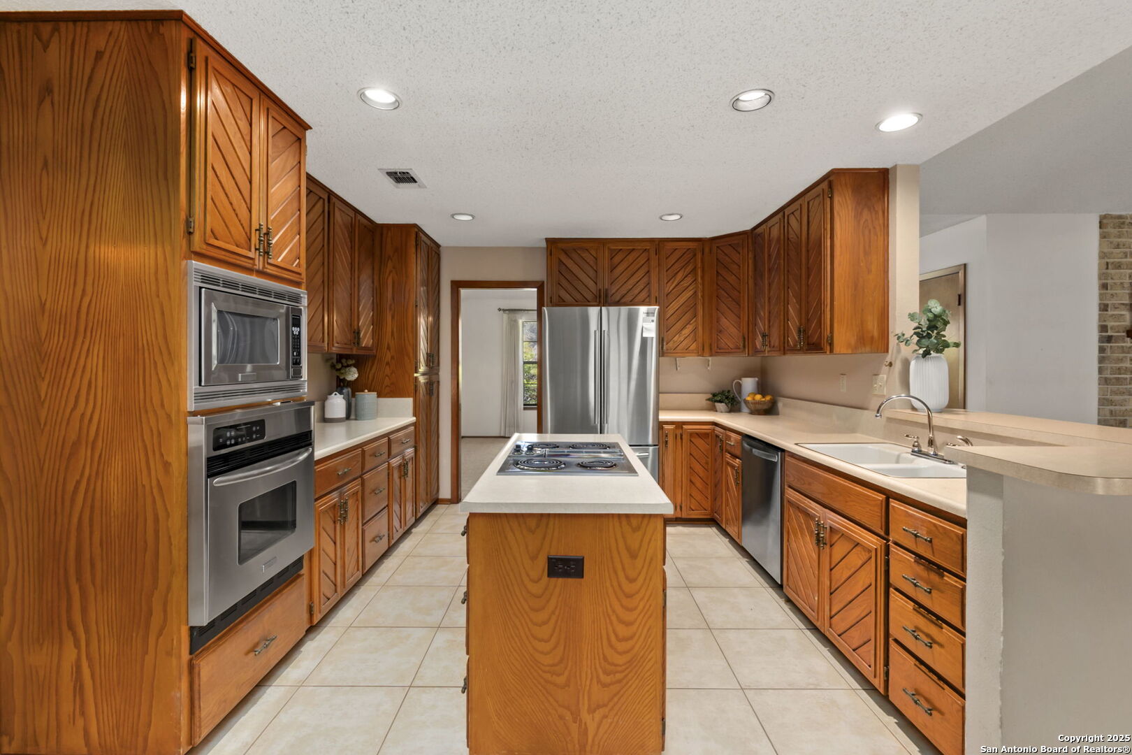 Charming & adorable one story, thoughtfully laid out with custom features & designer touches*Located in the beautifully planned, established section of Encino Park with wide lots, pretty streets & excellent amenities*Home on a small cul de sac enhanced with heritage trees, lush landscaping & attractive homes*Wonderful open layout with 2 living & two dining areas*The entry foyer is flanked by the living room on the left & dining on the right*Just beyond, relax & enjoy the unified space of the casual living room, island kitchen & breakfast area - perfect for entertaining or personal retreat*Private primary suite has outdoor access to the covered patio and includes a stunning spa bath with lots of windows & peaked ceilings & French doors to a bricked courtyard*Highlights include a cozy two sided brick fireplace between the two living areas, a wet bar, island kitchen*Wood cabinets galore with matching wood trim & window sills*Delightful vintage fixtures*Ample laundry room with lots of cabinets, large utility sink, refrigerator space*Versatile bonus room beyond the utility room that can be used as a space-efficient office, hobby room, pantry or storage*Enjoy outdoor living on the generous covered patio with views of the heritage trees & attractive landscaping*Fantastic 1/3 of an acre lot with raised beds for gardening, plenty of room for a pool, ADU & outdoor recreation*Solar panels, replaced roof, & HVAC are added values*Ideally located off Hwy 281, near Loop 1604, close to major shopping, dining & entertainment*Acclaimed NorthEast ISD Schools*