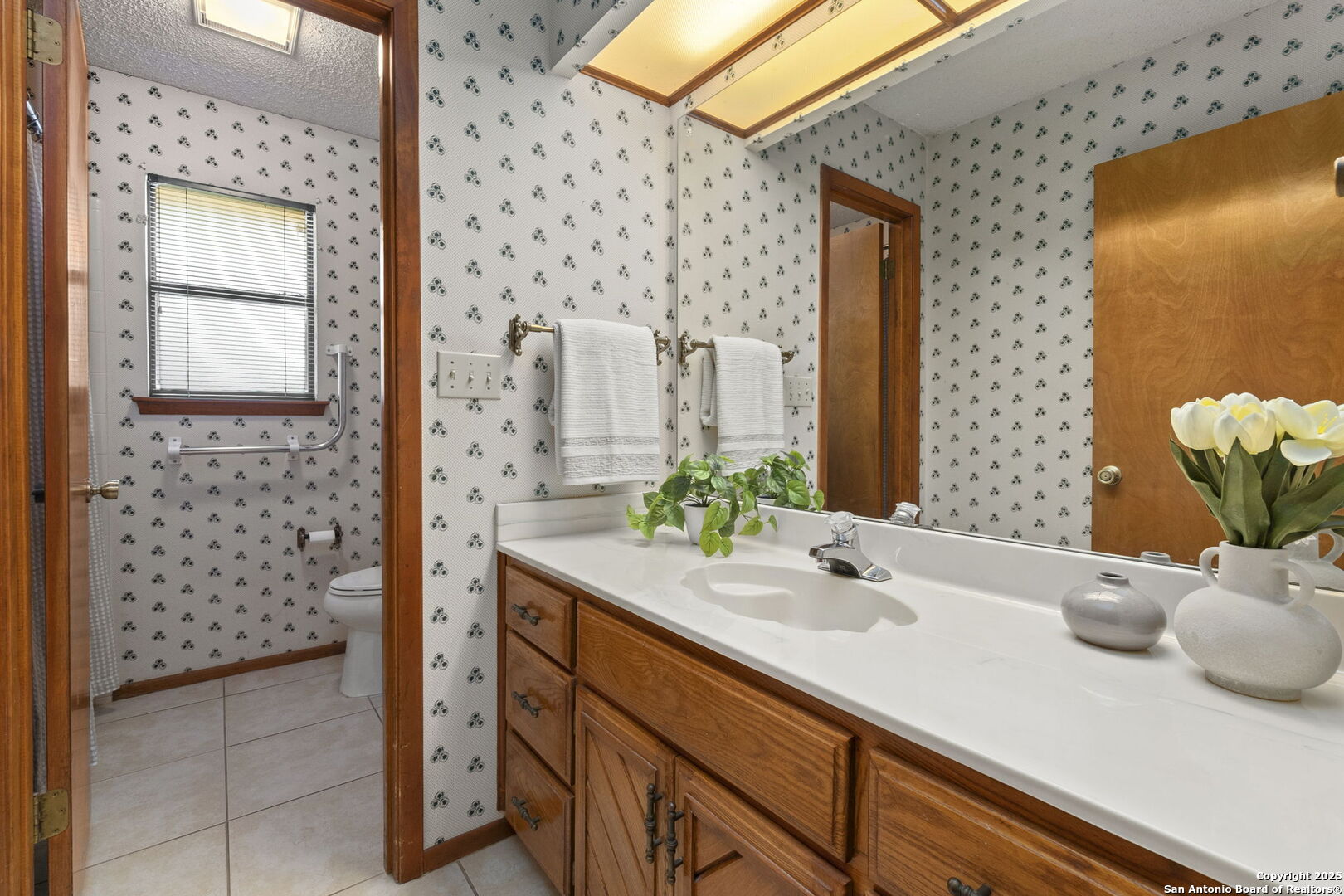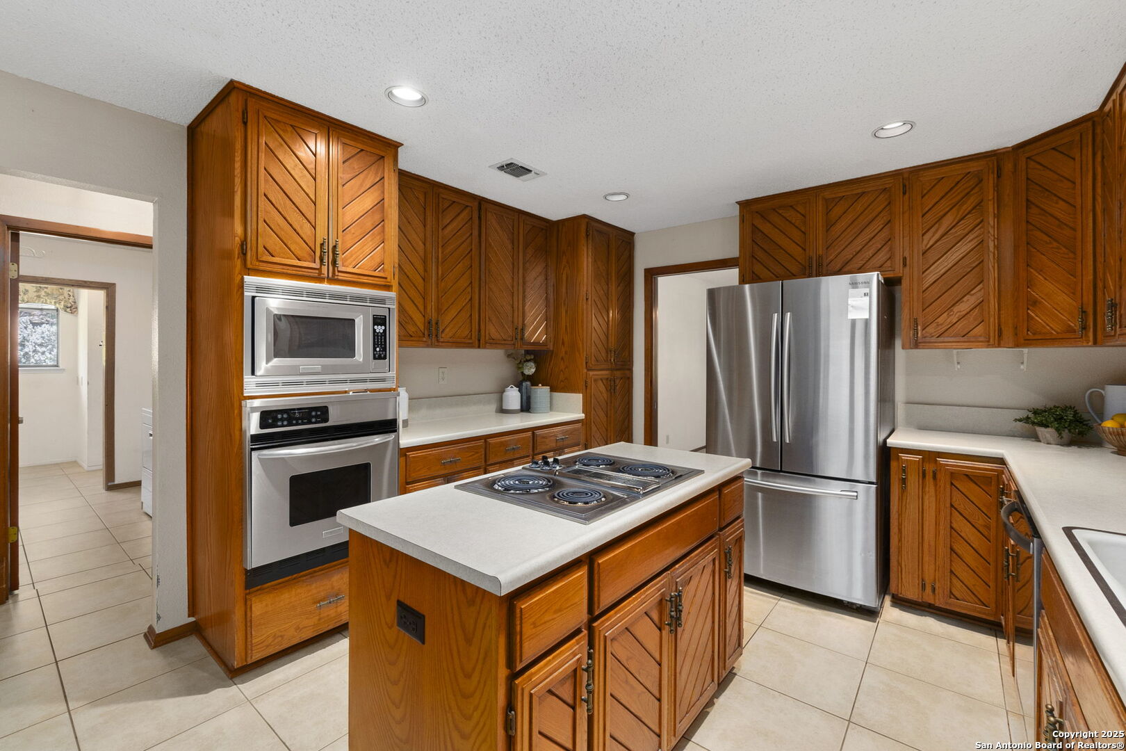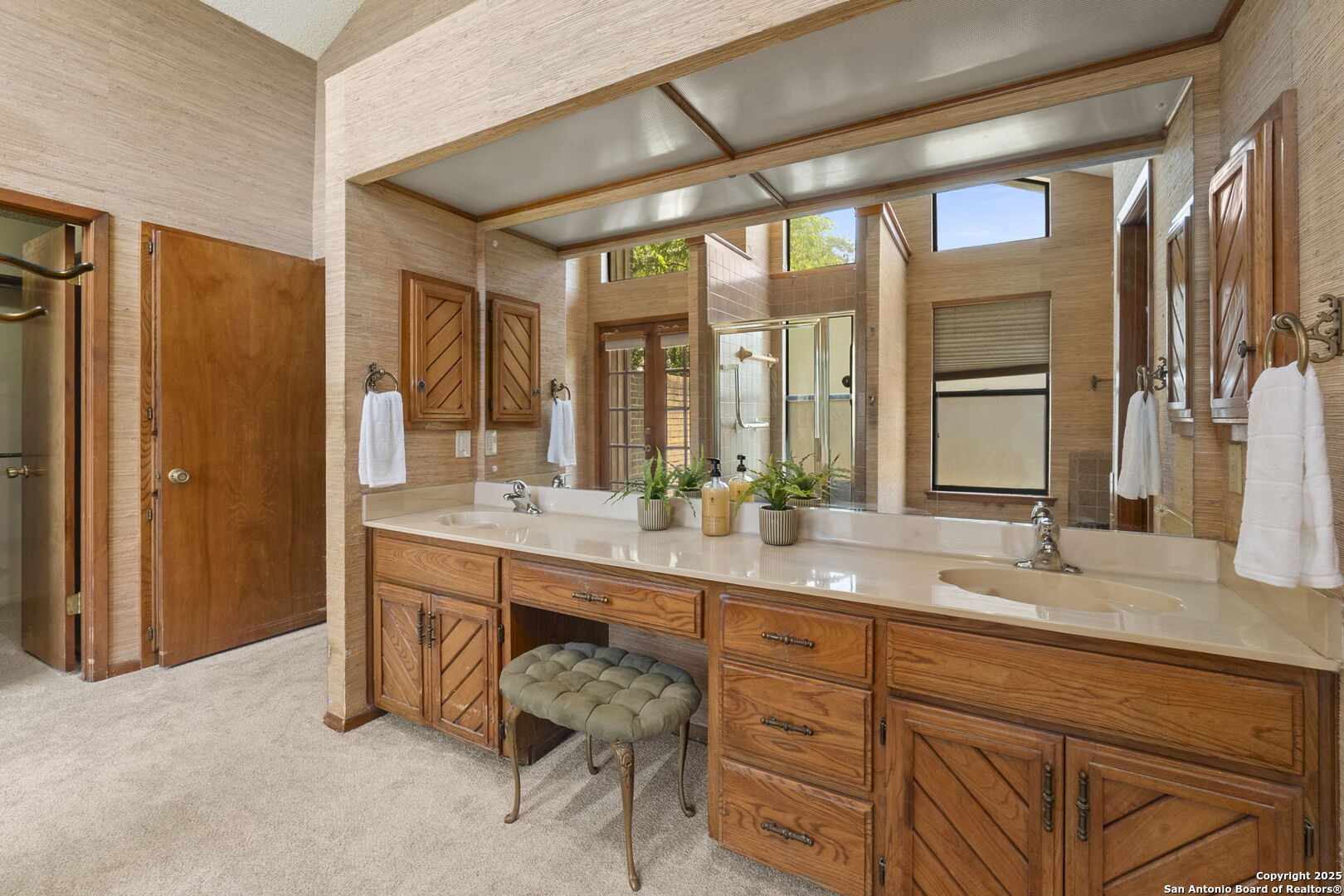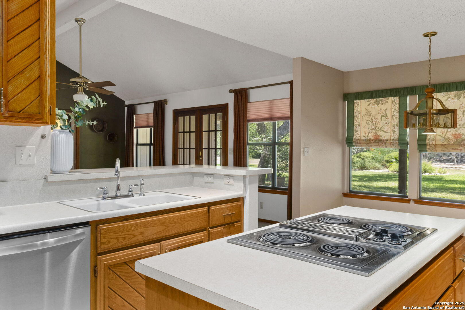 Charming & adorable one story, thoughtfully laid out with custom features & designer touches*Located in the beautifully planned, established section of Encino Park with wide lots, pretty streets & excellent amenities*Home on a small cul de sac enhanced with heritage trees, lush landscaping & attractive homes*Wonderful open layout with 2 living & two dining areas*The entry foyer is flanked by the living room on the left & dining on the right*Just beyond, relax & enjoy the unified space of the casual living room, island kitchen & breakfast area - perfect for entertaining or personal retreat*Private primary suite has outdoor access to the covered patio and includes a stunning spa bath with lots of windows & peaked ceilings & French doors to a bricked courtyard*Highlights include a cozy two sided brick fireplace between the two living areas, a wet bar, island kitchen*Wood cabinets galore with matching wood trim & window sills*Delightful vintage fixtures*Ample laundry room with lots of cabinets, large utility sink, refrigerator space*Versatile bonus room beyond the utility room that can be used as a space-efficient office, hobby room, pantry or storage*Enjoy outdoor living on the generous covered patio with views of the heritage trees & attractive landscaping*Fantastic 1/3 of an acre lot with raised beds for gardening, plenty of room for a pool, ADU & outdoor recreation*Solar panels, replaced roof, & HVAC are added values*Ideally located off Hwy 281, near Loop 1604, close to major shopping, dining & entertainment*Acclaimed NorthEast ISD Schools*