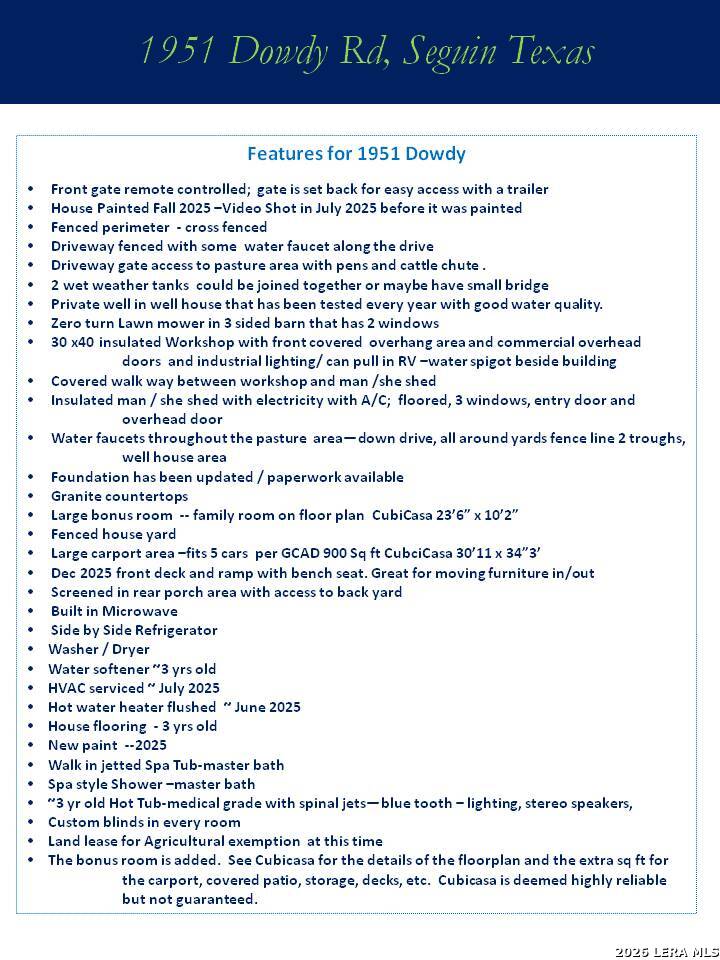 Wonderful views of the countrywide giving one a peaceful view that comes with LOW taxes. Discover your own ag exempt 11 acre Texas ranch. No water bill--your own water well that has been tested for water quality every year to ensure good drinking water for you and your and your livestock. So many extra features to list. Set behind a remote-controlled gated entrance, this ag-exempt Texas ranch offers privacy, usability, and well-considered improvements throughout. A paved concrete and asphalt drive provides clean, dependable access to the residence in all seasons. The home is designed for comfortable daily living with generous room sizes with a functional layout. The kitchen anchors the residence, featuring a substantial granite island, abundant cabinetry, and ample workspace, making it well suited for both everyday use and entertaining. In addition to the main living area, a versatile bonus room provides flexible space ideal for a private office, studio, or hobby room. The primary bath includes a jetted tub and separate shower. A spacious laundry room enhances convenience without compromising storage. Outdoor living is well established, with decks and a hot tub positioned to overlook the surrounding acreage. The private water well has been regularly tested and maintained. The property is well equipped for work, storage, and recreation. A powered auxiliary building includes both a walk-in entry and overhead door. The insulated workshop features two tall commercial-grade doors and sufficient clearance for equipment or RV storage, along with a covered concrete slab providing additional workspace. No need to add RV electrical supply as it is established. Agricultural infrastructure is already in place. A three-sided barn offers covered storage for hay, trailers, or equipment. Two tanks are located in close proximity, offering flexibility for future water management. Pens are positioned for direct access from the main drive, facilitating efficient livestock handling and trailer access. The acreage is cross-fenced with water available throughout. Aerial imagery captured during peak growing season highlights the property's healthy pasture and water features. This property offers a rare combination of privacy, infrastructure, and functional acreage, suited for those seeking refined country living with the ability to actively use the land. Bring your horses or cattle for this property is already complete eagerly awaiting their arrival. The 11 acres will be cut from the original 21.16 acreage.