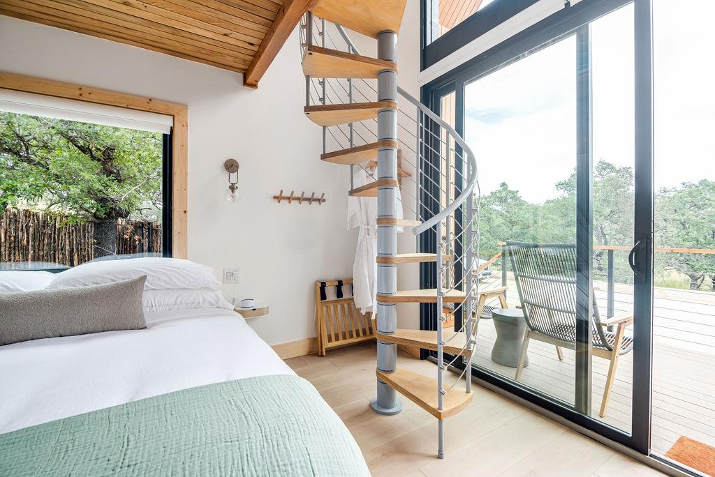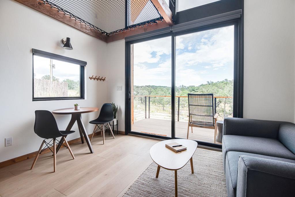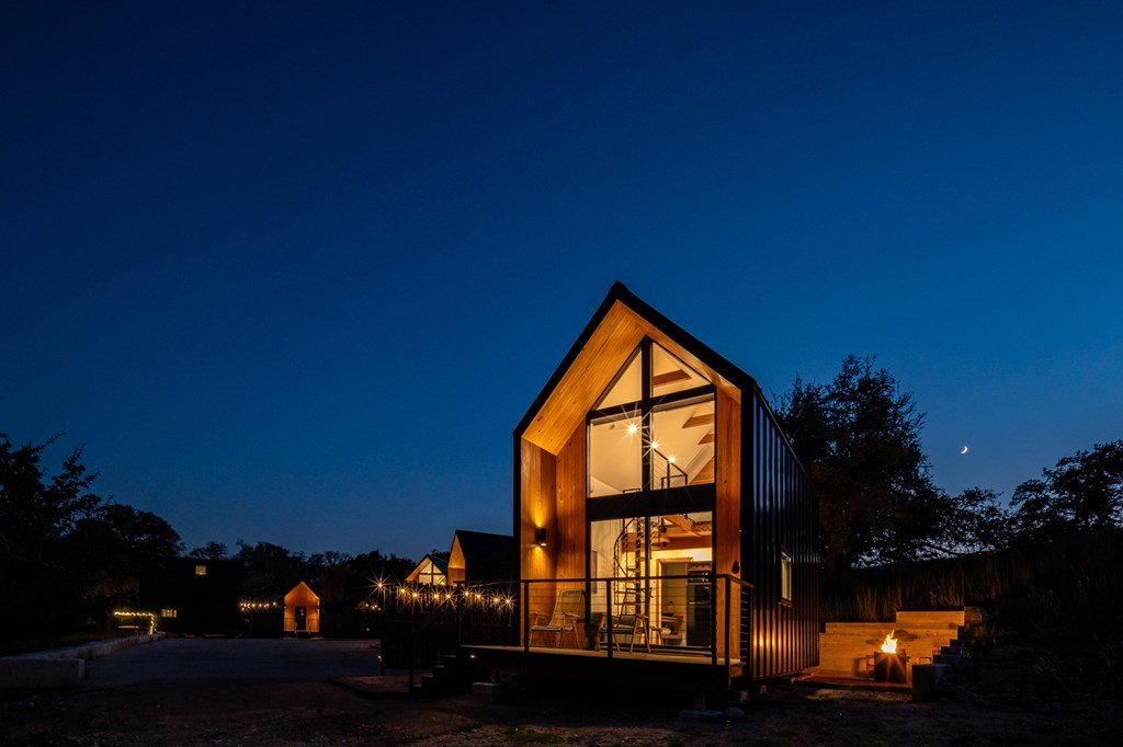 MERIDIAN is a VERY successful short-term rental property (4 cabins plus a laundry room) situated on approximately 6 acres just minutes from town. The property features four private Scandinavian-inspired cabins designed with modern finishes and comfortable living spaces. Each cabin offers its own unique interior while maintaining a cohesive design throughout the property. A spacious on-site laundry room provides convenience for operations and guest turnover. The peaceful setting offers Hill Country views, abundant wildlife, and excellent stargazing while still being conveniently located near local shops, dining, and attractions. This is a rare opportunity to own an established income-producing STR property with multiple cabins on acreage.