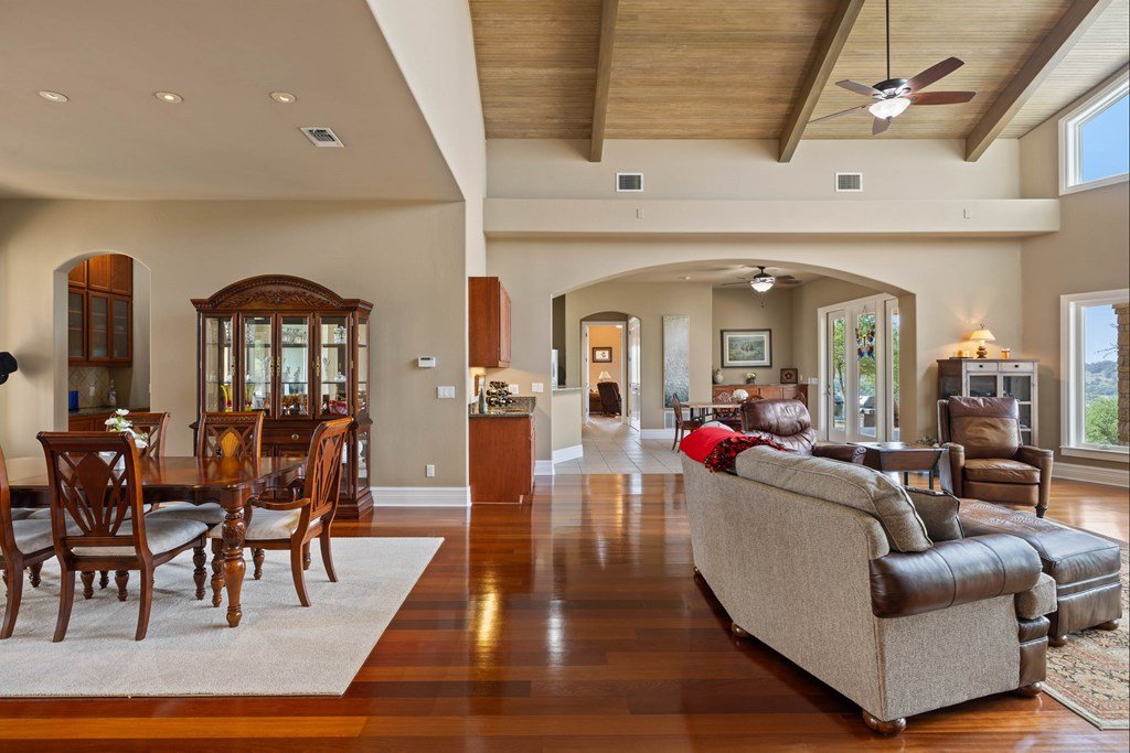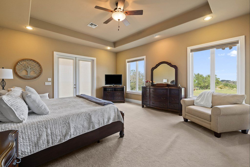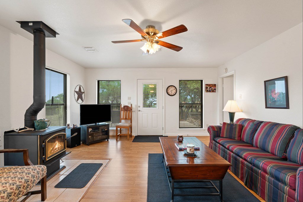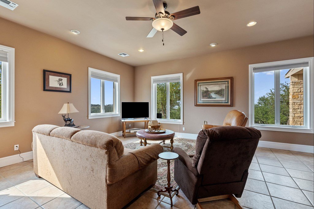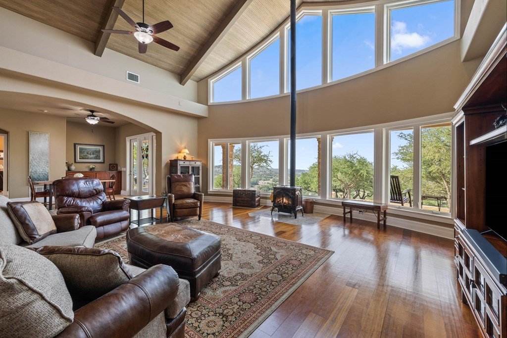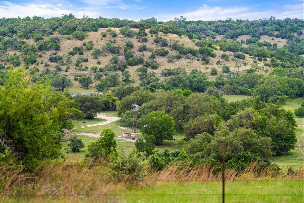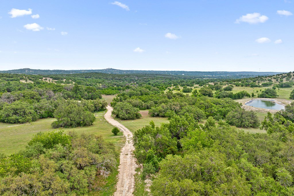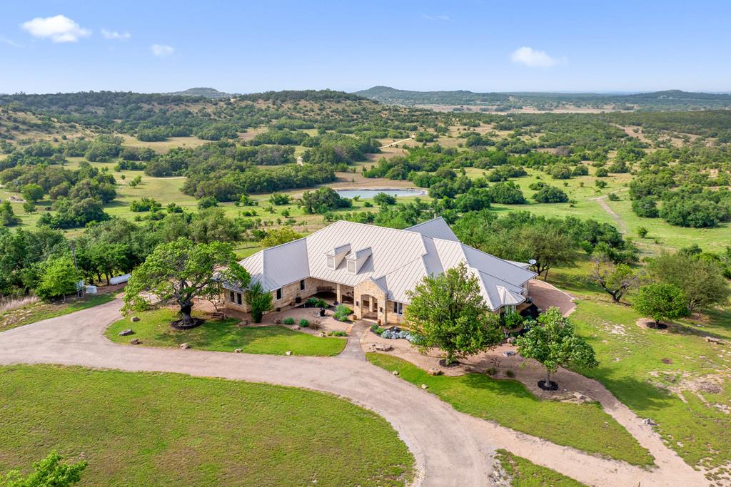 This private 365-acre ranch sits conveniently between Johnson City and Round Mountain just West of US 281 making it easily accessible from HWY 71 or US 290. A custom 2005 built 3,997 sqft main house with covered back porch is perched on a hillside overlooking the main body of the ranch. There are 2 water impoundments including a multi-acre lake when full and additional small pond both Kevlar lined. A 40 x 60 metal barn with 5 covered exterior bays and 1,000 sqft 2 bedroom 2 bath guest house with wood back deck complete the vertical improvements. This ranch boasts large acreage neighbors +/- (996 North, 785 West, 3400 East, 365 South). All ranch roads have had road base added and were bladed & rolled. Most of the cedar has been cleared leaving excellent hardwood & underbrush cover for wildlife. Blacktop road was added &/or maintained to the access road, main house, barn and guest house. There are 3 water wells on the property (2 electric, 1 windmill/solar). This ranch is groomed with well cared for improvements offering tremendous views.
