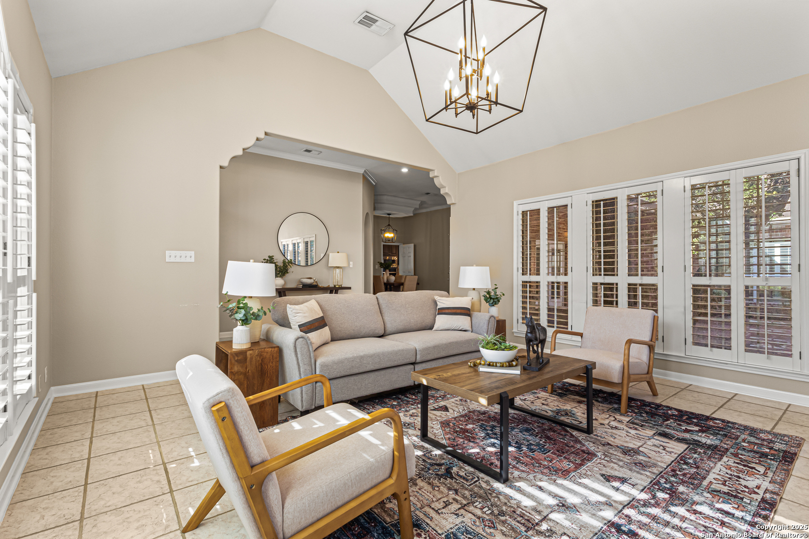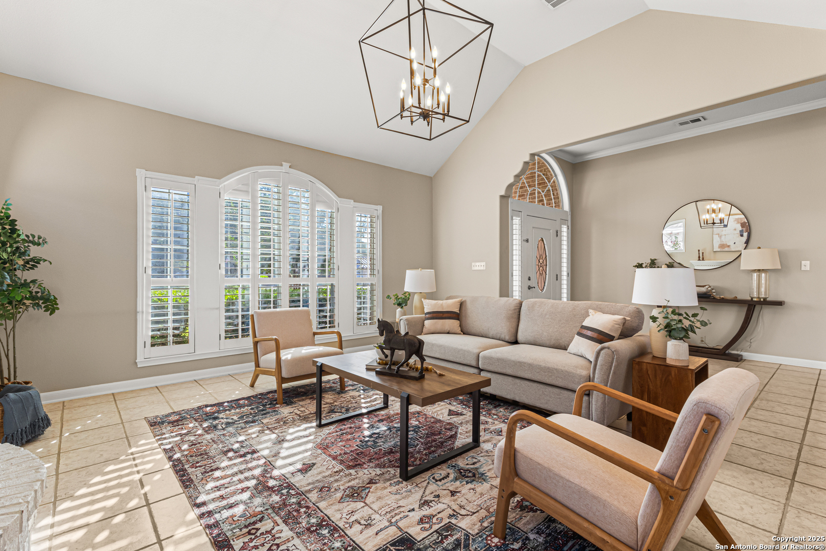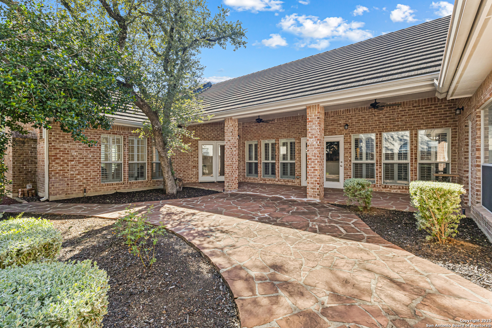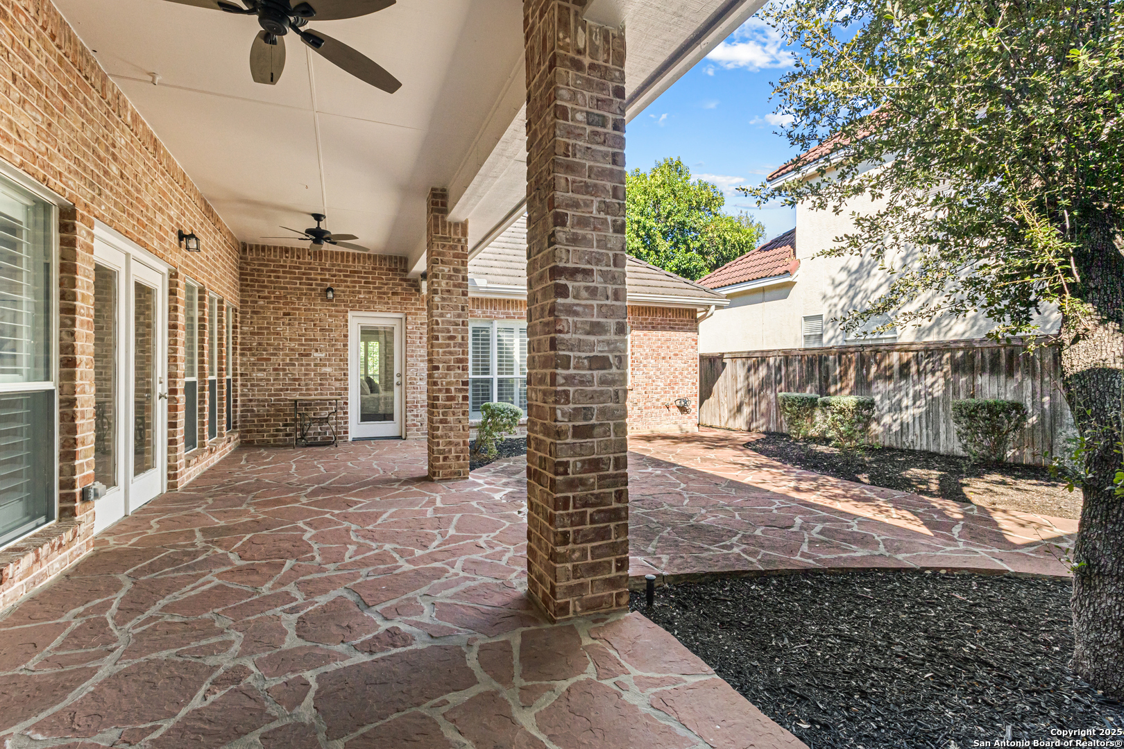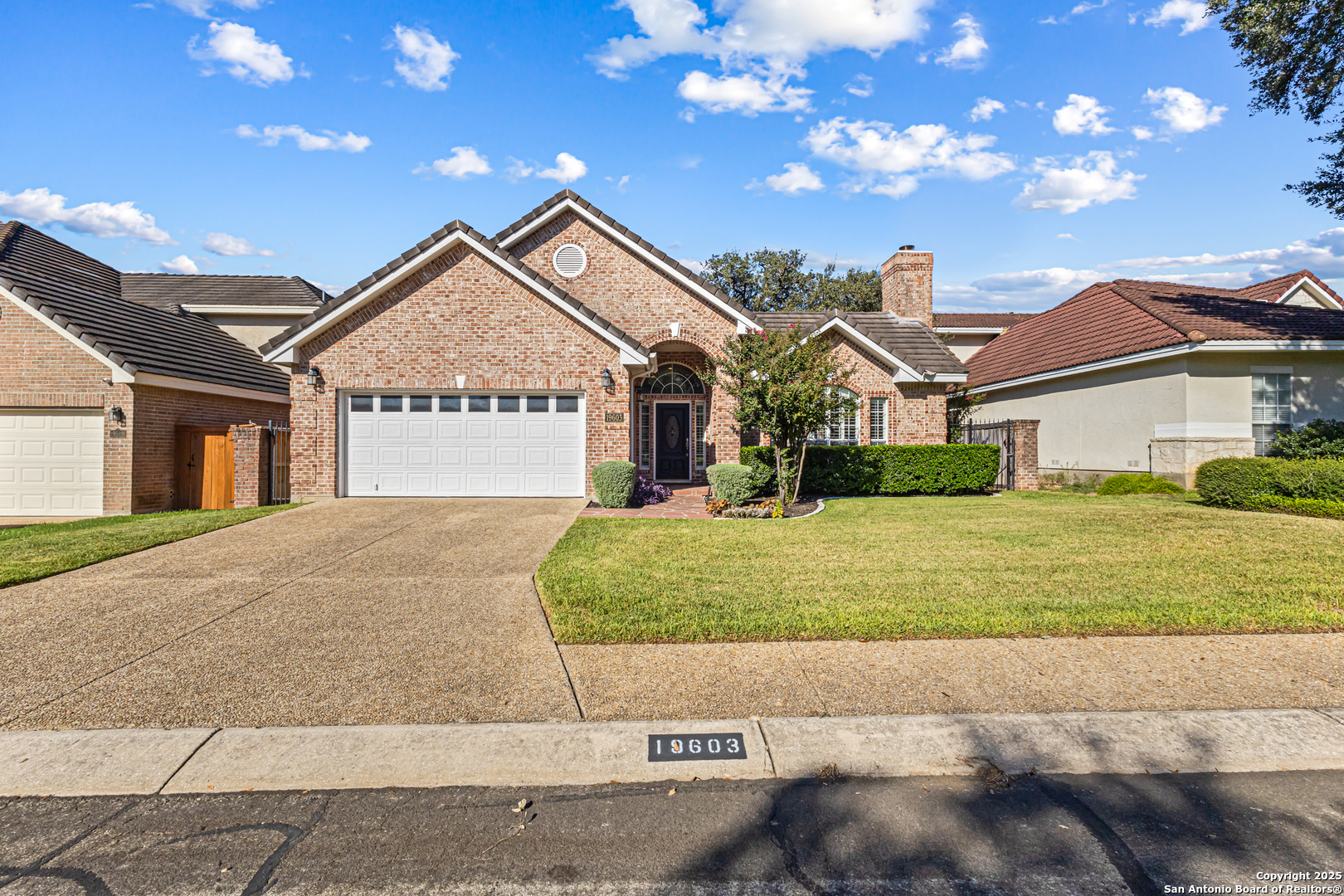 Welcome Home to Sonterra! This meticulously maintained one-story home sits on a quiet street in the prestigious Sonterra community. An open floor plan and soaring ceilings create a light, airy, and modern feel throughout. The island kitchen is a chef's delight, featuring custom cabinetry, granite countertops, stainless steel appliances, and a breakfast bar. The living, dining, and kitchen areas all overlook the covered patio and beautifully landscaped backyard with flagstone - the perfect setting for entertaining or relaxing evenings. The private primary suite offers a cozy sitting area with direct patio access, and a spa-like bath designed for comfort. Enjoy the Sonterra lifestyle with golf course (golf cart) and club access from the neighborhood all while being minutes from top-rated hospitals, shopping, dining, and major highways (1604 & 281). With five golf courses nearby, this home is a golfer's or downsizing dream!