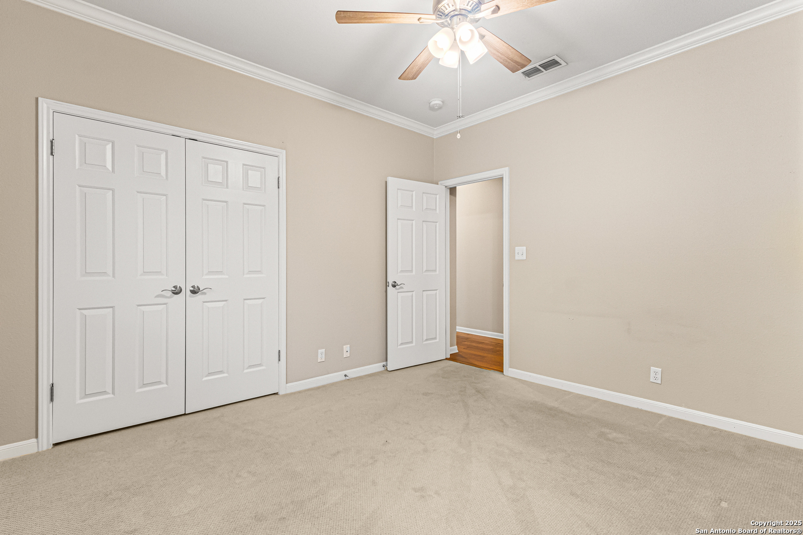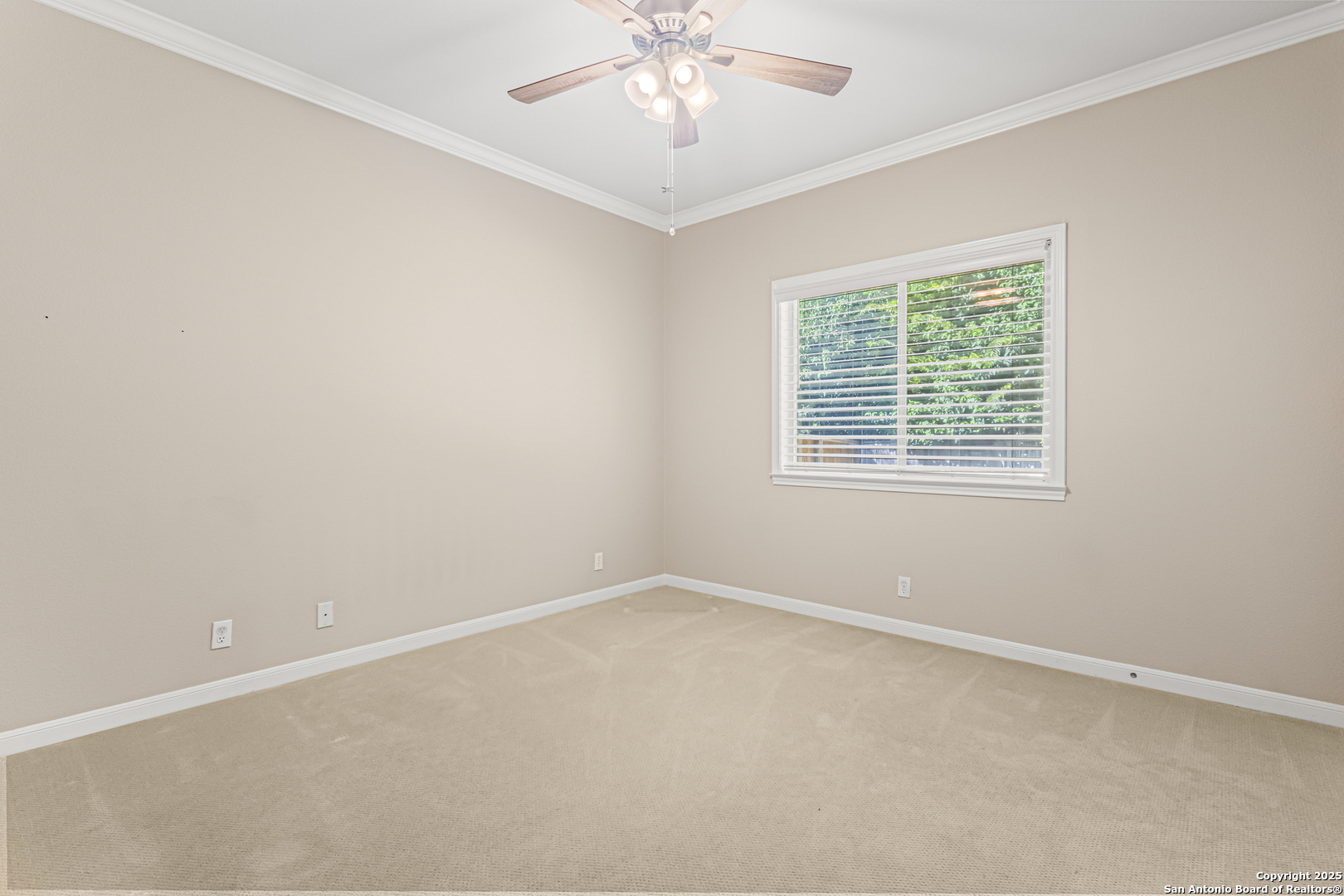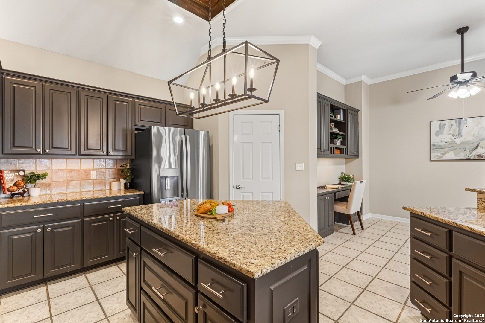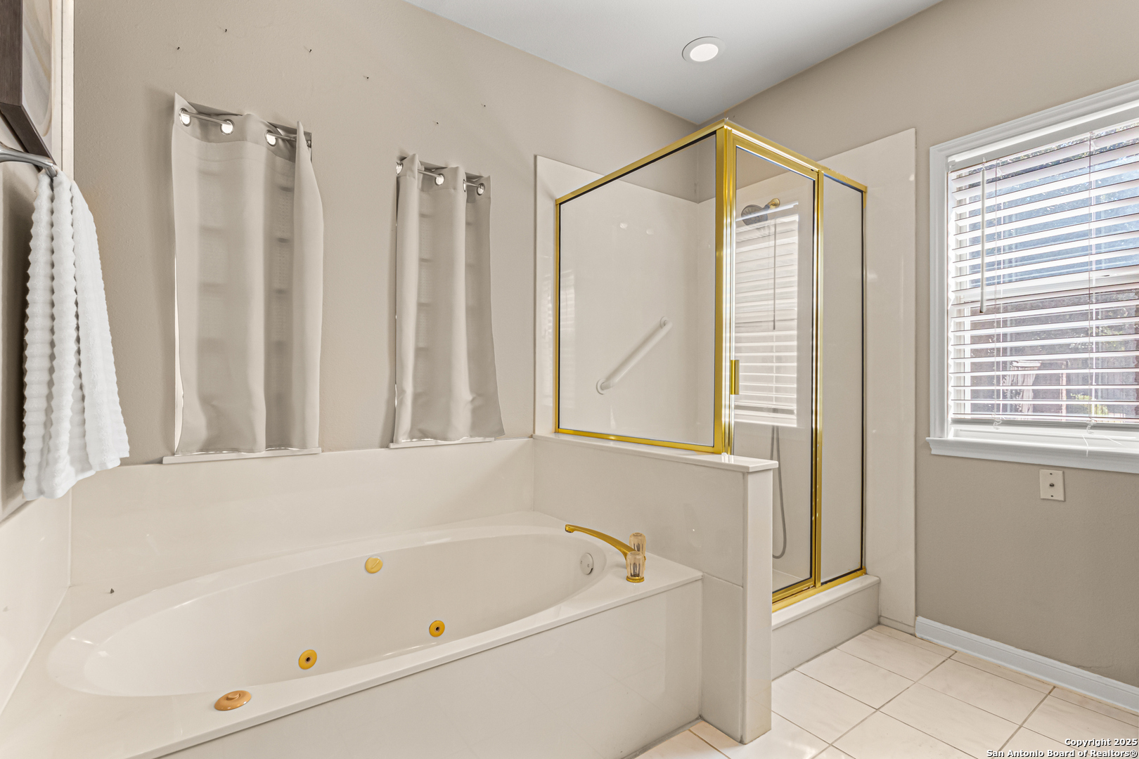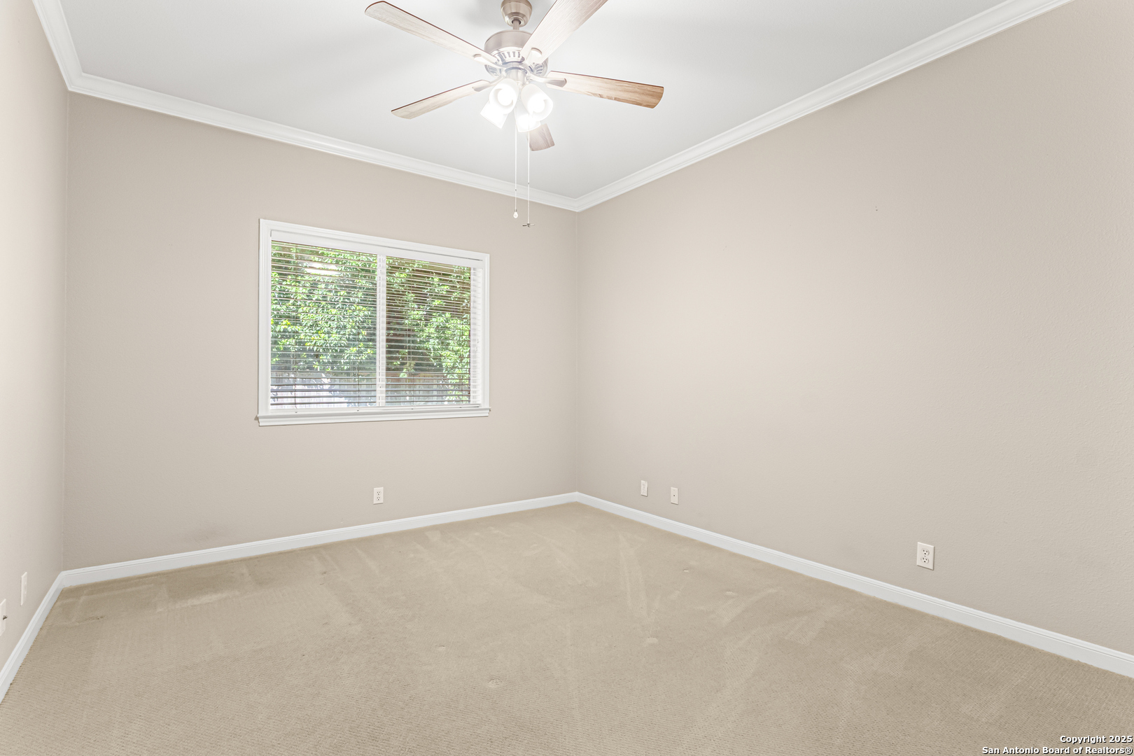 Welcome Home to Sonterra! This meticulously maintained one-story home sits on a quiet street in the prestigious Sonterra community. An open floor plan and soaring ceilings create a light, airy, and modern feel throughout. The island kitchen is a chef's delight, featuring custom cabinetry, granite countertops, stainless steel appliances, and a breakfast bar. The living, dining, and kitchen areas all overlook the covered patio and beautifully landscaped backyard with flagstone - the perfect setting for entertaining or relaxing evenings. The private primary suite offers a cozy sitting area with direct patio access, and a spa-like bath designed for comfort. Enjoy the Sonterra lifestyle with golf course (golf cart) and club access from the neighborhood all while being minutes from top-rated hospitals, shopping, dining, and major highways (1604 & 281). With five golf courses nearby, this home is a golfer's or downsizing dream!