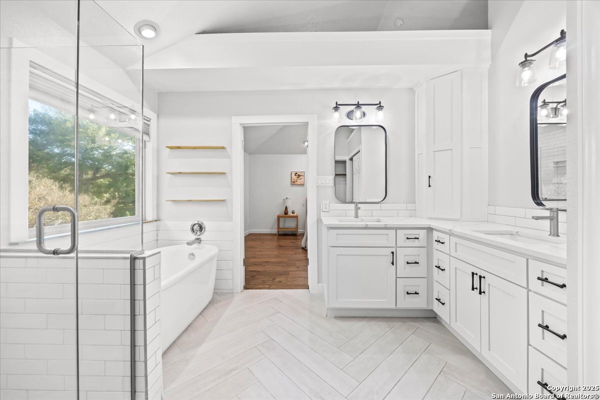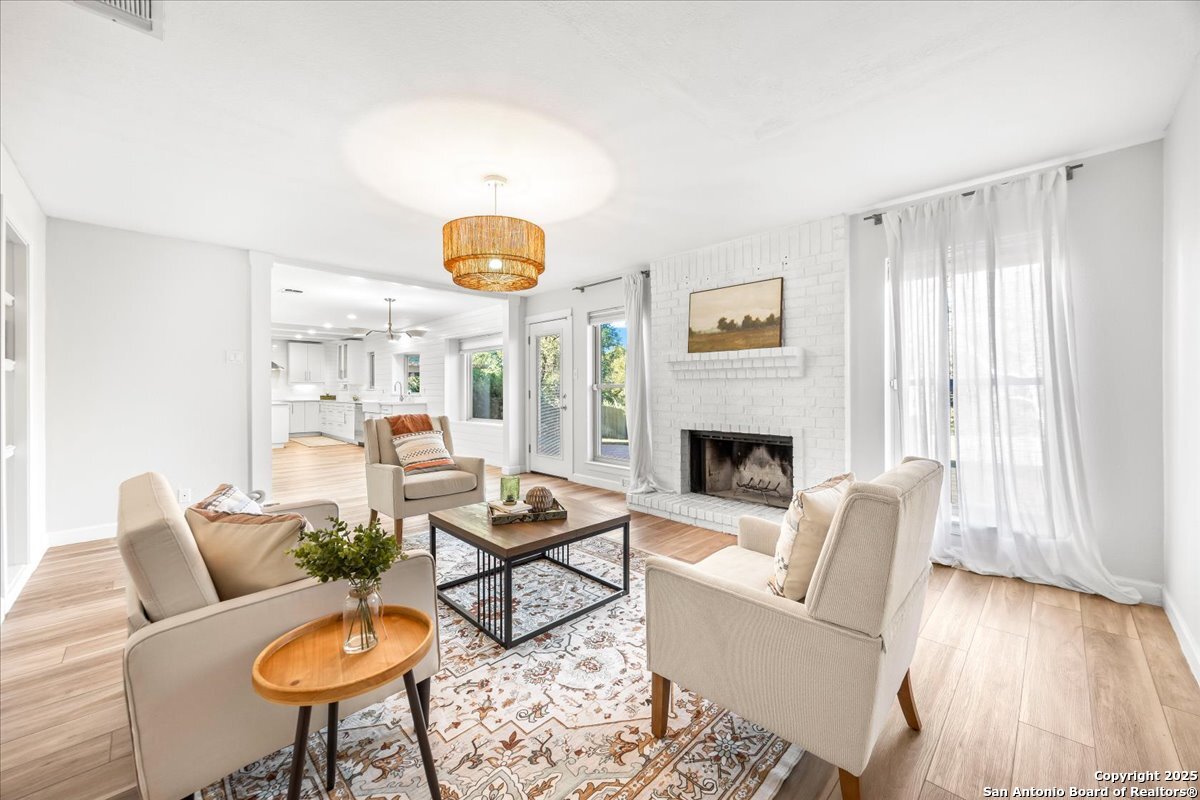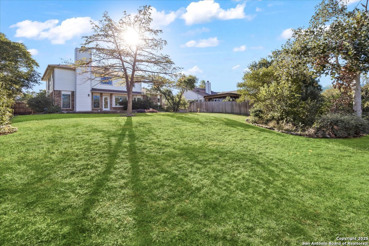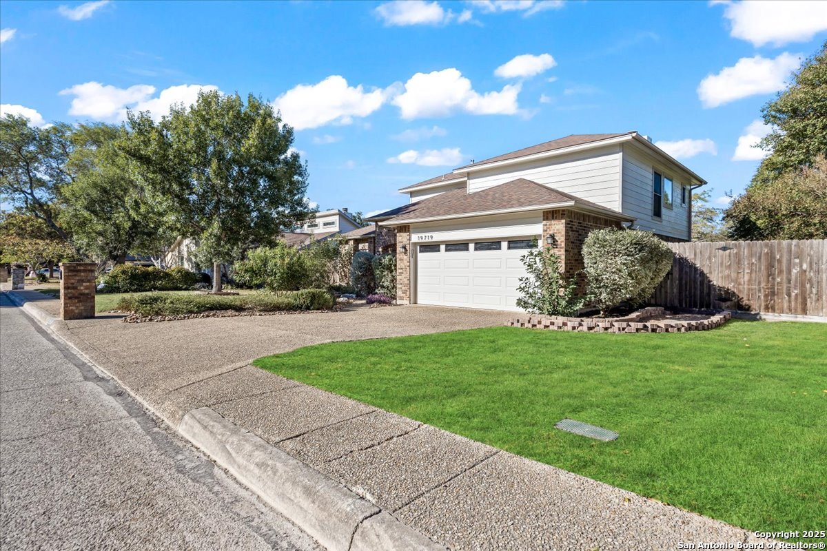 Looking for a move-in ready home with space to spread out near North Central San Antonio? This charming 3 bed, 2.5 bath two-story offers over 2,200 sq ft of living space on a 0.28-acre lot, giving you room to relax, garden, or entertain without giving up easy access to shops, schools, and Loop 1604. Step inside to find two spacious living areas, a separate dining room, and a bright island kitchen with a breakfast bar that opens to the family room. Wood and tile floors add warmth throughout the main level, while the living-room fireplace creates the perfect cozy spot on cool evenings. Upstairs, the primary suite features a separate garden tub and shower, dual vanities, and plenty of natural light. Two secondary bedrooms and a full bath complete the upper floor. Out back, enjoy a private fenced yard and patio slab-ideal for morning coffee or weekend barbecues. The two-car attached garage and additional parking offer plenty of space for vehicles and storage. Built in 1983 and lovingly maintained, the home combines classic character with modern convenience including high-speed internet, cable availability, and updated appliances. Families will love being close to top schools, parks, and shopping, with easy commutes via Loop 1604 and Hwy 281. It's the kind of home where you can picture kids playing in the yard, quiet evenings by the fire, and friends gathered around the kitchen island.