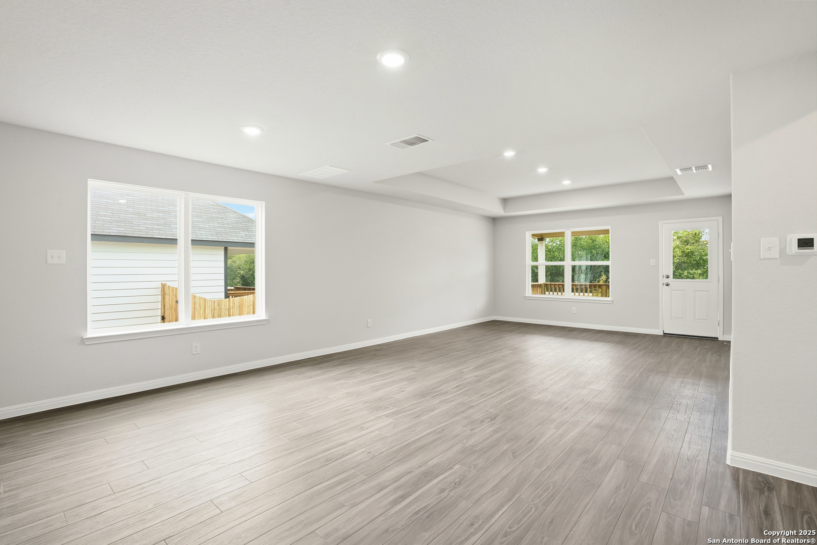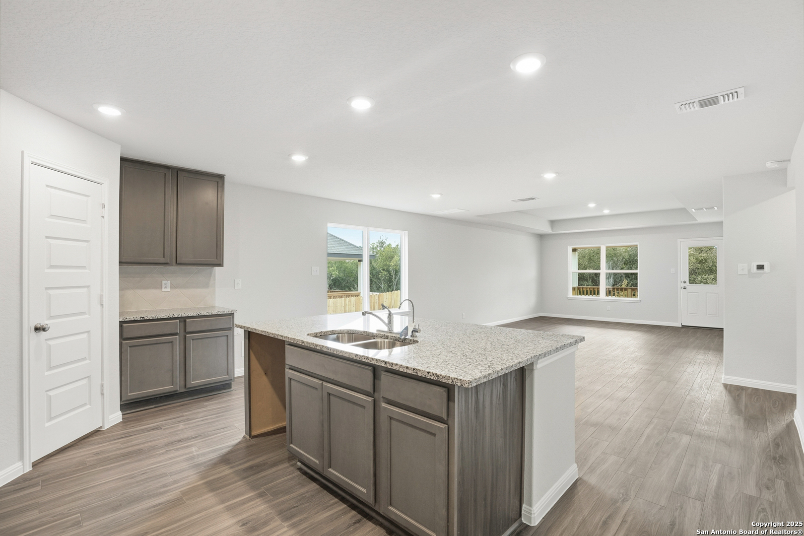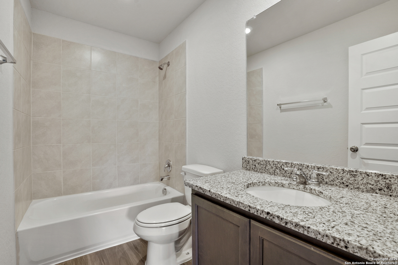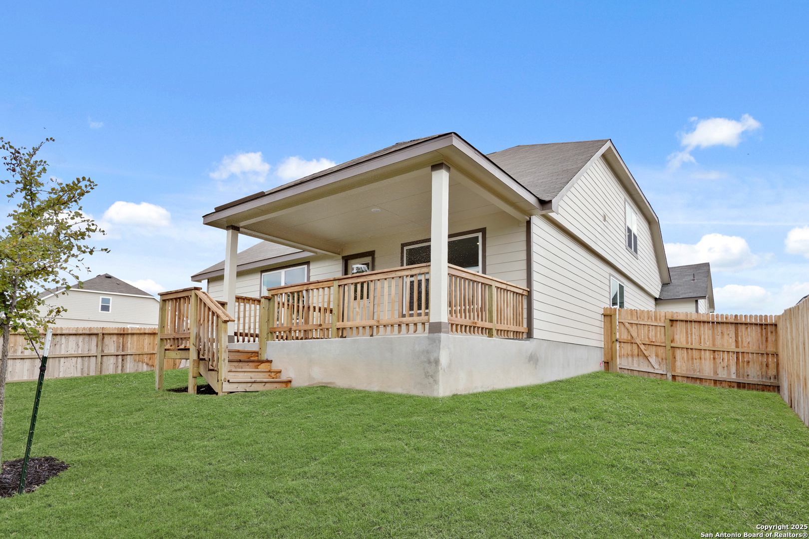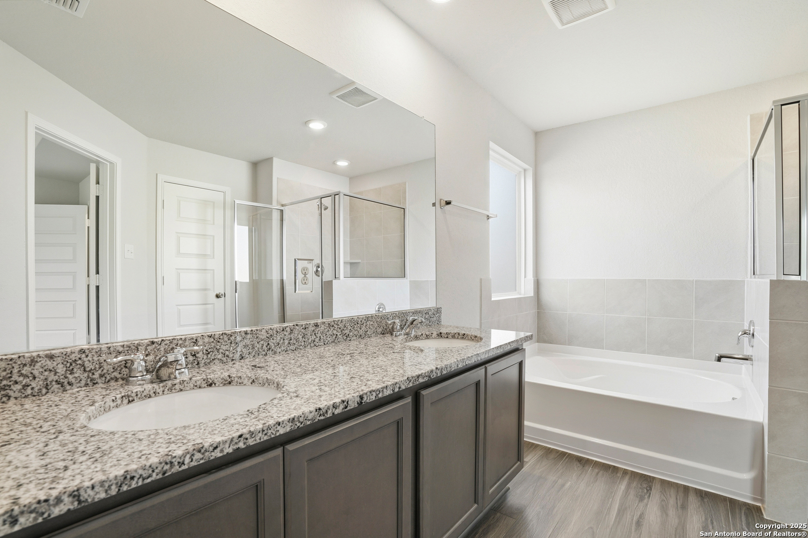 Love where you live in Hunters Ranch in San Antonio, TX! The Cortona floor plan is a spacious 1.5 story home, featuring 4 bedrooms (3 down, 1 up), 3 bathrooms, a game room, and a 2.5-car garage. This home has it all, including vinyl plank flooring throughout the common areas! The gourmet kitchen is sure to please with 42" cabinets, granite countertops, and stainless-steel appliances. Retreat to the first-floor Owner's Suite featuring granite countertops, a separate tub and shower, and a walk-in closet. Enjoy the great outdoors with a covered patio and no back neighbors! Don't miss your opportunity to call Hunters Ranch home, schedule a visit today!