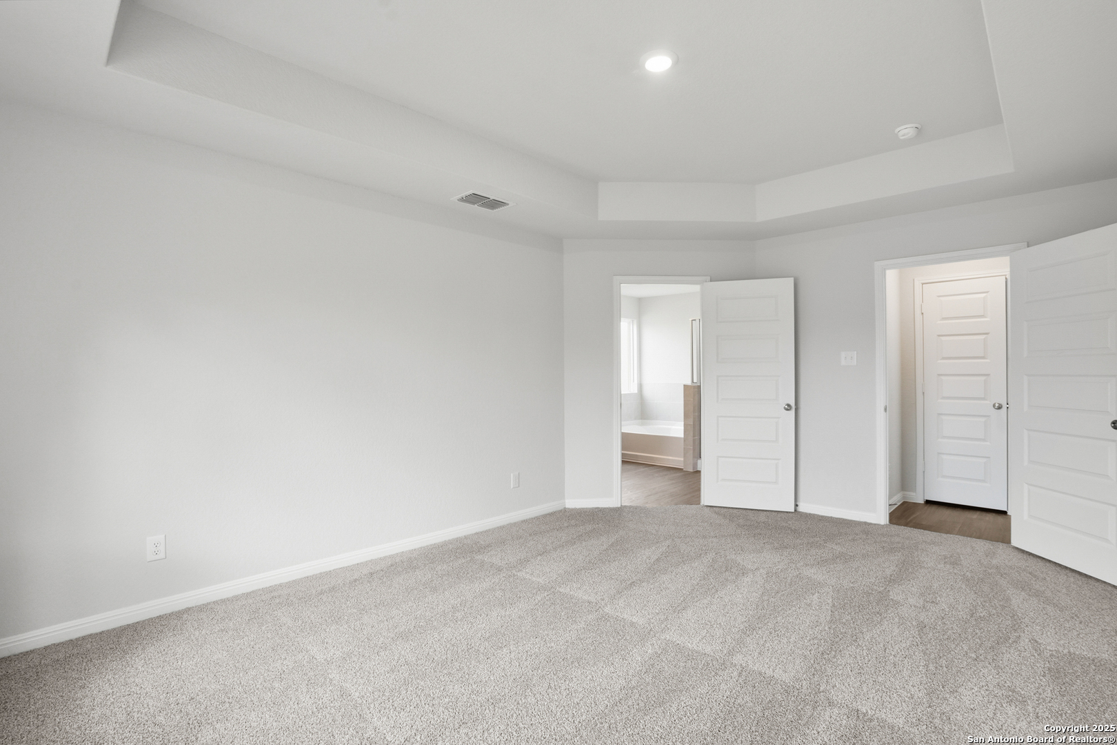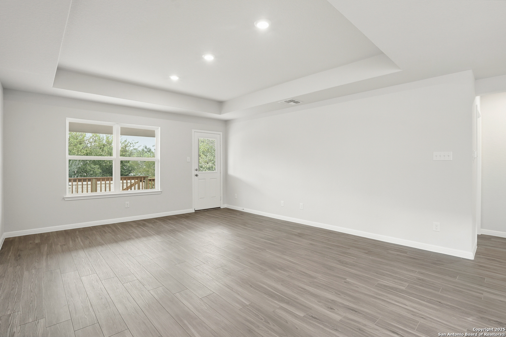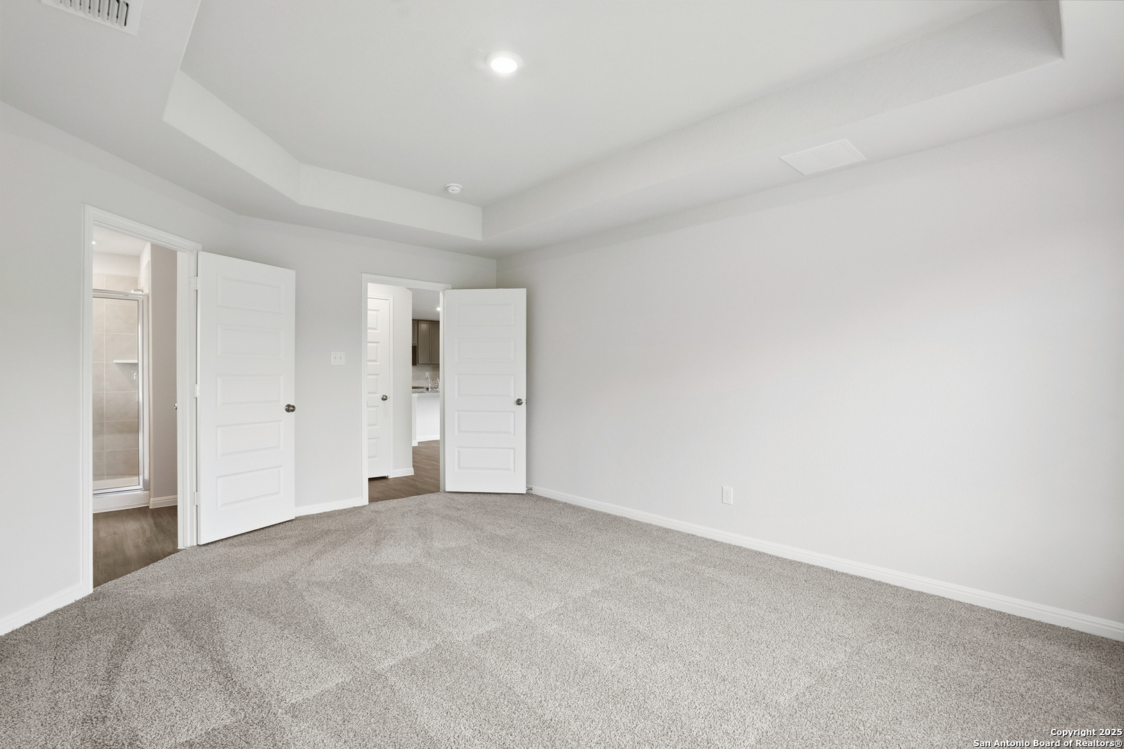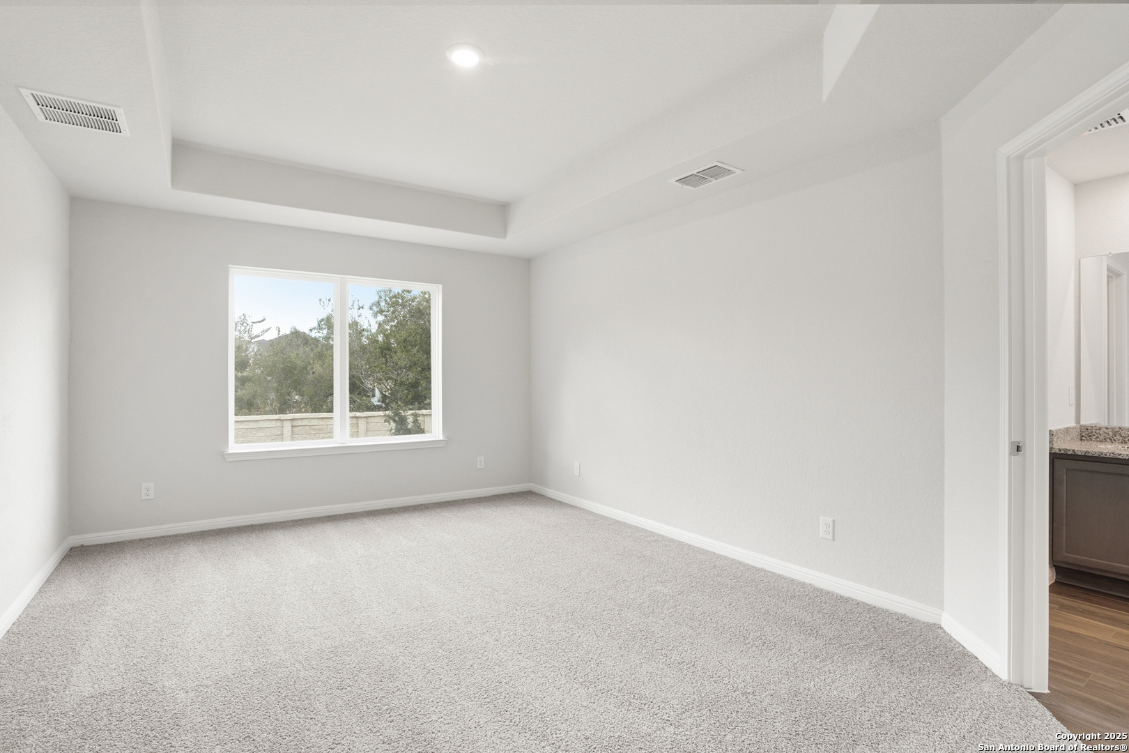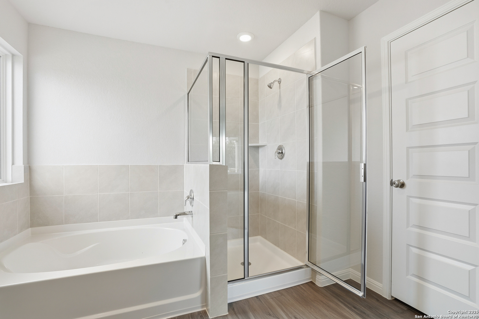 Love where you live in Hunters Ranch in San Antonio, TX! The Cortona floor plan is a spacious 1.5 story home, featuring 4 bedrooms (3 down, 1 up), 3 bathrooms, a game room, and a 2.5-car garage. This home has it all, including vinyl plank flooring throughout the common areas! The gourmet kitchen is sure to please with 42" cabinets, granite countertops, and stainless-steel appliances. Retreat to the first-floor Owner's Suite featuring granite countertops, a separate tub and shower, and a walk-in closet. Enjoy the great outdoors with a covered patio and no back neighbors! Don't miss your opportunity to call Hunters Ranch home, schedule a visit today!