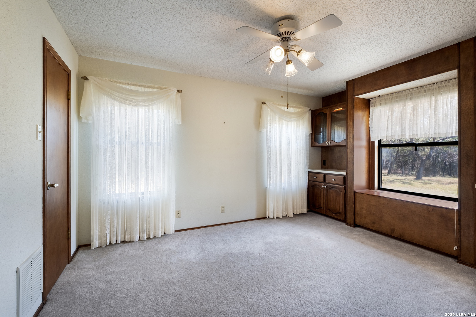 Nestled on 5.29 acres in the scenic Helotes Hill Country, this custom-built home offers space, privacy, and timeless character surrounded by mature oak trees. The home was built by the original owner Winston L. Wright, reflecting thoughtful craftsmanship and distinctive design elements that make it truly special. The interior of the home was thoughtfully designed by his wife Dorothy Wright, showcasing a well-preserved original design giving the property its unique character and warmth. A circular driveway welcomes you to the property and provides ample parking, while the expansive grounds offer a peaceful setting with plenty of room to enjoy the outdoors. The brick exterior and covered back patio create an inviting place to relax while taking in the natural surroundings. The entire property is fenced in with the front having an electric-remote gate made of stone/wrought iron. Inside, the home features generous living spaces, vaulted ceilings with exposed beams, custom woodwork, and two fireplaces (one in the living room and another in the primary bedroom) that add warmth and charm. Large windows and sliding glass doors bring in natural light and offer views of the surrounding acreage. Built-in cabinetry and original design details throughout the home highlight the care and craftsmanship that went into its construction. The property provides opportunities for outdoor enjoyment, gardening, or simply appreciating the quiet Hill Country setting, all with convenient access to shopping, dining, and everyday conveniences in Helotes and San Antonio. This property offers a rare opportunity to own a custom home on acreage in the Texas Hill Country. Schedule a showing today! Open House on Saturday, April 4, 2026 from 11am - 2pm