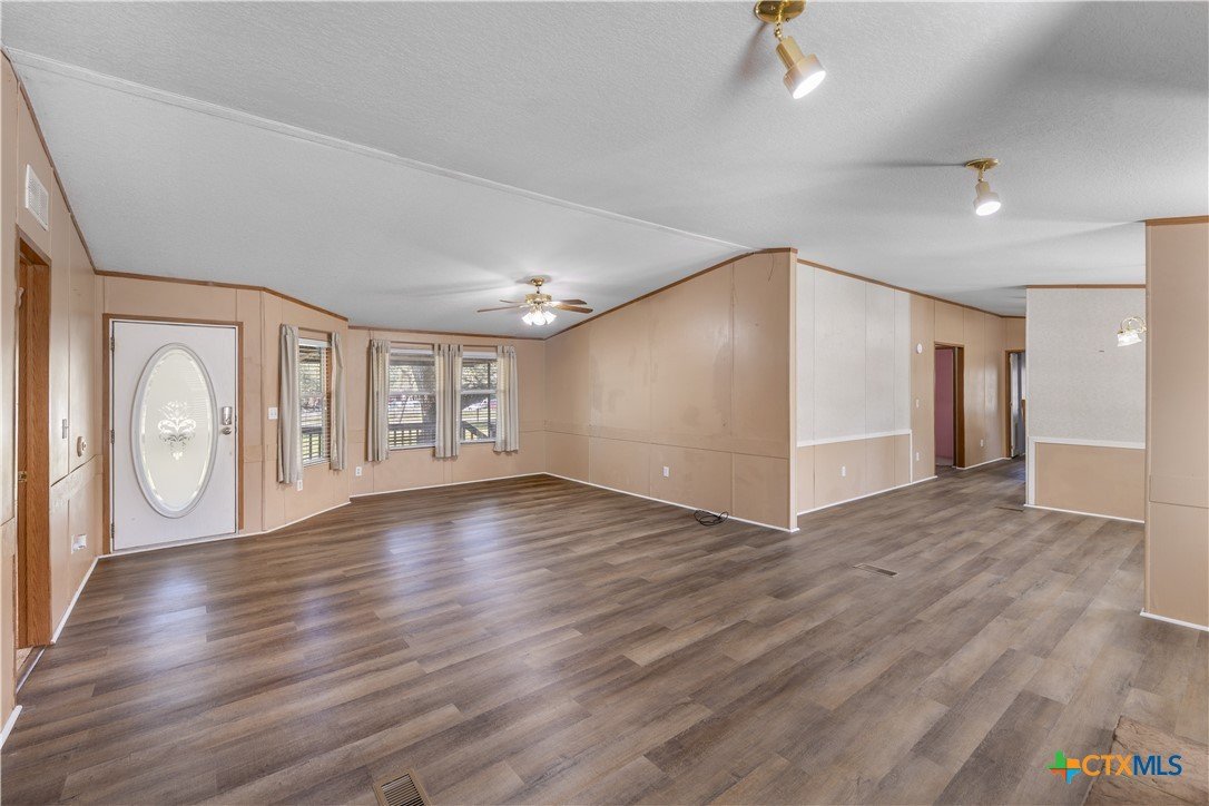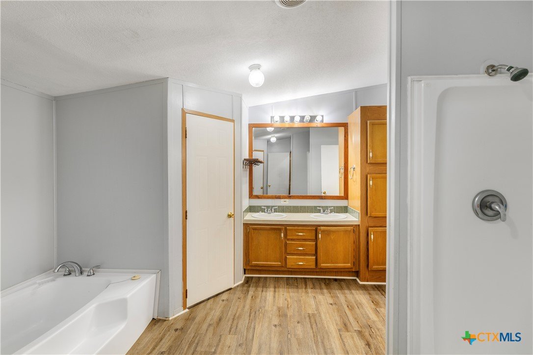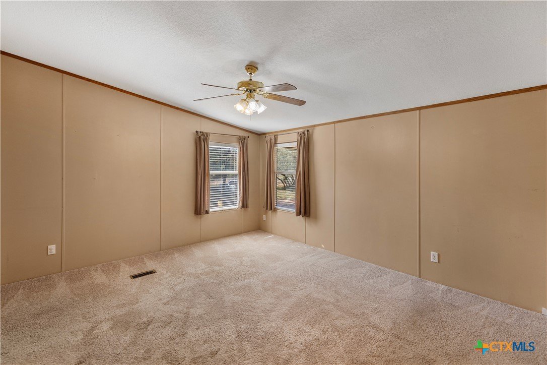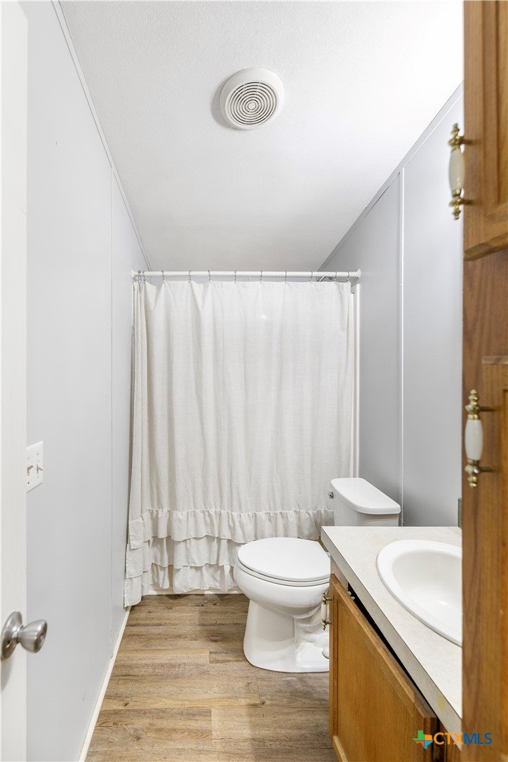 Escape to the peace of the countryside with this 5.29-acre property just outside Hallettsville in the desirable Vienna area. In this beautiful country setting, the land is covered in an abundance of mature oak trees that provide exceptional shade and natural beauty throughout the property. With no restrictions, perimeter fencing, and a pond, this versatile acreage is ideal for livestock, local stock show families, or anyone looking to enjoy rural living while still being close to town. The property features a 3-bedroom, 2-bath manufactured home designed for everyday comfortable living. Inside, you'll find a spacious living room with a cozy wood-burning fireplace that can be enjoyed as one large gathering space or arranged for multiple uses. New waterproof vinyl plank flooring has been installed in the living room, dining area, kitchen, and laundry room, along with new sinks in both bathrooms. The primary suite offers a double vanity plus his-and-hers walk-in closets for plenty of storage. Outdoor living is just as inviting, with a large front porch ready for rocking chairs and a relaxing evening, as well as a side covered porch and additional deck ideal for entertaining. A storage building with electricity provides excellent space for hobbies, a workshop, or projects, and a square concrete slab is poured ready for the buyer's imagination. If you've been looking for shade trees, usable acreage, and country charm with room to grow - this property is a must see!