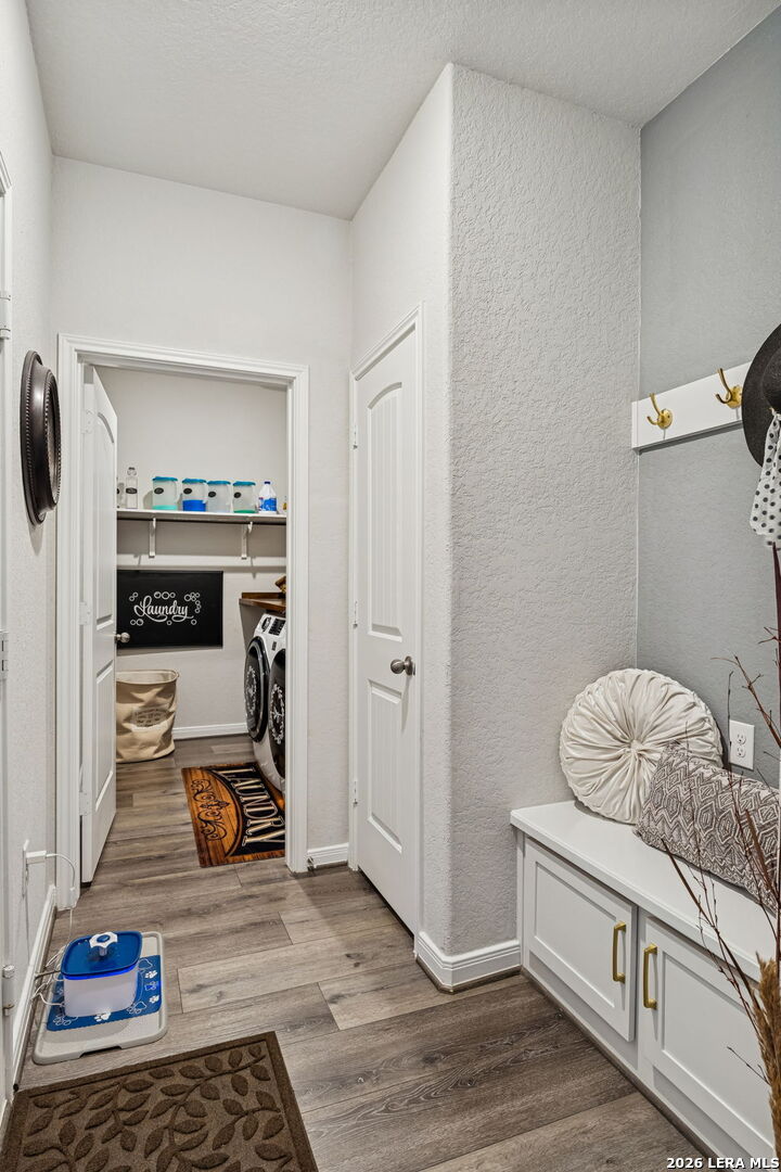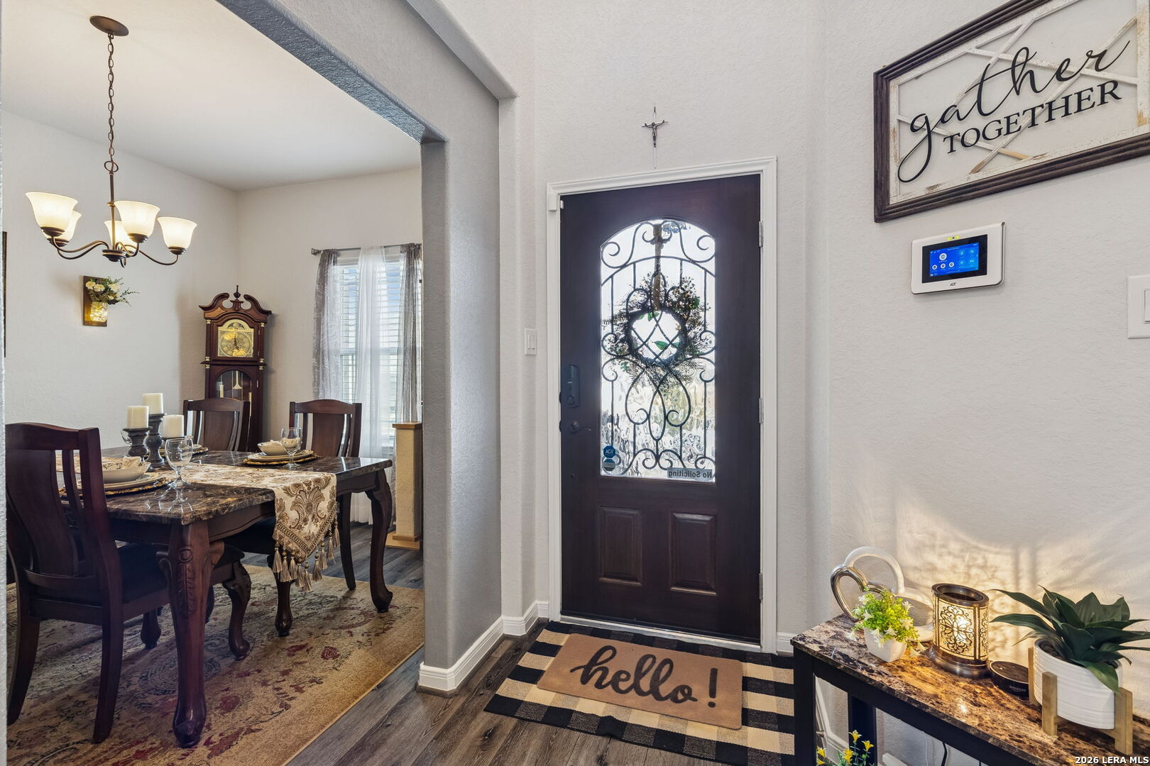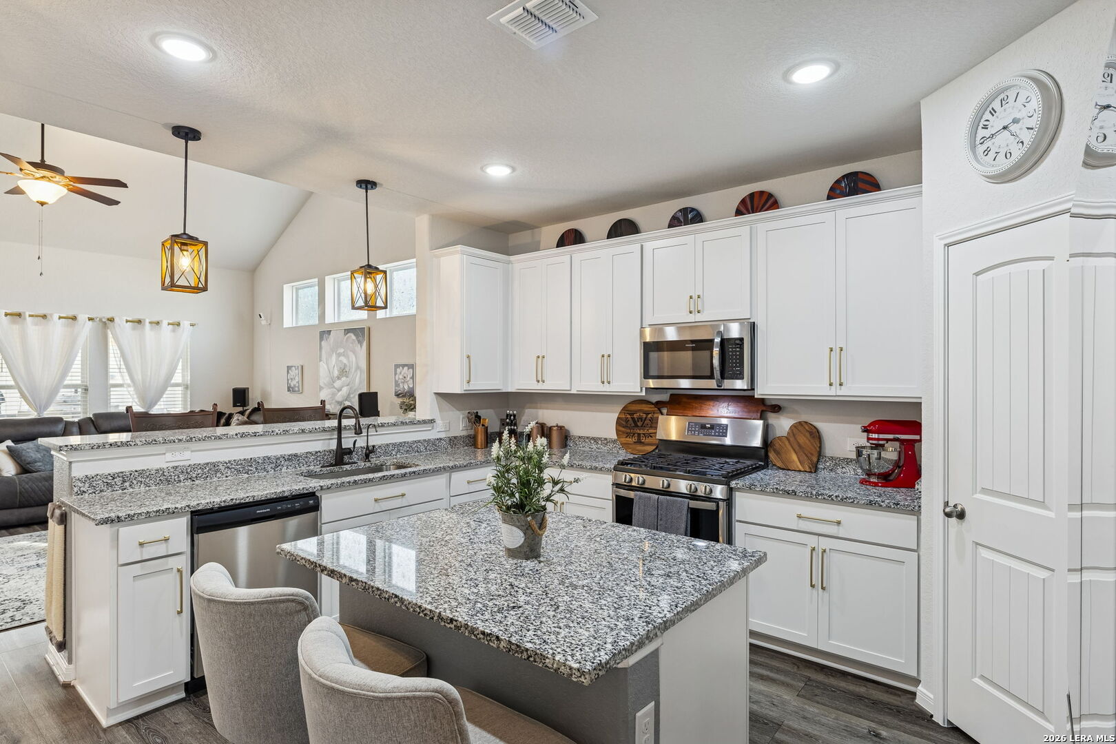 Not builder basic. $6K solid iron front door. 2.5-car extended garage with epoxy. Every light switch WiFi. Double oven with air fry + convection. 4 bed | 2.5 bath home loaded with intentional upgrades inside and out. From California railing (no half wall) to high-mounted TV plugs, brush plates, pendant lighting, crown molding cabinetry, and a dual-media water softener this one was thoughtfully designed. Extended covered patio with epoxy, two ceiling fans, solar soffit lighting, perimeter motion lights, private backyard with extended fence line and extra gate. WiFi garage with camera. Solar-lit shed with radiant barrier. Motion sensor lighting in baths and laundry. Tall cabinets. Matching hardware throughout. Come see it today!
