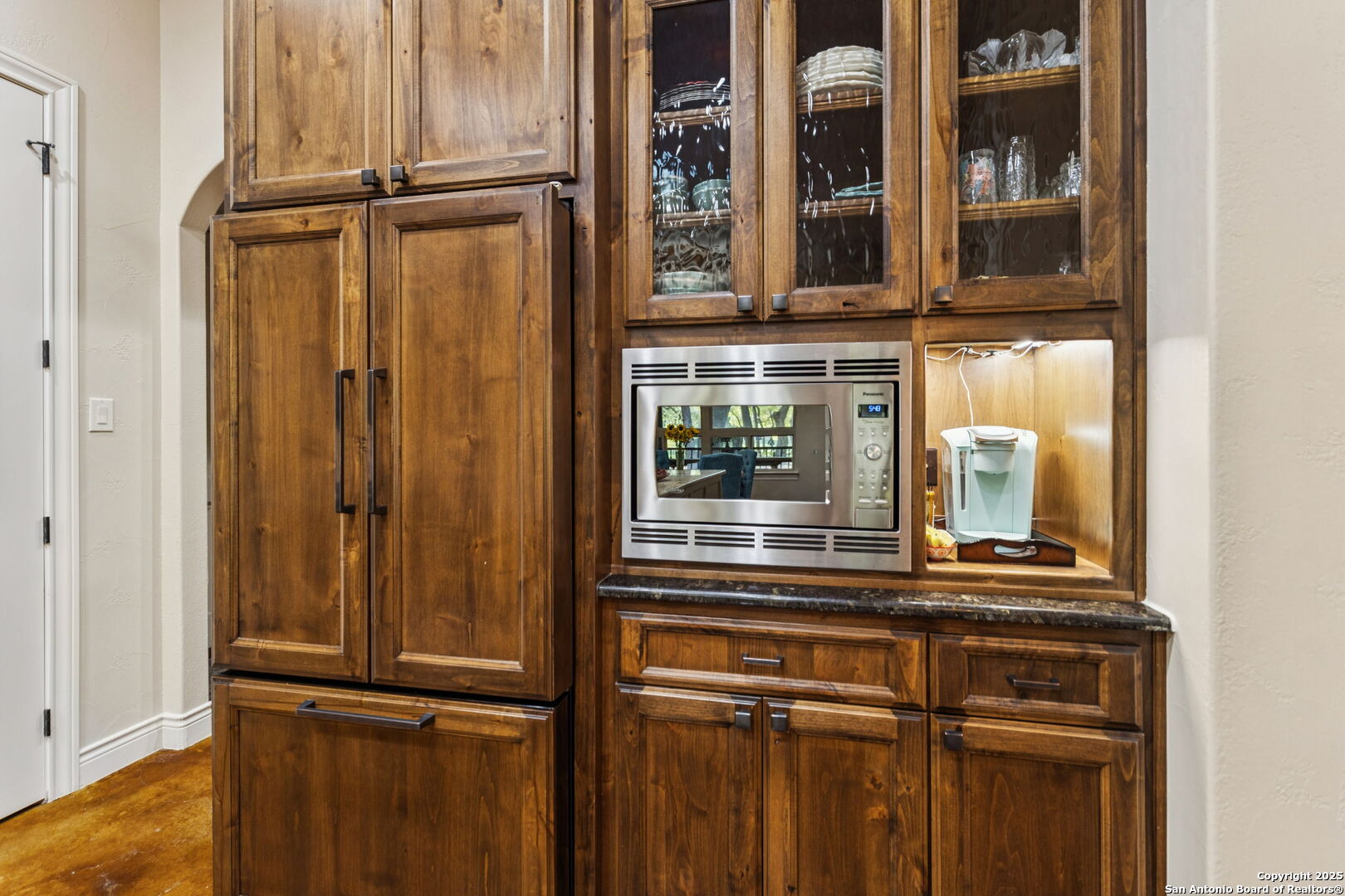 Under Appraised Value for a quick sale! This Robare custom home features 5 bedrooms and 4.5 bathrooms on a 1.04-acre green, wooded lot. Custom pull-out drawers, full-depth and slow-close cabinets in the kitchen and primary bath, high ceilings w/treatments of crown molding and rope lighting, 8 ft doors, stained concrete flooring, wood paneled appliances, built-in wine fridge and ovens, gas cooking, pot-filler above the cook-top, guest suite upstairs w/private bathroom, Silent Wall System insulation, walk-in custom-built closet in the primary suite. Screened-in porch with Green Egg grill, granite counter, and tile backsplash. All this leads to a seasonal creek with visiting white ducks. Follow the creek's trail and visit the fishing pond. Wired for 220V pool option. Request the complete list of upgrades for this custom home.