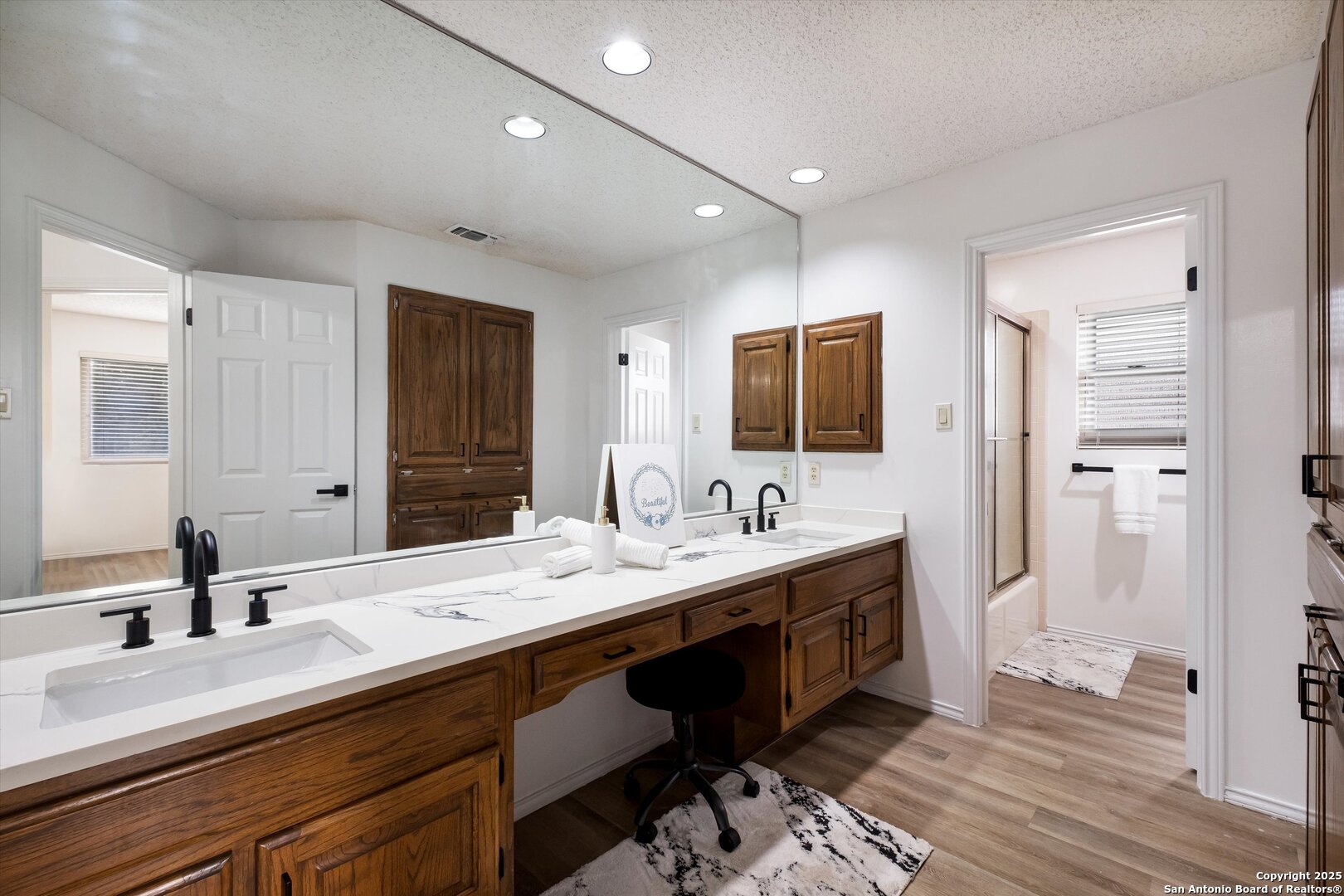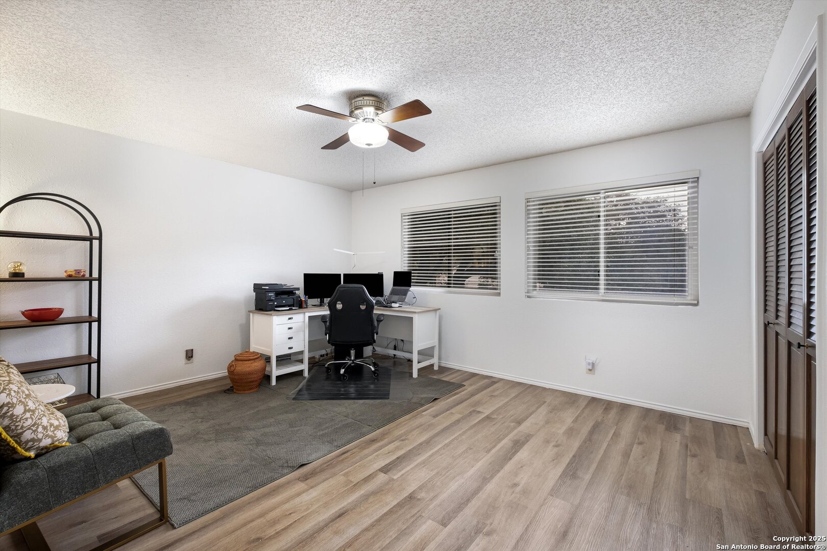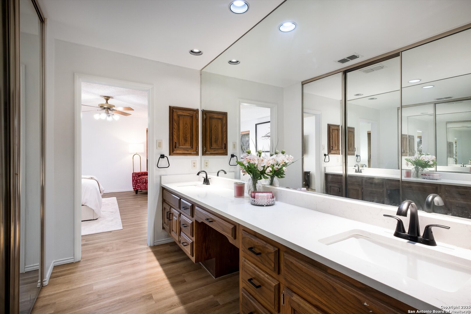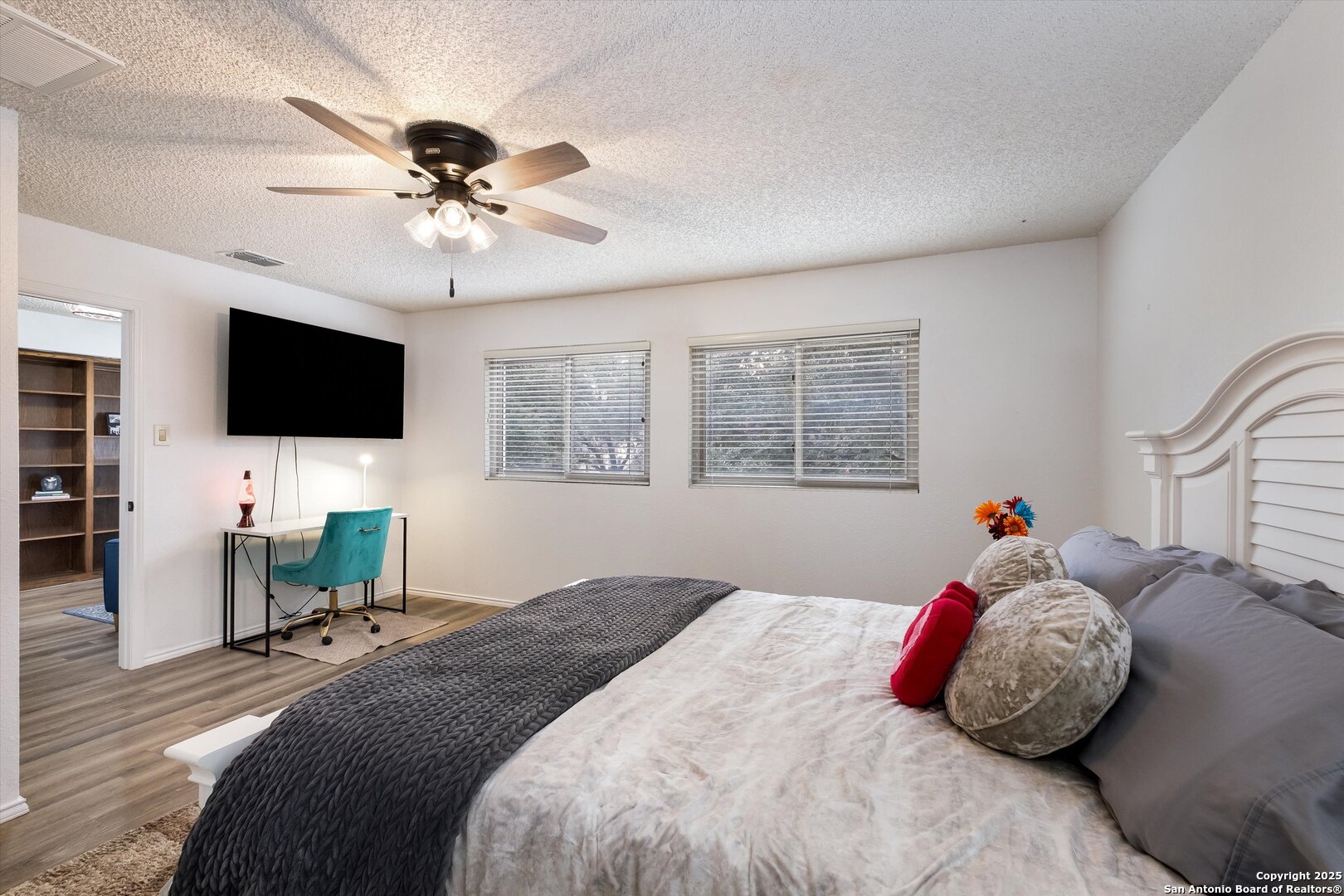 OPEN HOUSE WEEKEND: Saturday 11/15 from 1-3PM and Sunday 11/16 2-4M Introducing this update premier Sitterle built home. 4 bedrooms, 2.5 bath, and 3 CAR GARAGE in sought after Encino Park. Enjoy 3200 square feet of space - both living and closets/storage space! From the roomy entry to the seamless, two living and two dining areas, all surrounded by abundant natural light. This flowing floorplan is the perfect setting for both formal dining and grand entertaining! The chef's kitchen has been updated with gorgeous quartz countertops, induction cooktop, double ovens, and modern natural tone cabinetry. The kitchen offers more than enough countertop prepping area, options for coffee or tea station, plenty of storage and picturesque windows to the backyard is a perfect addition to bird watch, kid watch, or just enjoy the scenery while sipping on morning coffee. The modern yet cozy family room is open to the kitchen, has loads of natural light from scenic windows, has electronic shades and offers plenty of room for family and guests. The soothing neutral brick wall fireplace is the family rooms focal point offering warmth for cooler months and enjoying fireside chats. This wonderful floor plan also includes downstairs bathroom & spacious laundry room. Upstairs 4 generous size bedrooms and open loft area. The master has plenty of sitting room space, natural light and jaw-dropping gorgeous quartz countertops. Grand walk-in closet and walk in shower make the owners retreat a relaxing escape from busy days. 3 additional bedrooms upstairs flow well with everyday family living. The secondary bath has an extra long quartz countertop making it easier for more than two to use. The great outdoors entertainment area offers dual concrete patios, sprawling and spacious backyard, mature trees, and a very private park-like setting. Not to mention what that 3rd car garage has to offer, vehicles, storage or workshop. Additional *UPDATES* Renewal Windows by Anderson, Pella patio door in breakfast room, interior paint, updated Hardie siding, water softener, security, & irrigation system. Newer 16 Seer Trane heat pump system & 7-year tile roof. What a great location - close to schools, restaurants, shops, golf, military and medical, with nearby major highways such as 281, 1604 and minutes to IH35 and IH10. Active Community with Women's Club, Out to Lunch Bunch, Summer Swim league and so much more!! Walk to award winning NEISD Encino Park Elementary and Tejeda Middle schools. A short drive to Johnson High School and SA Christian School. Neighborhood Amenities: Pool, Tennis, Clubhouse, Park/Playground, Sports Court, Basketball Court, Volleyball Court and onsite HOA management. Come find out why this Sitterle built home in Encino Park is the next great place for you to live.
