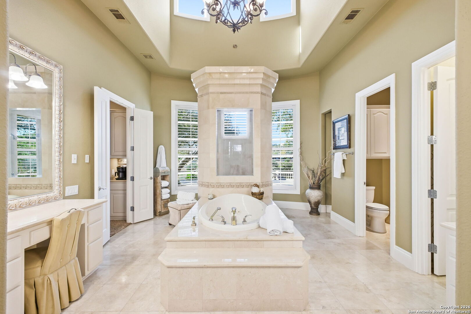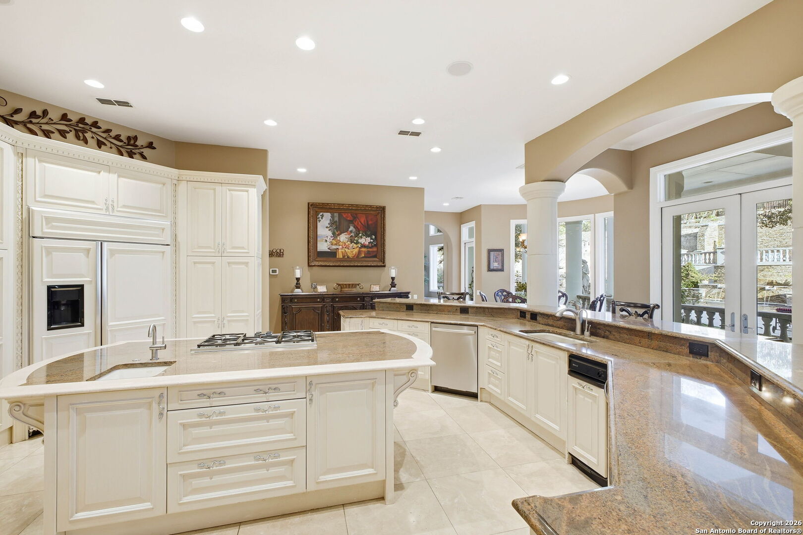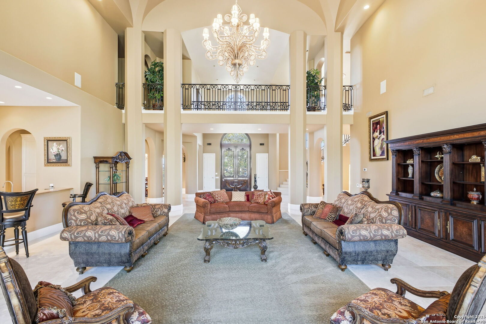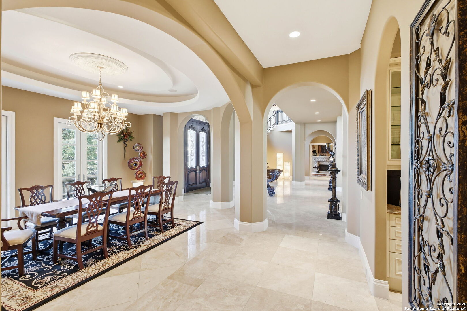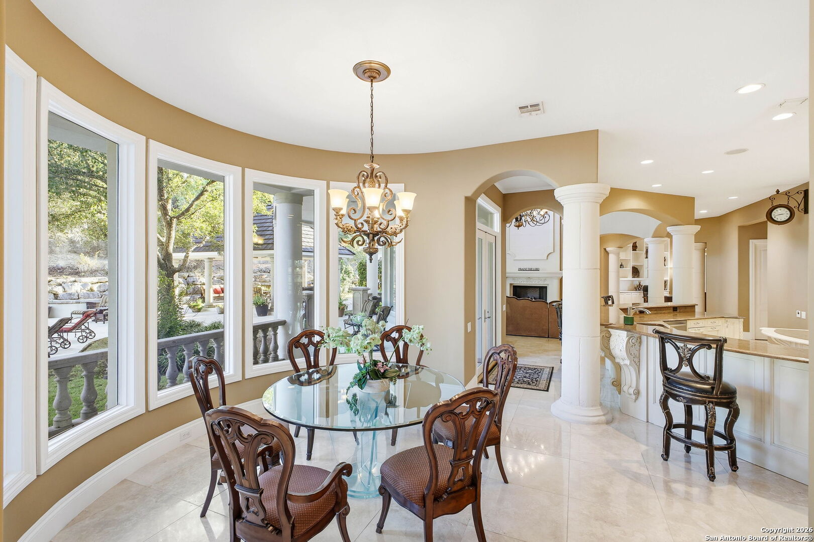 Perched gracefully atop a hill, this enchanting estate welcomes the most discerning buyer to experience timeless elegance and effortless luxury. A true French classic, 2 Admirals Way is a masterpiece of refined architecture and thoughtful design. Beyond the intricate wrought-iron gates, you're greeted by a sense of serenity and privacy, where lush, manicured grounds gently guide you home. Inside, soaring ceilings and expansive windows flood the residence with natural light, creating a seamless connection between the indoors and the breathtaking surroundings. Grand living spaces frame stunning views of the Hollywood-style pool, spa, and gazebo-perfectly designed for both intimate gatherings and unforgettable celebrations, blending indoor comfort with resort-style outdoor living. The Owner's retreat is a sanctuary unto itself, offering a lavish bath, private exercise room, and an elegant study or library-ideal for work, relaxation, or quiet reflection. Impeccably maintained, this seven-bedroom, eight-bath estate is perfectly suited for hosting family and friends and for memorable staycations. Located within The Crescent at The Dominion, one of San Antonio's most prestigious guarded and gated communities, this exceptional home offers a lifestyle defined by privacy, prestige, and grace. A MUST SEE!!
