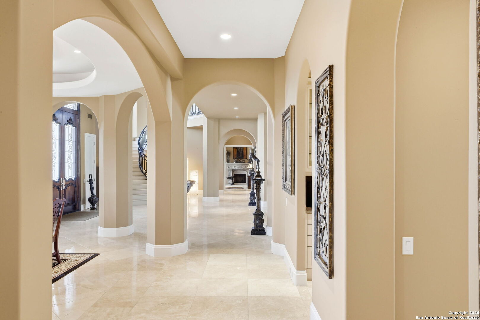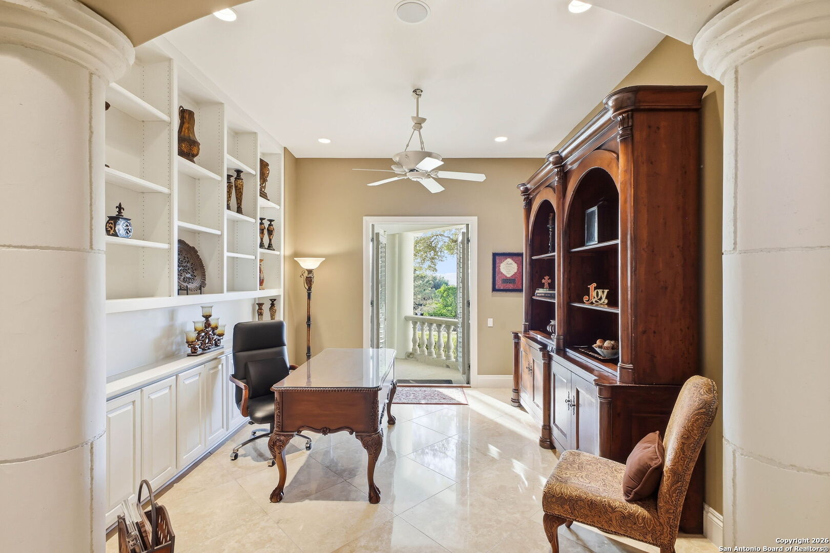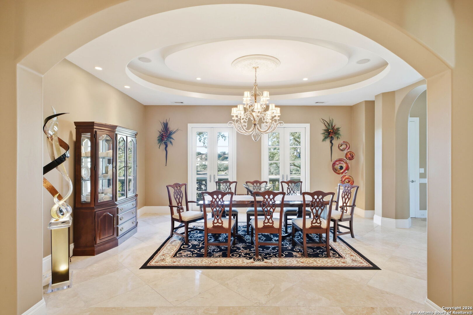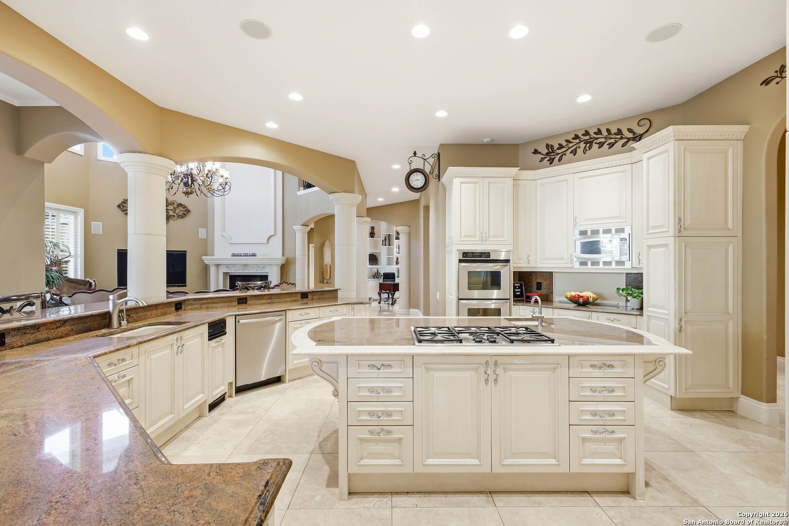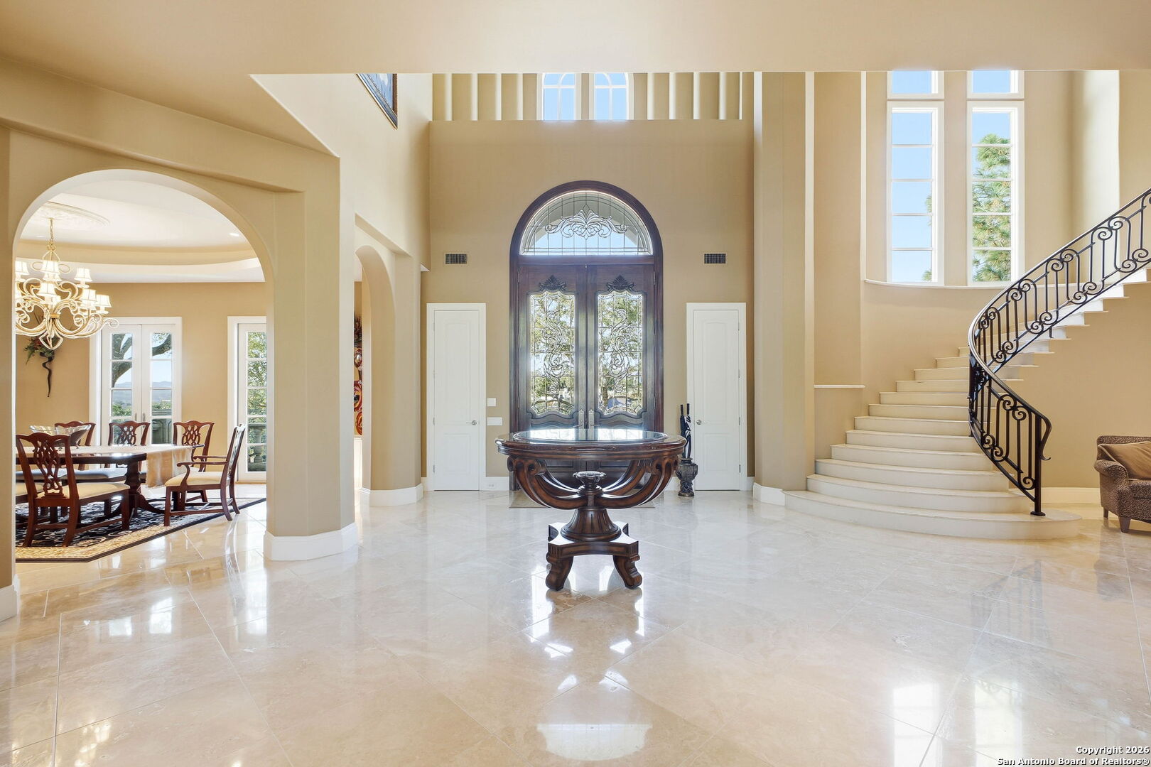 Perched gracefully atop a hill, this enchanting estate welcomes the most discerning buyer to experience timeless elegance and effortless luxury. A true French classic, 2 Admirals Way is a masterpiece of refined architecture and thoughtful design. Beyond the intricate wrought-iron gates, you're greeted by a sense of serenity and privacy, where lush, manicured grounds gently guide you home. Inside, soaring ceilings and expansive windows flood the residence with natural light, creating a seamless connection between the indoors and the breathtaking surroundings. Grand living spaces frame stunning views of the Hollywood-style pool, spa, and gazebo-perfectly designed for both intimate gatherings and unforgettable celebrations, blending indoor comfort with resort-style outdoor living. The Owner's retreat is a sanctuary unto itself, offering a lavish bath, private exercise room, and an elegant study or library-ideal for work, relaxation, or quiet reflection. Impeccably maintained, this seven-bedroom, eight-bath estate is perfectly suited for hosting family and friends and for memorable staycations. Located within The Crescent at The Dominion, one of San Antonio's most prestigious guarded and gated communities, this exceptional home offers a lifestyle defined by privacy, prestige, and grace. A MUST SEE!!