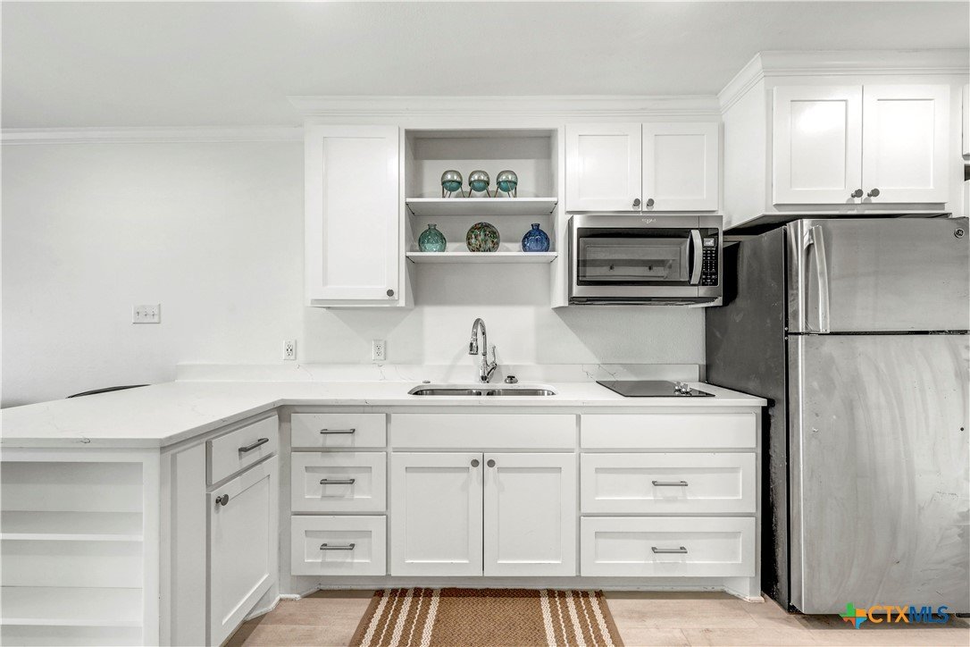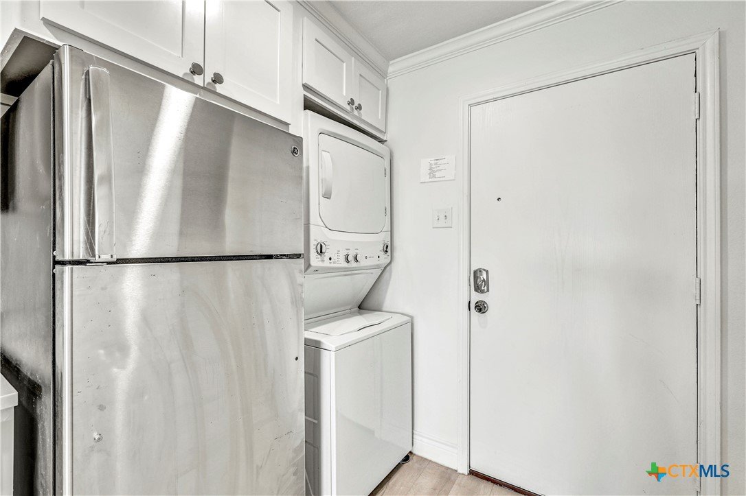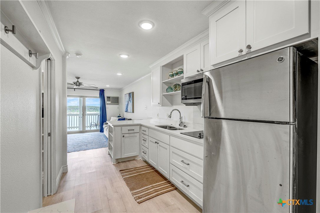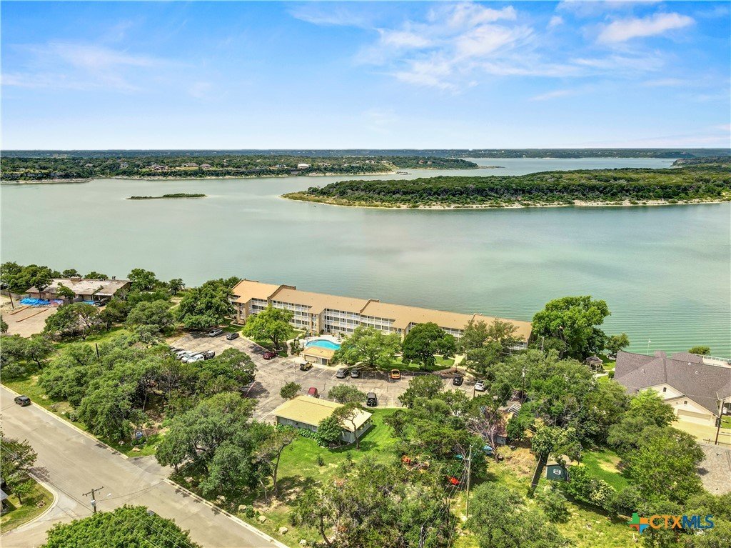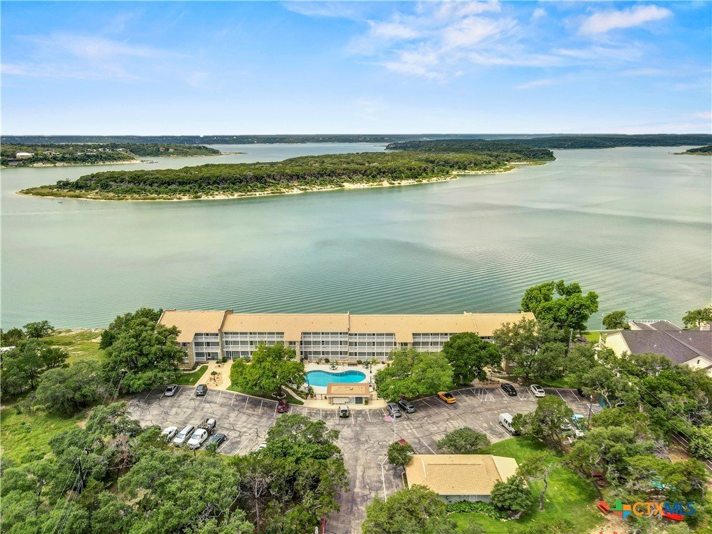 Turnkey Lakefront Condo with Sereken Lake Belton Views! Perfect 1st story condominium efficiency with lake and hill country views. Murphy Bed that folds up and down for easy lifestyle for perfect weekend living or full-time living. Fully equipped kitchen with pantry and refrigerator and stack washer/dryer. Two boat ramp access within 2 miles. Across the street, park with tennis courts, basketball court and playground that has been completely redone. Enjoy lakeside living with amenities like a sparkling pool and sun deck, cozy firepit, canoe and kayak storage, and an on-site greenhouse. Guest accommodations make hosting easy, while nearby parks, tennis courts, playgrounds, and a community center. Boat ramps and marinas are just minutes away, and an on-site manager keeps everything running smoothly. Escape the hustle and bustle of city life and embrace easy living at this beautifully updated, move-in ready condo overlooking picturesque Lake Belton.