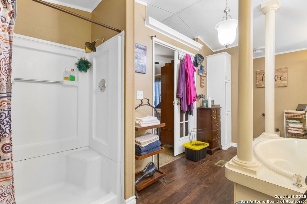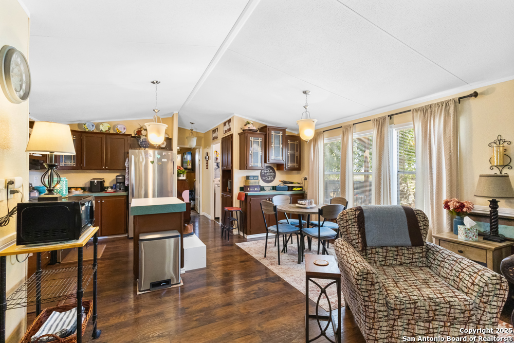 Beautifully maintained 18' x 76' single-wide manufactured home offering 3 spacious bedrooms and 2 full baths. This inviting residence features an open floor plan with an island kitchen, perfect for entertaining and everyday living. The kitchen includes a generous walk-in pantry providing excellent storage space. Pride of ownership shows throughout with its well-kept interior and move-in-ready condition. The backyard offers plenty of room to relax or work, a 40-foot Conex storage unit with electricity-negotiable . A wonderful opportunity for comfortable living with great functionality and value!