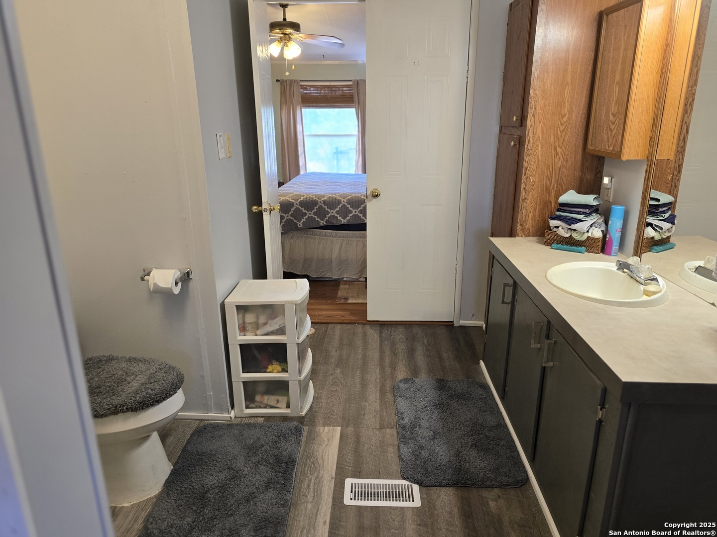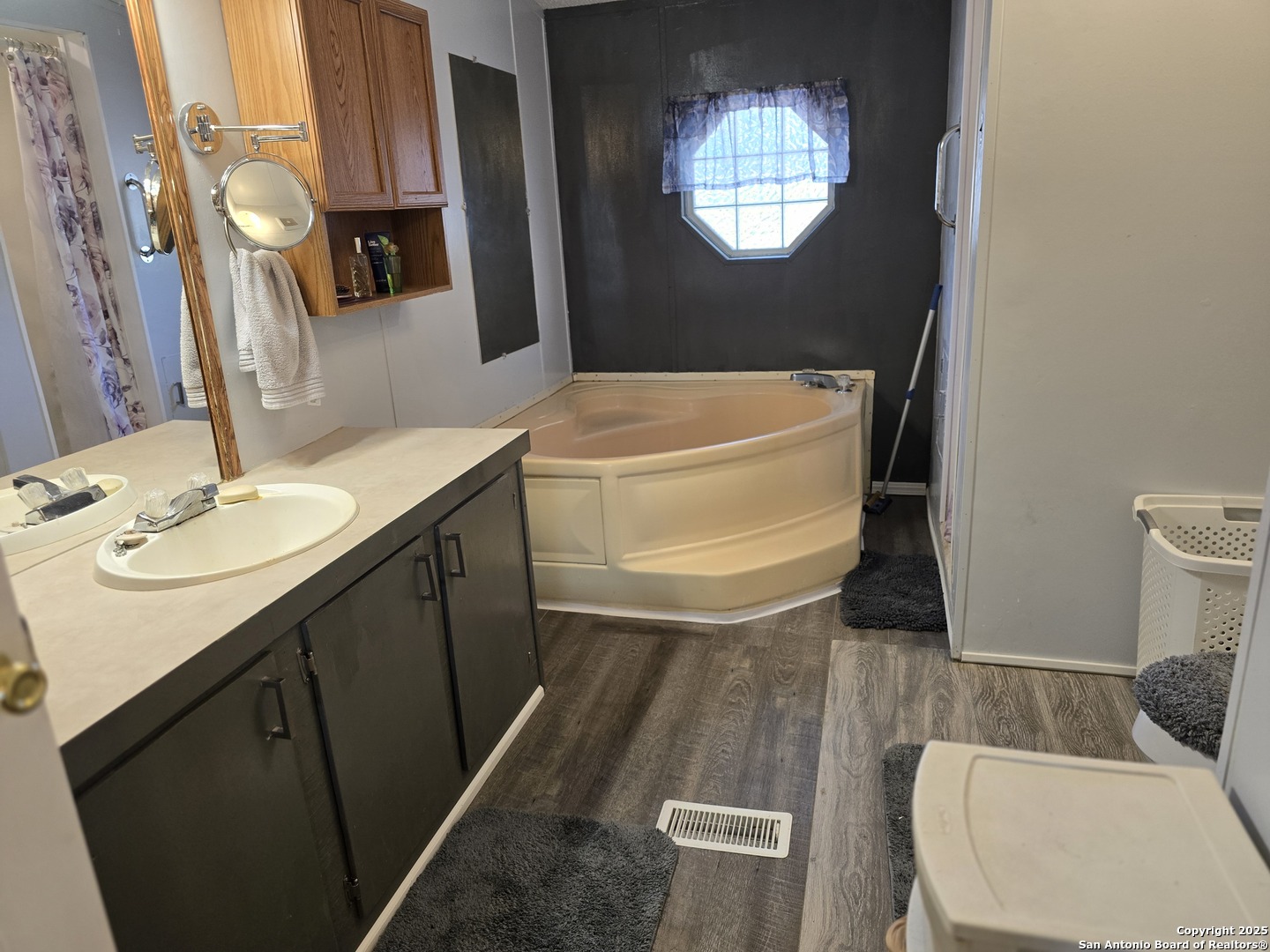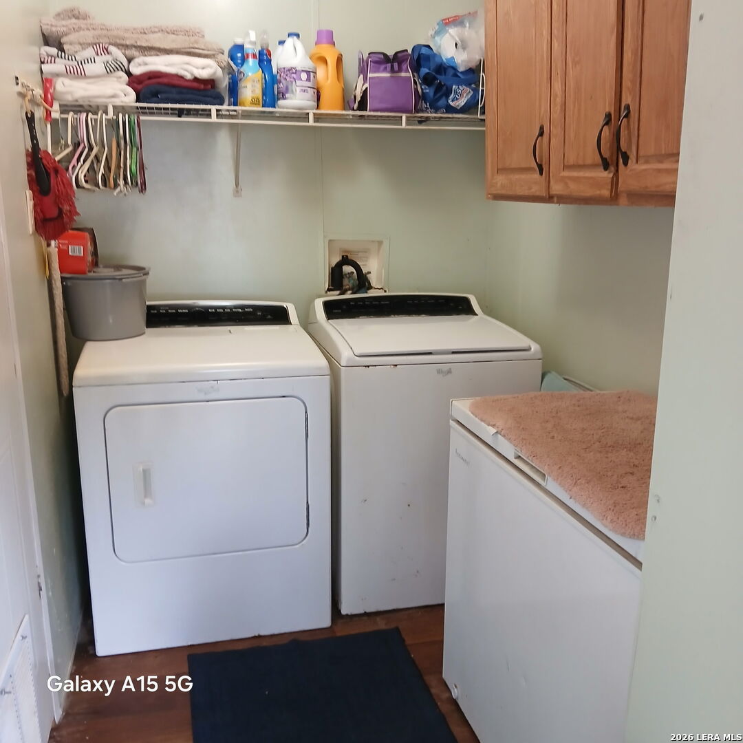 Spacious and comfortable 3-bedroom, 2-bath home on over half an acre in charming Lake Medina Shores. Featuring all-laminate flooring throughout, this home is wheelchair-accessible both inside and out, with a handicap ramp for easy entry. The interior is neat and well-maintained, offering a large primary suite with a garden tub and beautifully tiled shower. Two guest bedrooms share a full hall bath. The open kitchen and breakfast area flow nicely into the oversized laundry room just off the kitchen. HVAC system was replaced 4 years ago and comes with a 10-year warranty, while the septic system was also replaced 4 years ago. Enjoy the shady backyard and freshly painted deck-perfect for relaxing or entertaining. A brand-new roof with a transferable warranty was recently installed. With minimal deed restrictions, you'll appreciate the freedom to enjoy the neighborhood's lake access, clubhouse, and pool.