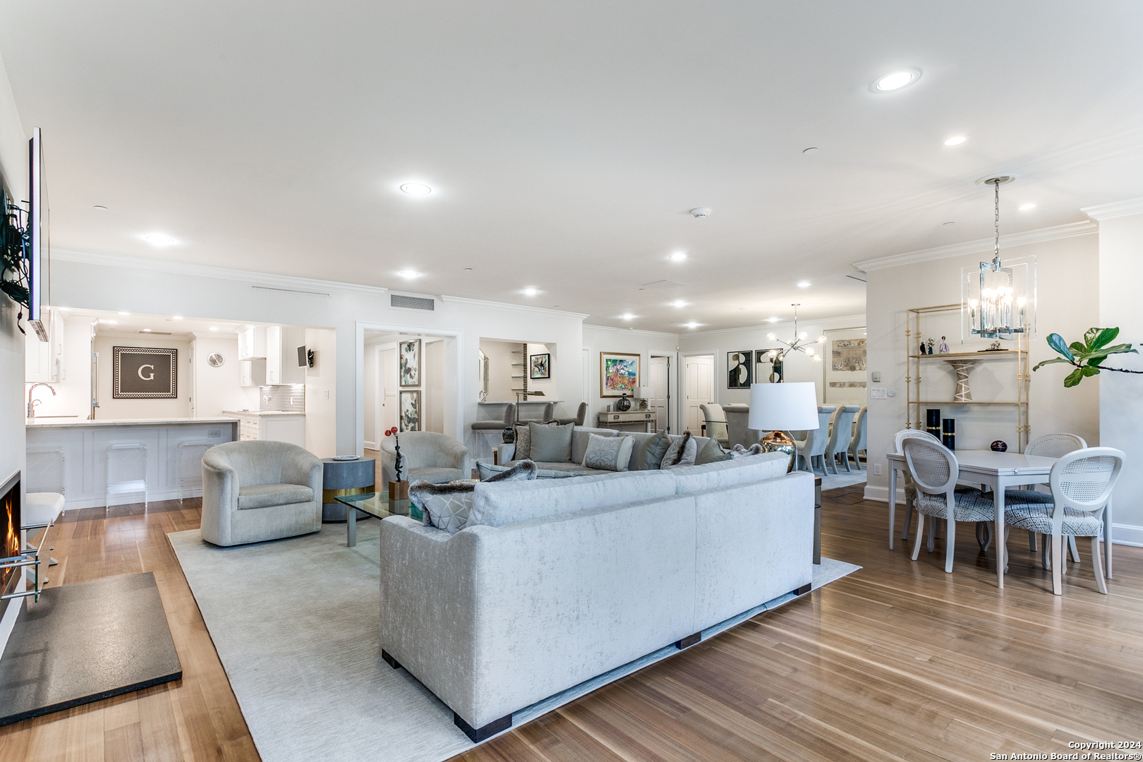 Beautifully updated, oversized unit on the 1st floor at prestigious 200 Patterson. The flexible floorplan has amazing storage throughout this 2 bedroom, 2.5 bathroom with 2 living areas. 4 parking spaces in garage! Kitchen opens to living room with quartzite countertops, custom cabinetry and stainless appliances. Beautiful wet bar opens to living/dining is great for entertaining. Large pantry/utility room with floor to ceiling custom cabinets. Master bedroom has room for sitting area, huge walk-in closet. Spa like master bath with walk in shower, separate water closet and large vanity. Family room/den with built-ins could be used as third bedroom. Second bedroom with private bath. Balcony off of living/dining room looks out to the tree tops.