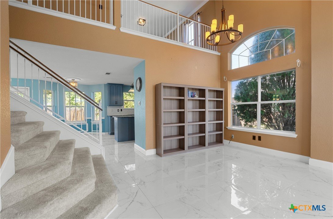 Welcome to this well-maintained two-story home located in a quiet neighborhood surrounded by mature trees and conveniently situated right across the street from a school. The first floor features tile flooring throughout, a formal dining area, and a bright living room with vaulted ceilings. The kitchen includes granite countertops and offers an ideal layout for both daily use and entertaining. A half bath is also located downstairs for added convenience. All bedrooms are located on the second floor, along with a flexible loft space that overlooks the living room, perfect for a home office, playroom, or additional living area. The primary suite includes an ensuite bath with a soaking tub for relaxing at the end of the day. Enjoy the outdoors on the covered back patio, ideal for casual gatherings or quiet mornings. This home offers an inviting layout and a peaceful setting.