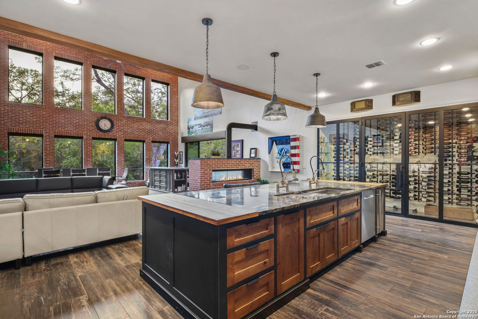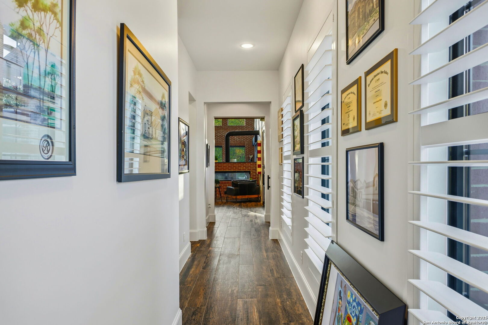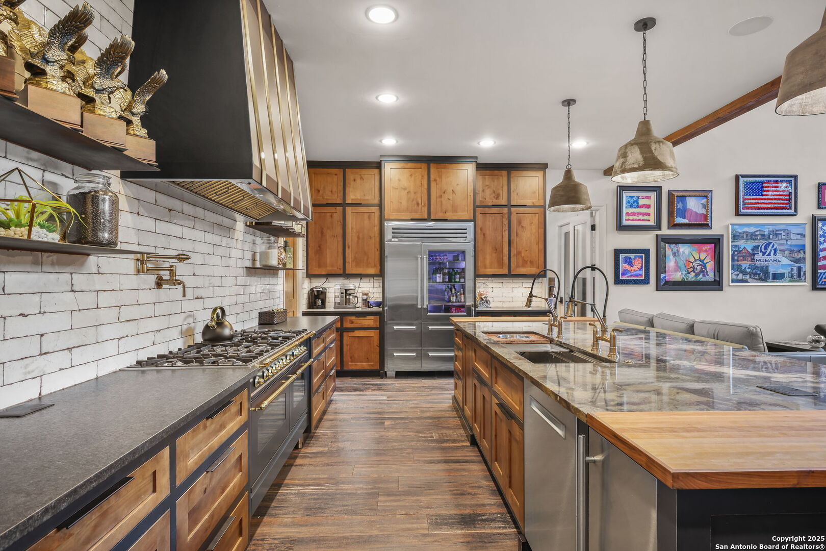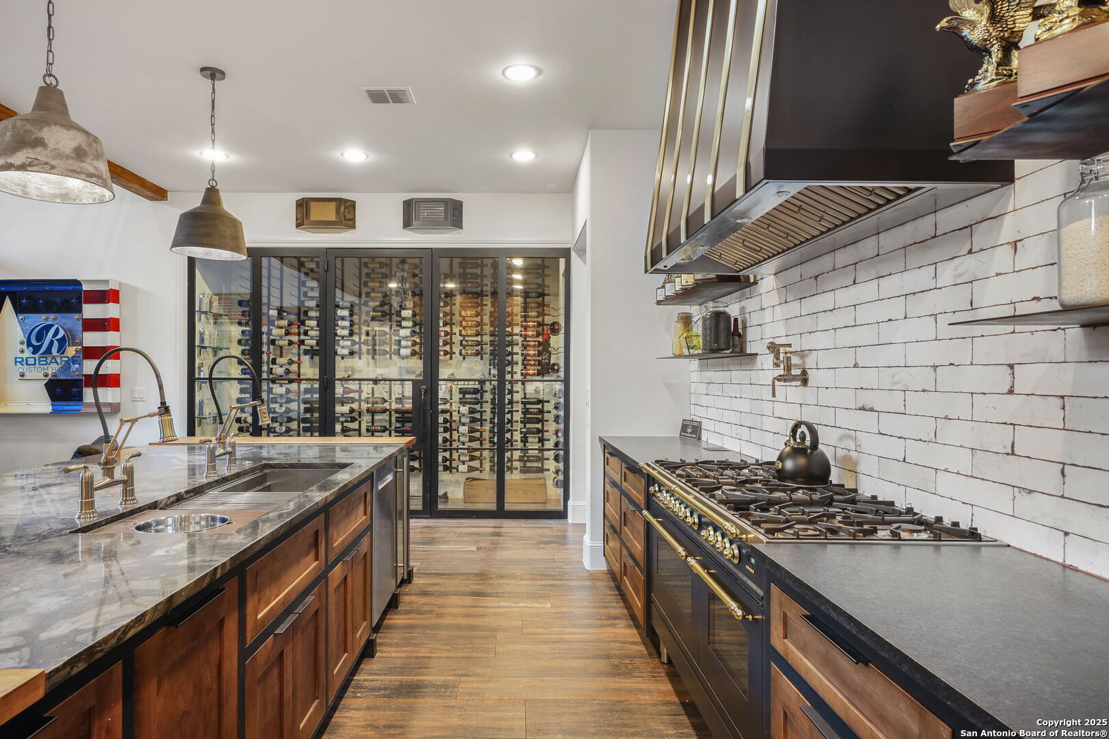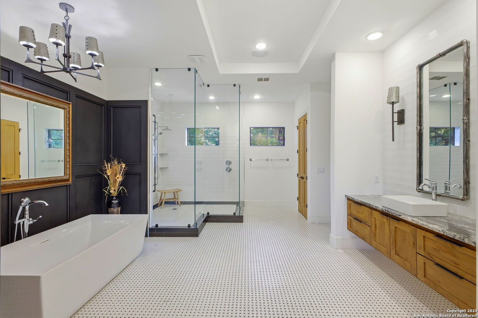 Discover the perfect blend of luxury, craftsmanship, and Hill Country charm in this stunning custom-built home by award-winning builder Mike Robare, set on a peaceful 1.92-acre estate in the desirable San Antonio-Helotes area. From the moment you arrive, you'll be captivated by the home's striking architecture, immaculate landscaping, and the sense of privacy that comes with nearly two acres of gently rolling land surrounded by mature oak trees. Inside, you'll find a thoughtfully designed floor plan that balances elegance and comfort. Every detail reflects Robare's signature quality-rich woodwork, hand-selected materials, high ceilings, and abundant natural light that pours in through expansive windows. The spacious living areas flow seamlessly from one to the next, creating an inviting atmosphere for both grand entertaining and quiet family moments. The gourmet kitchen is a chef's dream, featuring custom cabinetry, premium appliances, a large center island, temperature control wine cellar and ample space for gathering. The primary suite offers a true retreat, complete with a spa-like bath, luxurious finishes, and beautiful views of the surrounding landscape. Additional bedrooms and flex spaces provide versatility for guests, home offices, or creative pursuits. A unique custom train feature adds a touch of whimsy and character, making this home truly one-of-a-kind-a nod to craftsmanship and creativity rarely seen in modern builds. Step outside to enjoy the expansive outdoor living spaces designed for year-round enjoyment. Relax under the stars, or take in the serenity of your private acreage. With plenty of space for a future pool, garden, or even additional structures, the possibilities are endless. Located just minutes from premier shopping, dining, and highly rated schools, yet offering the peace and privacy of country living, this home perfectly captures the best of both worlds. This extraordinary Mike Robare custom home is not just a place to live-it's a place to experience, a place where every detail tells a story of quality, beauty, and craftsmanship.