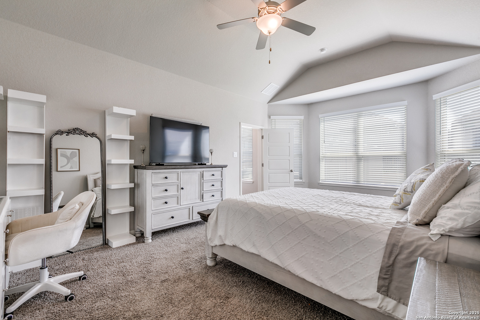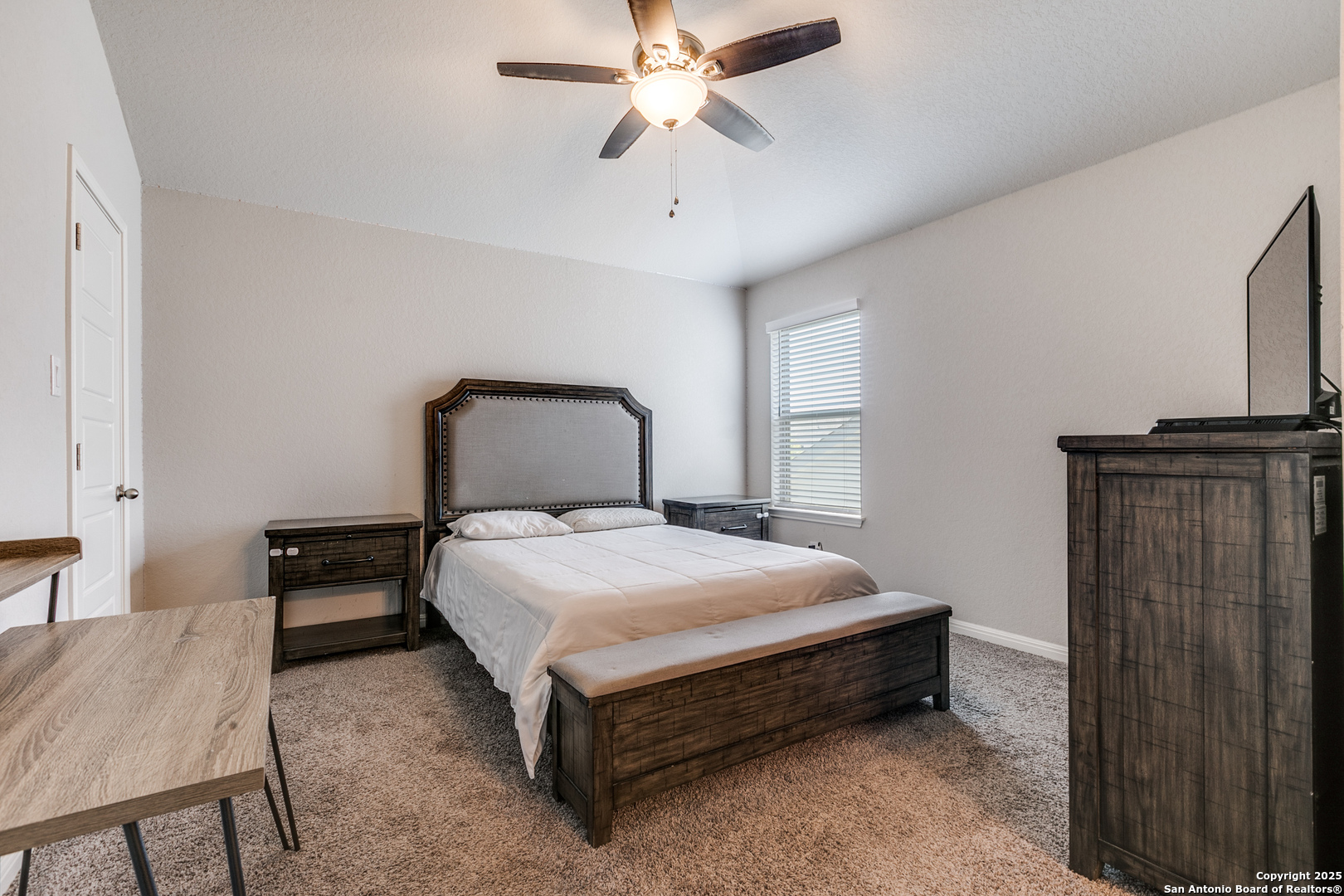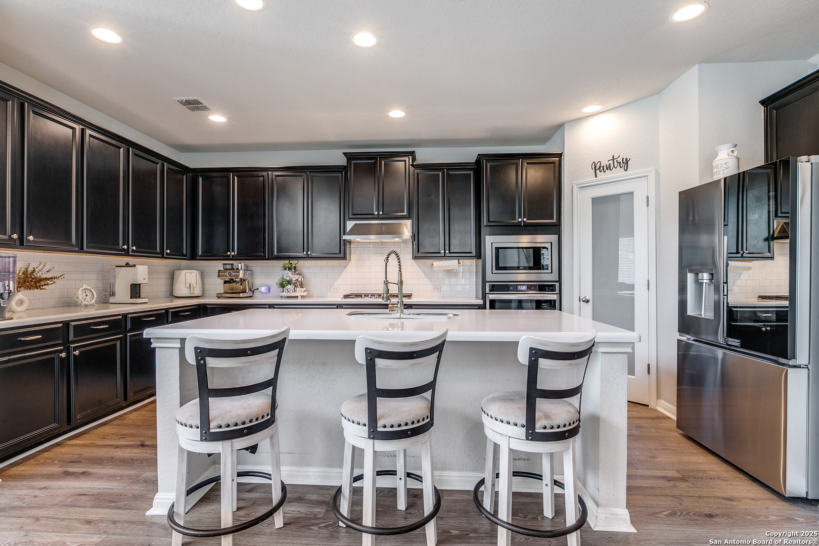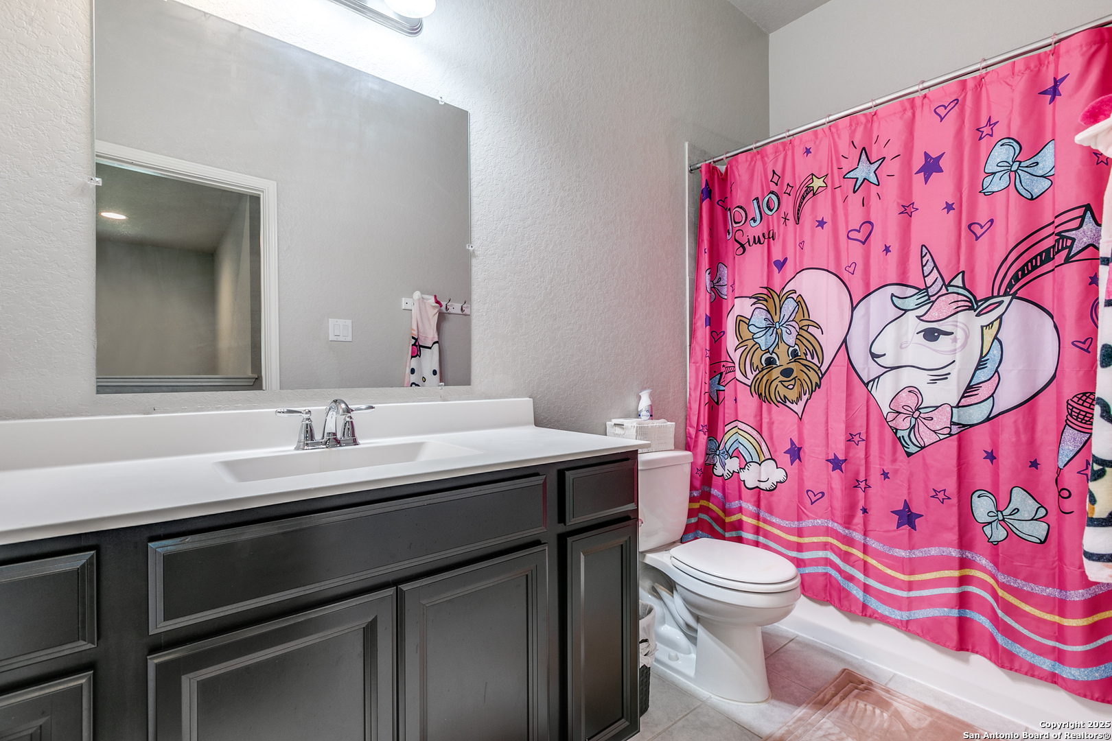Welcome to your dream home in the heart of San Antonio! This stunning 5-bedroom, 4-bath home offers the perfect blend of space, style, and comfort. Step inside to soaring ceilings, an abundance of natural light, and an open-concept floor plan designed for modern living. The chef's kitchen is a true centerpiece with an island that opens to the living area, complete with stainless steel appliances, gas cooktop, built-in oven/microwave, recessed lighting, and rich espresso cabinets. Fresh laminate wood floors flow throughout the main living spaces, creating a warm and inviting atmosphere. The first-floor owner's retreat is your private getaway, featuring dual walk-in closets, a spa-like bath with a large garden tub, and a separate walk-in shower. The main level also includes a dedicated office, a full guest bath, and a built-in mudroom conveniently located off the oversized laundry room. Upstairs, you'll find endless entertainment space with a game room, media room, and a built-in workstation-perfect for work or study. Two bedrooms share a Jack-and-Jill bath, while two additional bedrooms have their own full bath. Enjoy evenings on your covered patio overlooking the large backyard for outdoor fun. Bonus features include: walk-in closets in every bedroom, soft interior paint colors, a gas port for outdoor grilling, and an ADT security system that conveys with the sale. Conveniently located near top-rated schools, shopping, and major highways for an easy commute. This home truly has it all-space, upgrades, and a lifestyle you'll love!