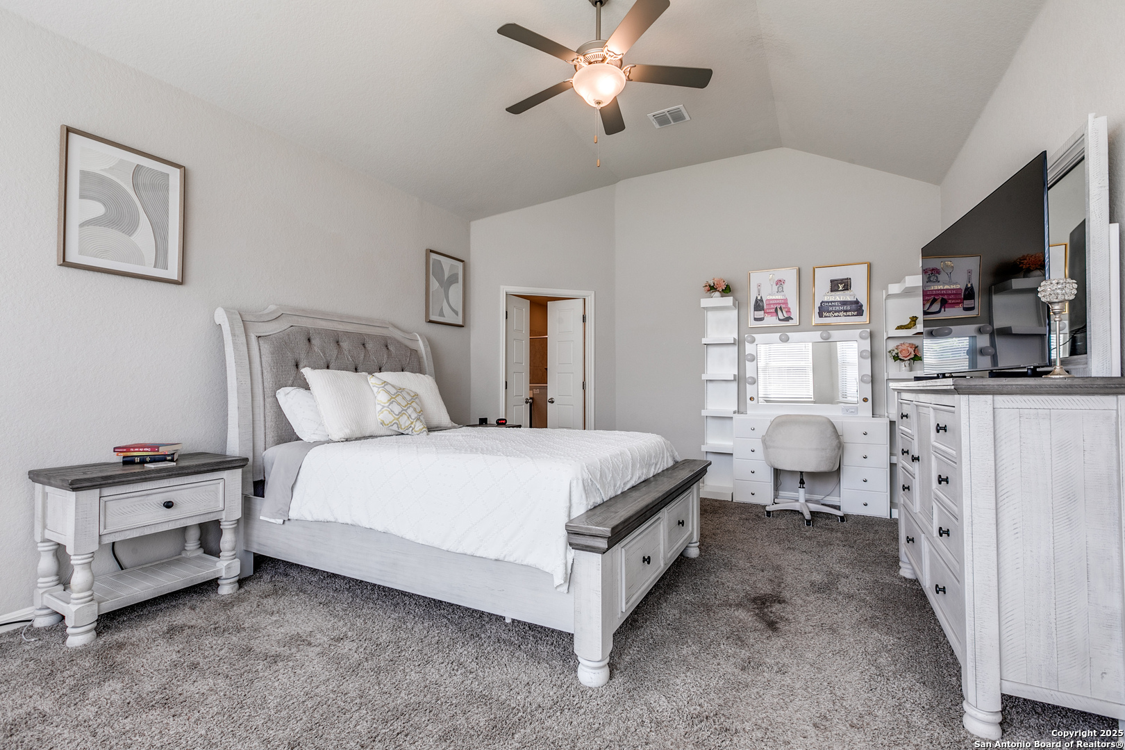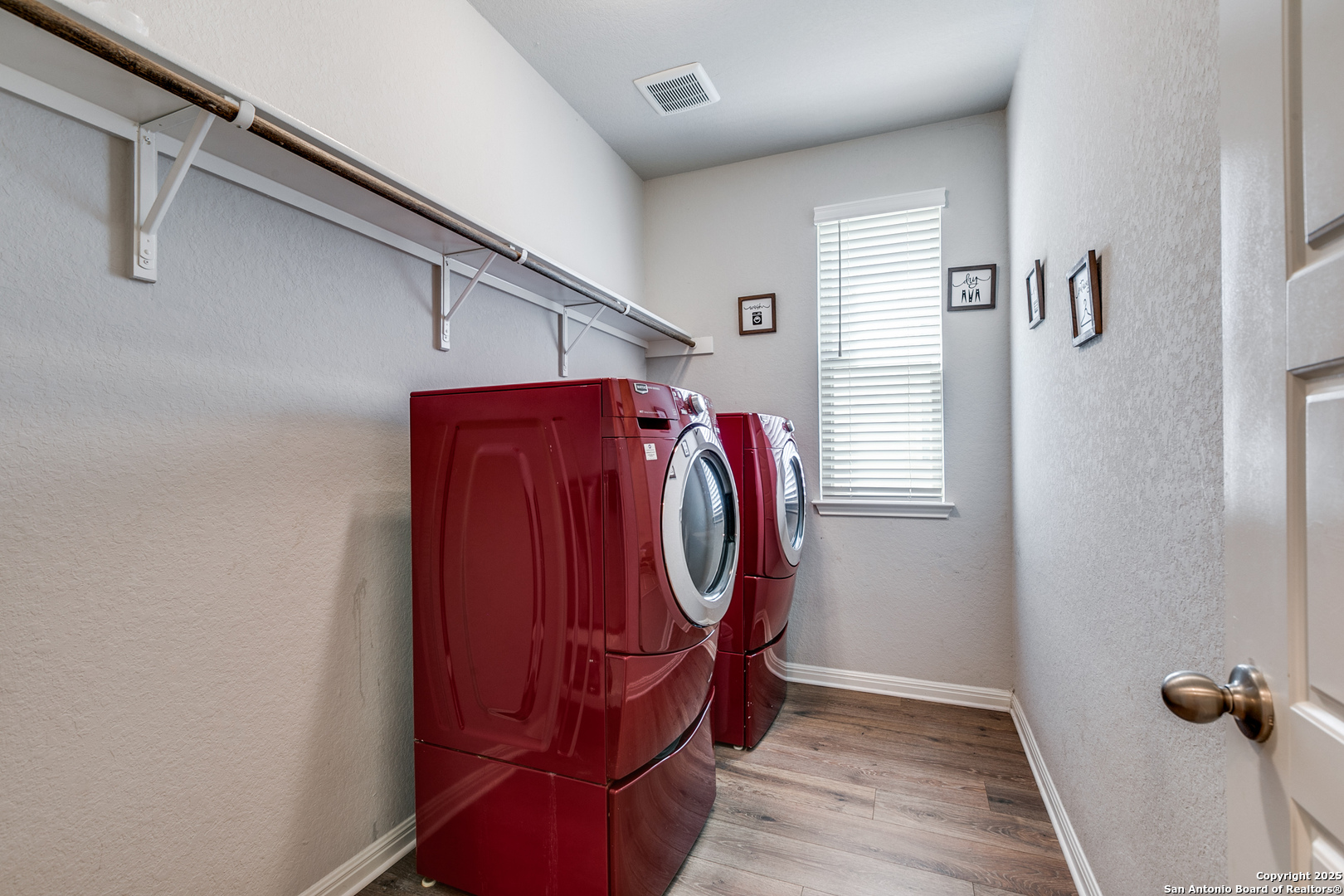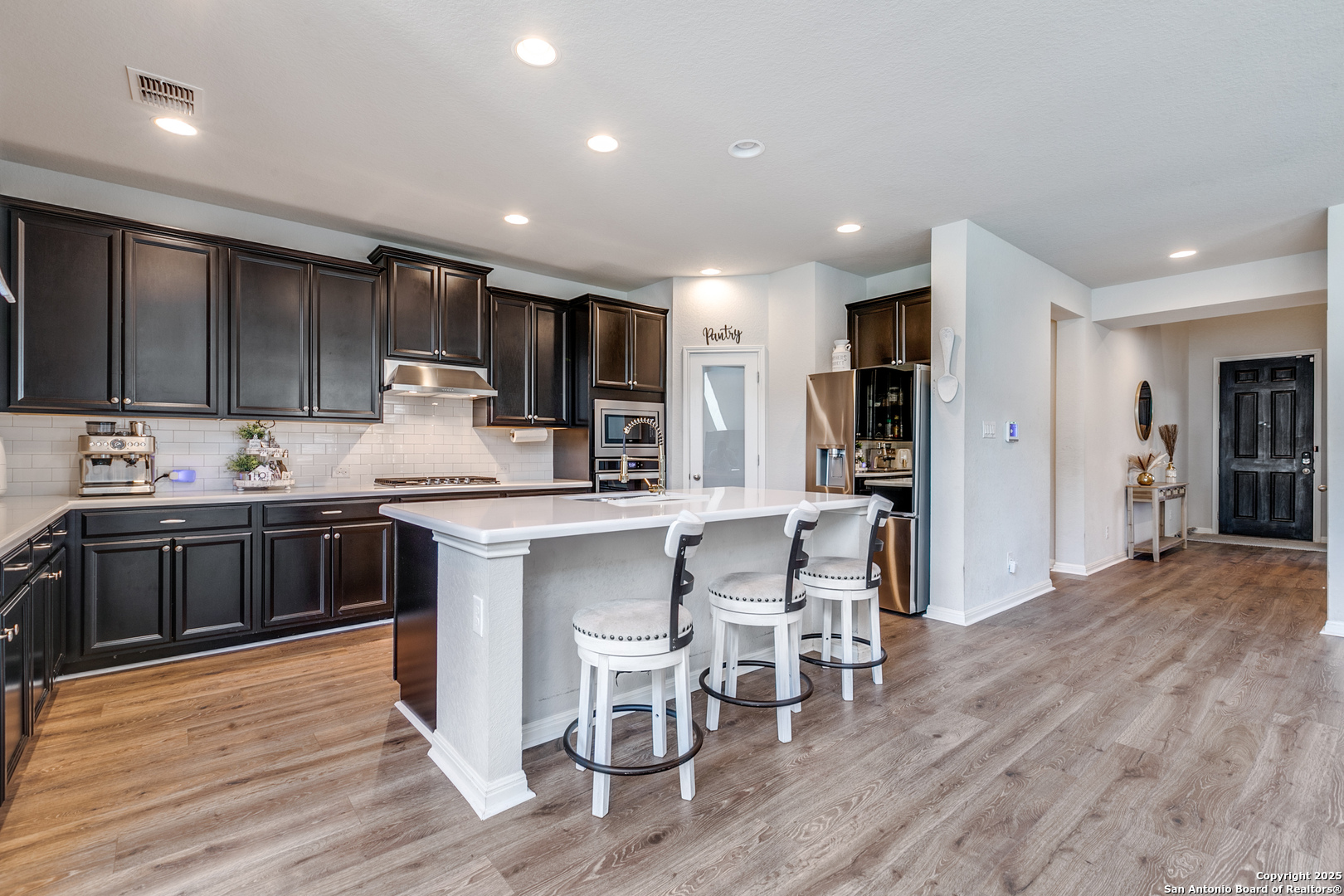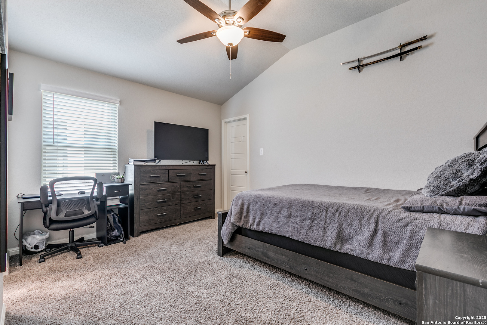Welcome to your dream home in the heart of San Antonio! This stunning 5-bedroom, 4-bath home offers the perfect blend of space, style, and comfort. Step inside to soaring ceilings, an abundance of natural light, and an open-concept floor plan designed for modern living. The chef's kitchen is a true centerpiece with an island that opens to the living area, complete with stainless steel appliances, gas cooktop, built-in oven/microwave, recessed lighting, and rich espresso cabinets. Fresh laminate wood floors flow throughout the main living spaces, creating a warm and inviting atmosphere. The first-floor owner's retreat is your private getaway, featuring dual walk-in closets, a spa-like bath with a large garden tub, and a separate walk-in shower. The main level also includes a dedicated office, a full guest bath, and a built-in mudroom conveniently located off the oversized laundry room. Upstairs, you'll find endless entertainment space with a game room, media room, and a built-in workstation-perfect for work or study. Two bedrooms share a Jack-and-Jill bath, while two additional bedrooms have their own full bath. Enjoy evenings on your covered patio overlooking the large backyard for outdoor fun. Bonus features include: walk-in closets in every bedroom, soft interior paint colors, a gas port for outdoor grilling, and an ADT security system that conveys with the sale. Conveniently located near top-rated schools, shopping, and major highways for an easy commute. This home truly has it all-space, upgrades, and a lifestyle you'll love!