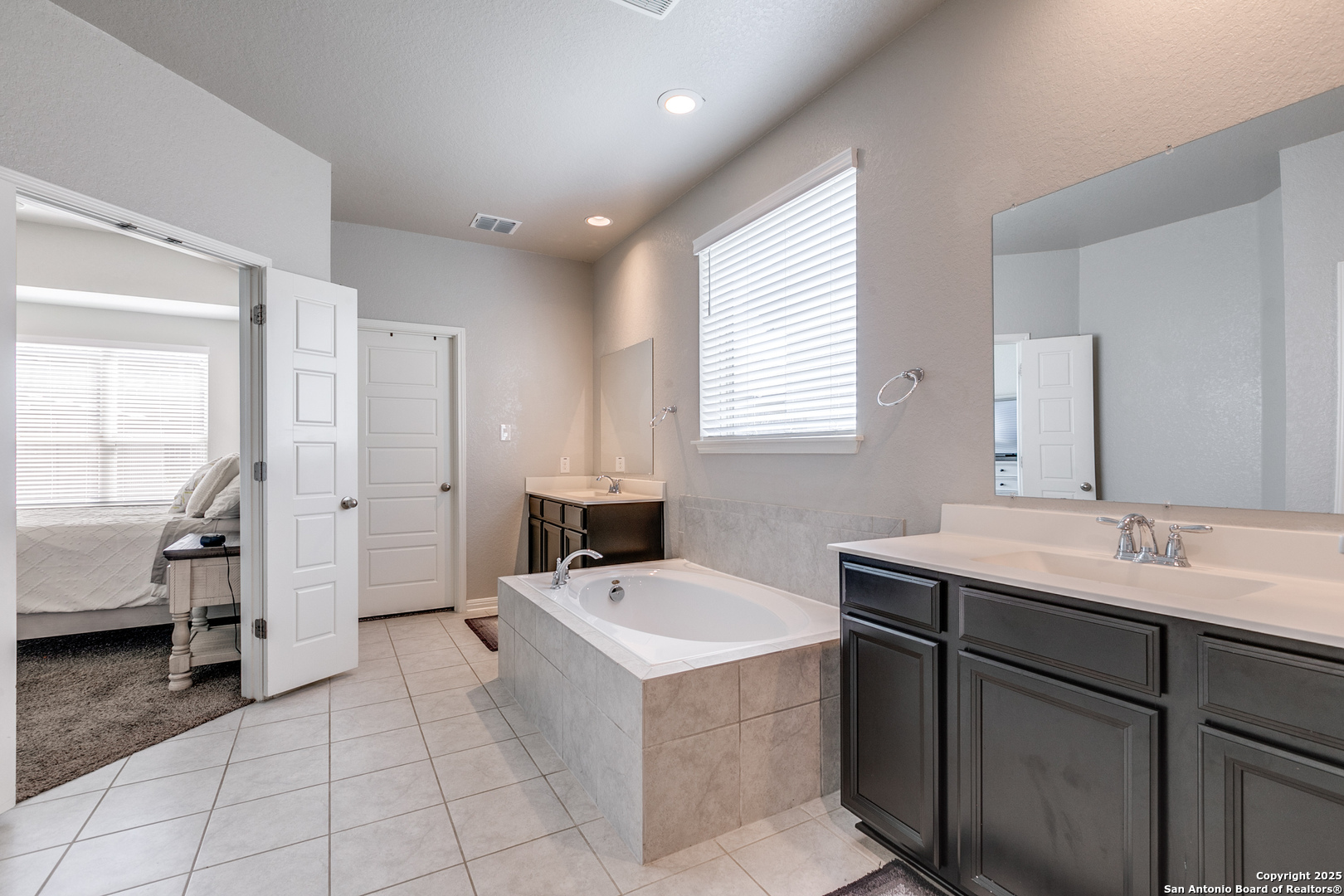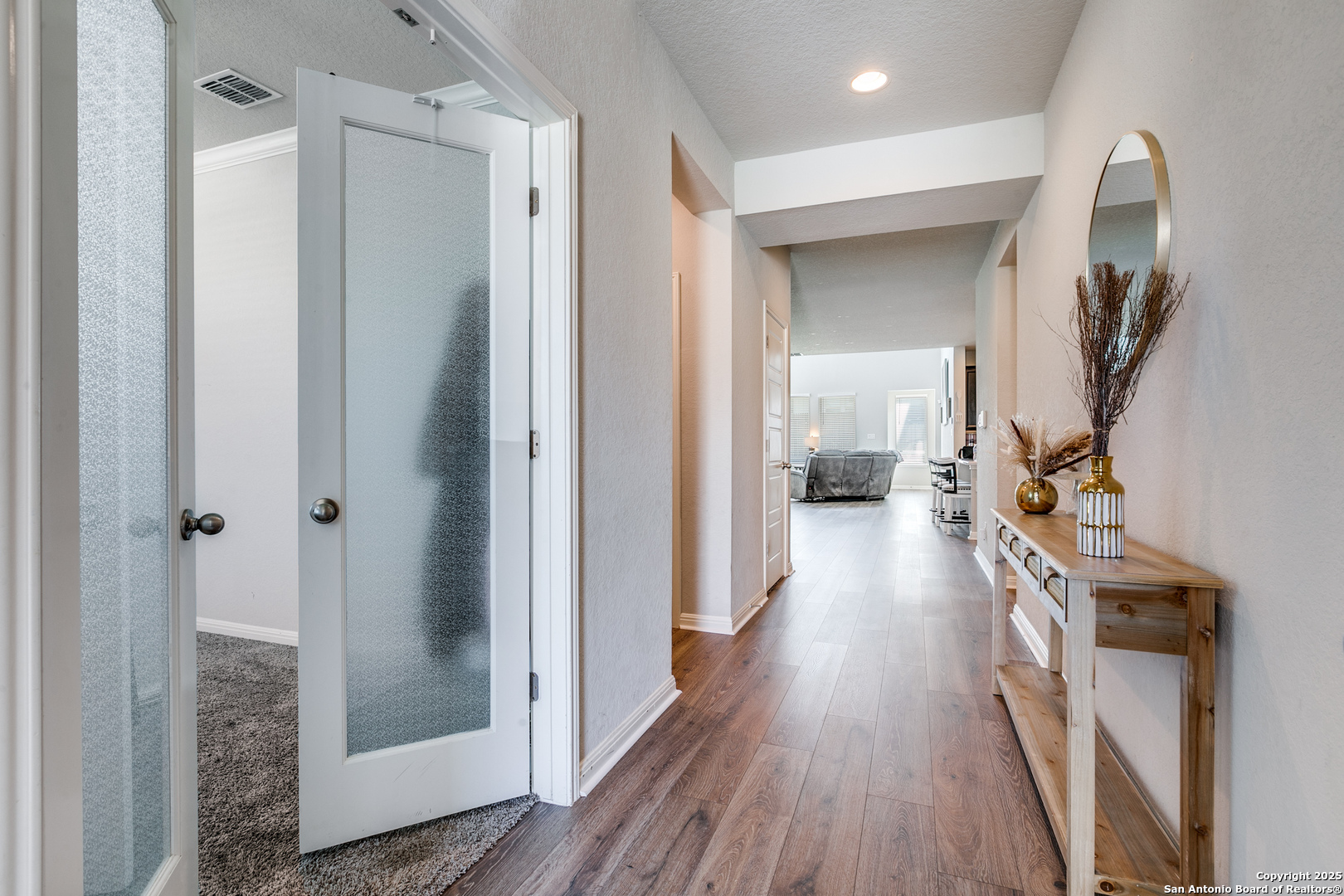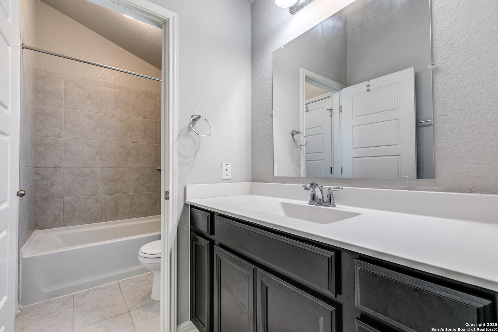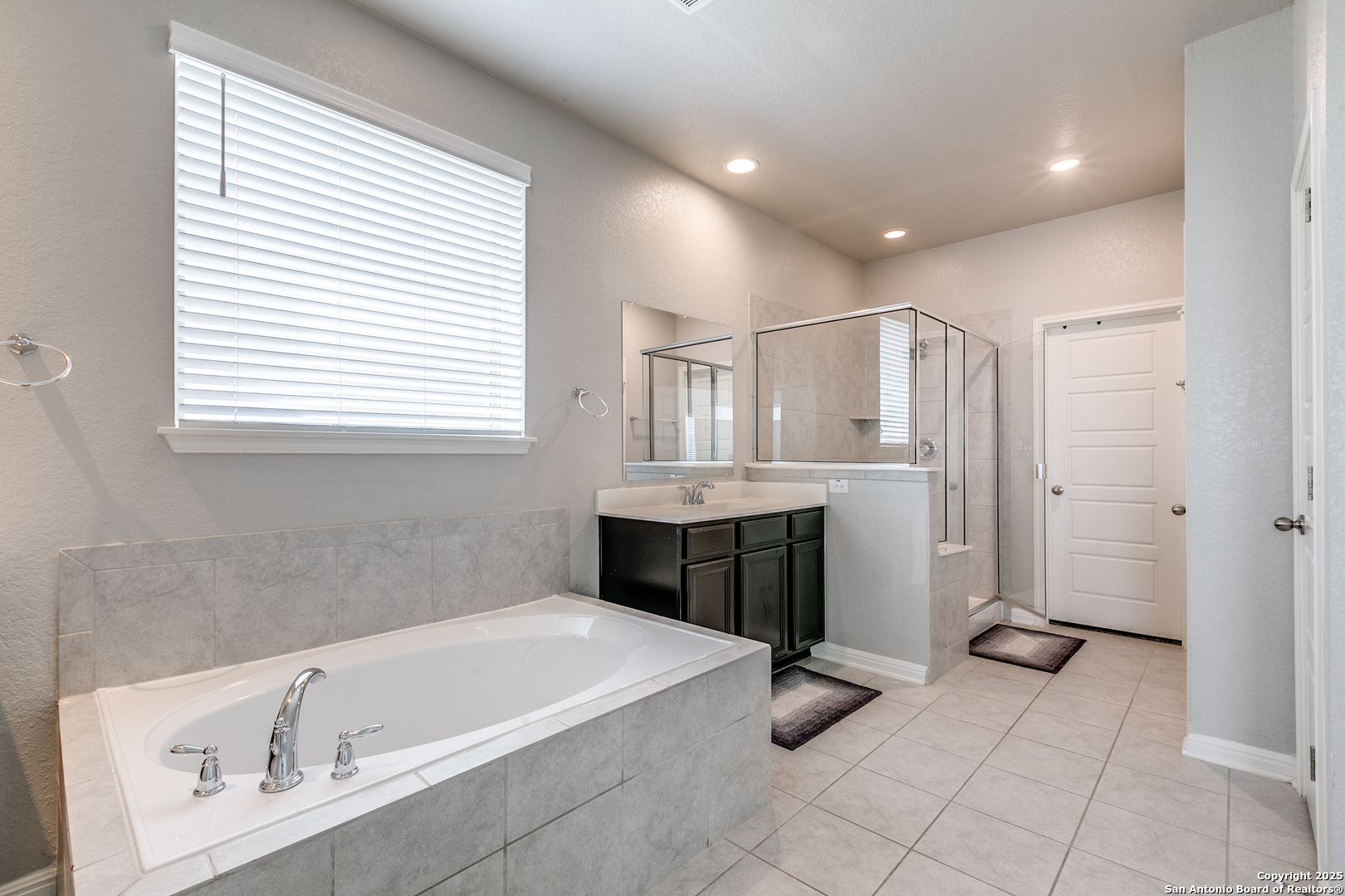 Welcome to your dream home in the heart of San Antonio! This stunning 5-bedroom, 4-bath home offers the perfect blend of space, style, and comfort. Step inside to soaring ceilings, an abundance of natural light, and an open-concept floor plan designed for modern living. The chef's kitchen is a true centerpiece with an island that opens to the living area, complete with stainless steel appliances, gas cooktop, built-in oven/microwave, recessed lighting, and rich espresso cabinets. Fresh laminate wood floors flow throughout the main living spaces, creating a warm and inviting atmosphere. The first-floor owner's retreat is your private getaway, featuring dual walk-in closets, a spa-like bath with a large garden tub, and a separate walk-in shower. The main level also includes a dedicated office, a full guest bath, and a built-in mudroom conveniently located off the oversized laundry room. Upstairs, you'll find endless entertainment space with a game room, media room, and a built-in workstation-perfect for work or study. Two bedrooms share a Jack-and-Jill bath, while two additional bedrooms have their own full bath. Enjoy evenings on your covered patio overlooking the large backyard for outdoor fun. Bonus features include: walk-in closets in every bedroom, soft interior paint colors, a gas port for outdoor grilling, and an ADT security system that conveys with the sale. Conveniently located near top-rated schools, shopping, and major highways for an easy commute. This home truly has it all-space, upgrades, and a lifestyle you'll love!