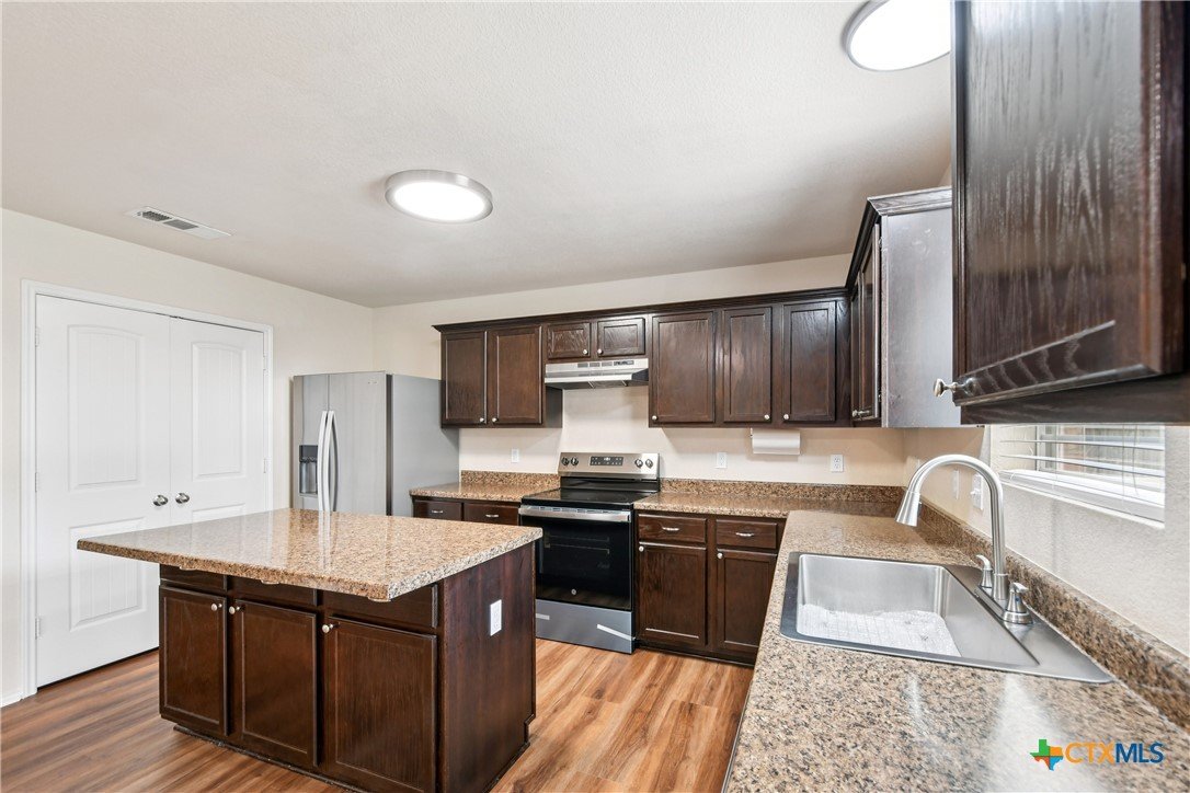 Beautifully updated 4-bedroom, 2.5-bath home offering 2,355 square feet in the heart of Belton. This move-in ready property features brand-new vinyl plank flooring throughout, fresh interior paint (including closets and garage), and ceiling fans with lights installed in every room in 2024. The kitchen has been refreshed with a new electric range and vent hood, new sink and faucet, updated light fixtures, new outlets with faceplates throughout, and updated cabinet hardware. Major improvements include a new roof and HVAC system installed in July 2024, plus updated fencing for added peace of mind. Situated on a generously sized lot with no HOA, the extended driveway provides space for an RV, boat, or multiple vehicles. The backyard includes a storage shed and an oversized covered porch perfect for relaxing or entertaining. Conveniently located just minutes from downtown Belton with quick access to Loop 121, I-35, and I-14. 5 minutes from the Bell County Clerks office, 20 minutes from both Fort Hood and the VA, 30 minutes from Georgetown, and 1 hour from Austin making your commute to any location easy! Schedule your private showing today!