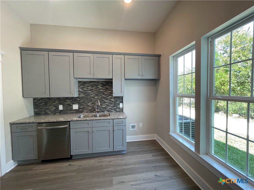 This exceptional property, situated on a high-exposure corner lot, offers a rare combination of residential tranquility and commercial potential. Whether you envision it as a professional office space or a luxurious residence, this completely remodeled property is a true showstopper. Featuring three bedrooms, a central dining area, and an oversized living room with extra-tall, grandiose ceilings and two working fireplaces! Every detail has been meticulously crafted, from the exceptional trim work and molding to the sophisticated paint colors and vinyl flooring. The modern kitchen is a chef's delight, boasting granite counters and stainless steel appliances. Spray foam insulation and insulated windows act as a super sound reducer, making the interior surprisingly peaceful and quiet, despite the hustle and bustle outside. You’re sure to be impressed, come take a look today!