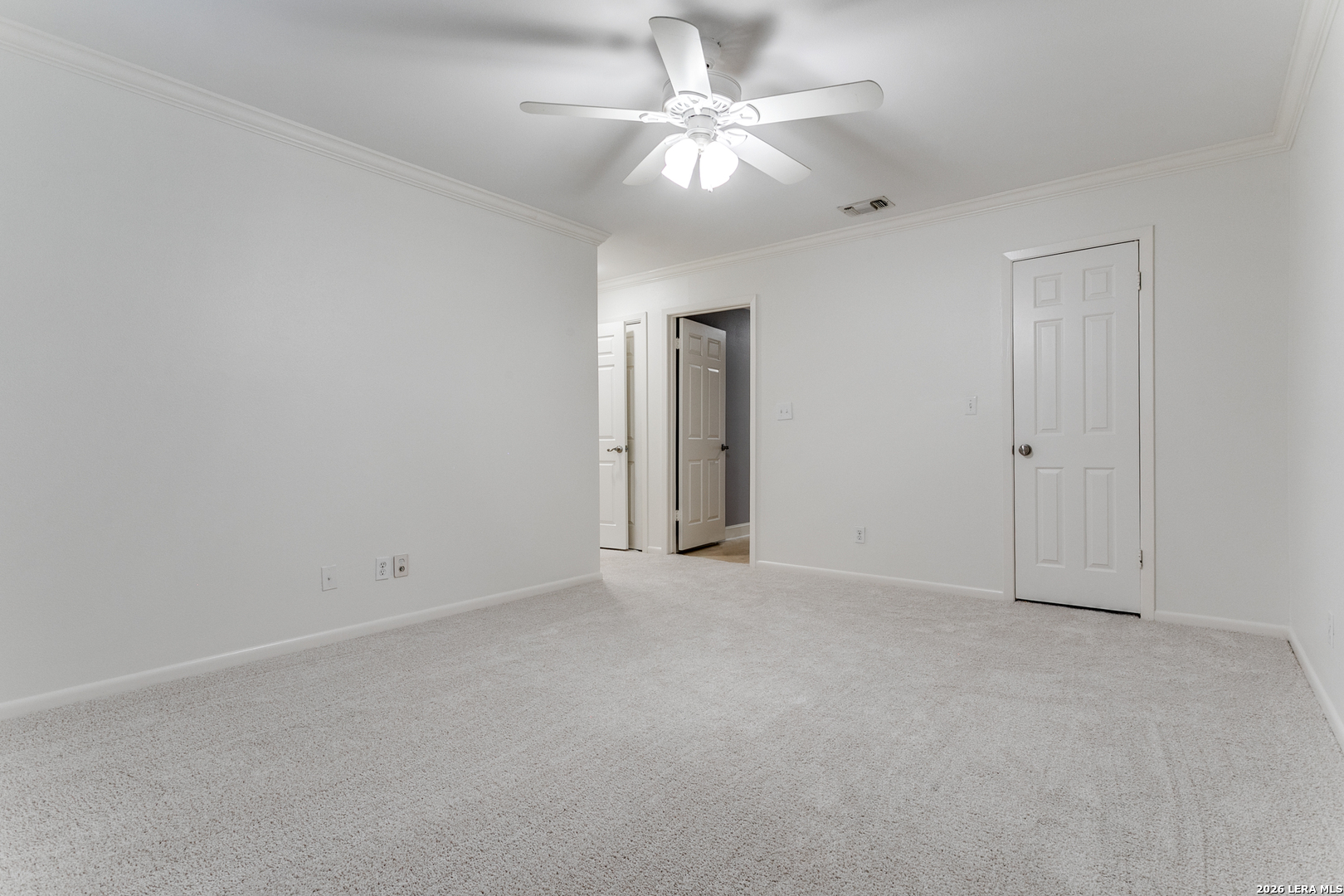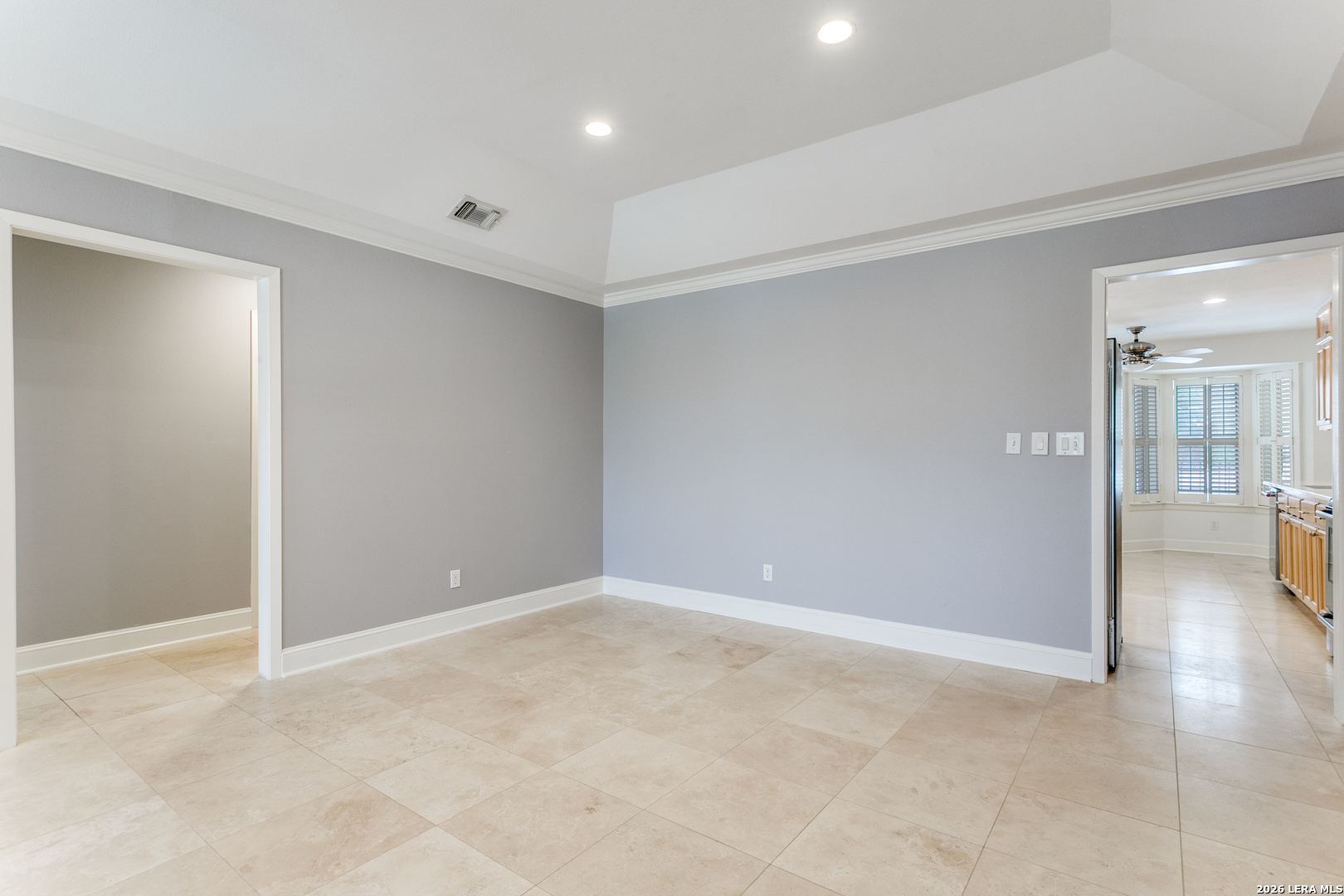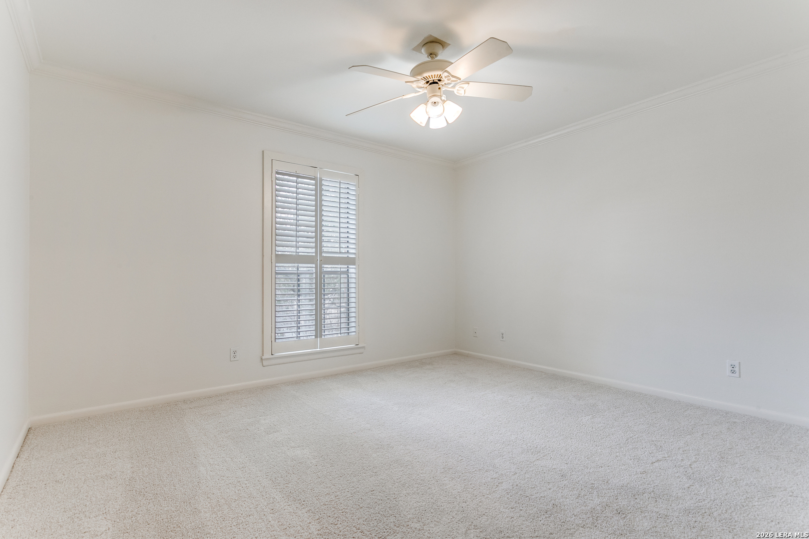 Get ready to move right in! This second floor condominium in the heart of Alamo Heights is a perfect, low-maintenance home for busy professionals or those looking for easy lock-and-leave lifestyle. Freshly painted, the combined living room-dining area is bright and spacious with plantation shutters and a wood-burning fireplace with an eye-catching surround and mantel. The dining area has a handsome built-in bookcase for enhanced storage and display. The updated kitchen boasts recent, stainless appliances, maple cabinets, light solid counters providing great work space and storage. A breakfast nook allows room for casual dining. The primary bedroom is sized nicely with a walk-in closet and en-suite bathroom that is updated with a double vanity and separate shower and tub. The second bedroom has ample closets. Stacked washer/dryer in unit. Enjoy some outdoor space on the balcony with extra storage closet. One covered carport space.