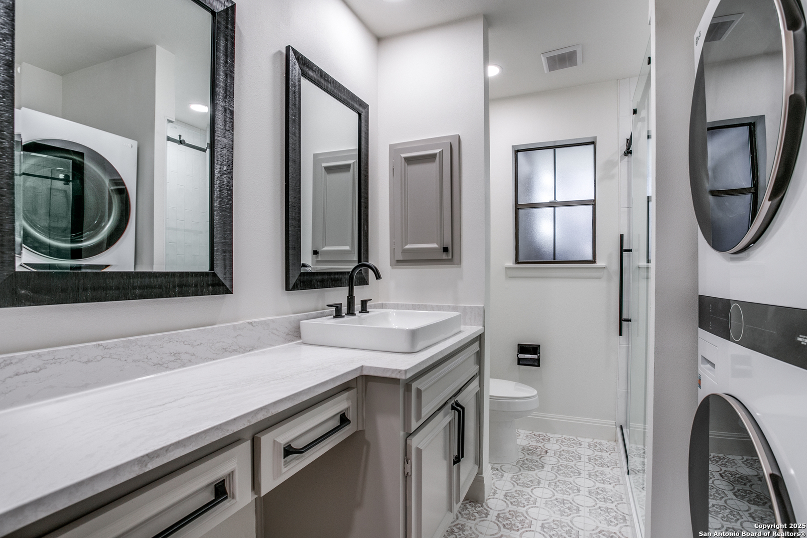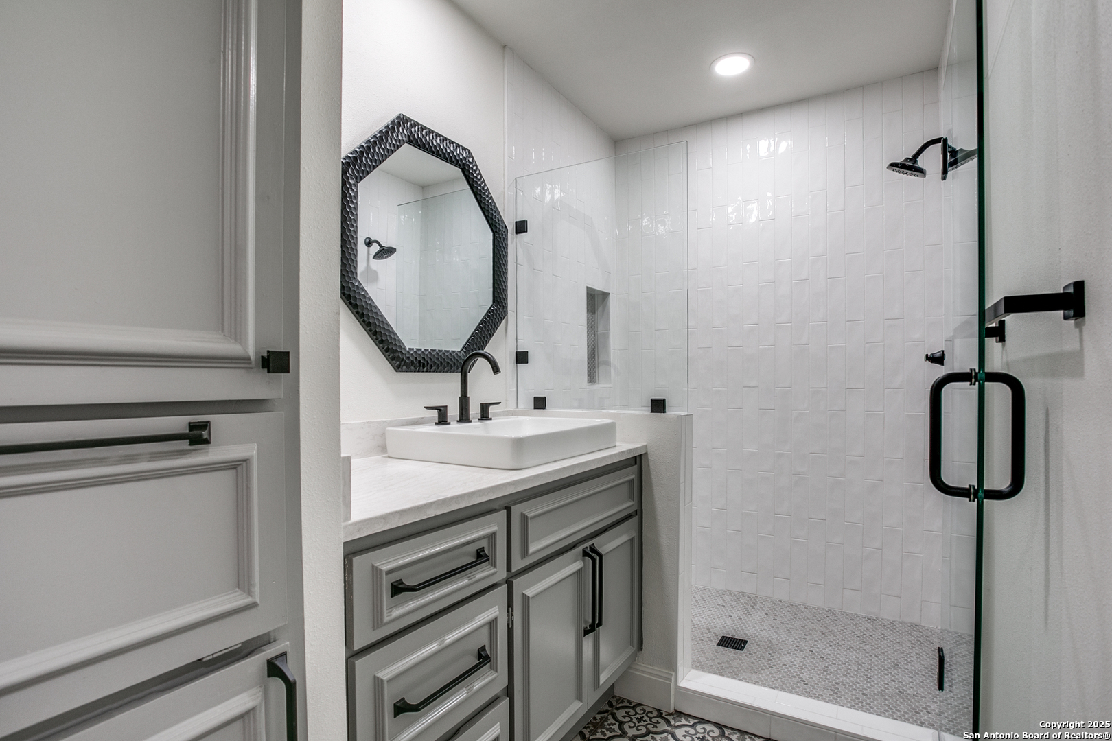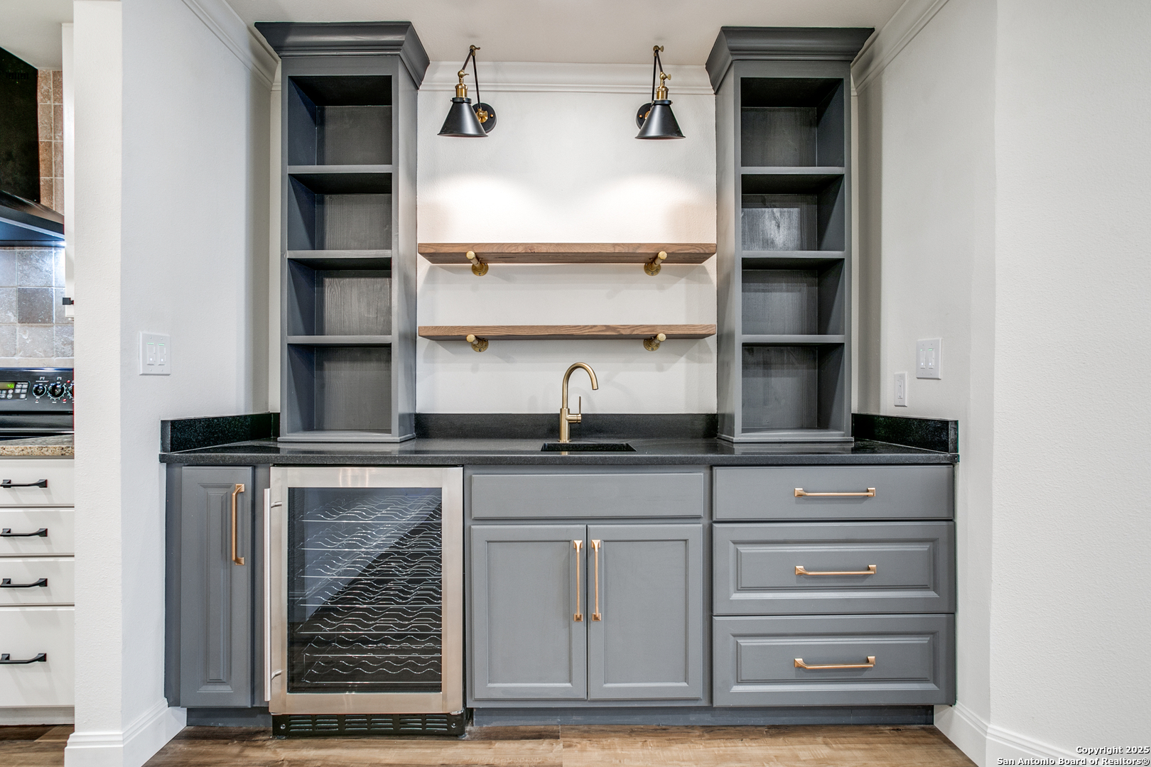 Truly impressive, upscale condo in the conveniently located Brighton Square Complex in the middle of all Alamo Heights has to offer! This 2 bedroom, 2 bath beauty checks all the boxes! Gorgeous eat-in kitchen with island, wet bar with wine refrigerator, luxury baths, beautiful LVP flooring and more. This is a first floor unit and comes with one dedicated covered parking space and additional parking on site! Don't miss it!