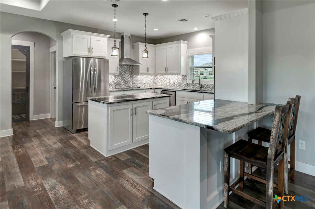Welcome to your dream home located in Industrial School District! Built in 2020 by Richter Custom Homes, this stunning 3-bedroom, 2-bathroom residence sits on a generous lot with a beautifully fenced yard, offering the perfect blend of modern craftsmanship and timeless character. Inside, discover soaring tall ceilings that flood the living space with natural light, anchored by a striking wood-burning stone fireplace that creates an irresistible gathering spot. The kitchen is a culinary paradise, featuring an electric cooktop, dual ovens, and a gorgeous granite island that flows seamlessly into the living area. Vintage custom doors lead to both the spacious pantry and primary bath, adding one-of-a-kind personality throughout. The spacious primary bedroom features an incredible oversized closet and elegant finishes. Two additional bedrooms and a well-appointed second bathroom complete the interior. Outside, the covered patio with an outdoor fireplace and tall ceilings creates an extraordinary entertainment retreat perfect for year-round enjoyment under the Texas sky. The impressive 40 x 60 barn, with a 15-foot lean-to is fully equipped with a full bathroom, kitchen, and electricity, making it ideal for a workshop, game room, or creative studio. Practical upgrades include a gas furnace, gas water heater, a plug on the meter for a portable generator, and Cat 6 hardwired cabling in the attic for security cameras. This thoughtfully designed property delivers country living with every modern convenience. Schedule your private tour today before someone else calls it home!
