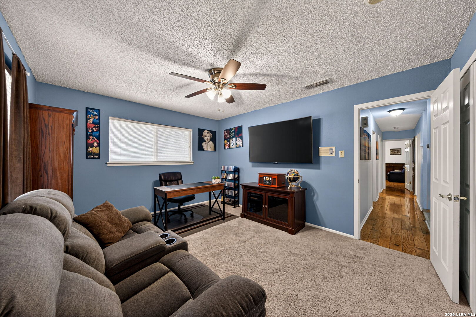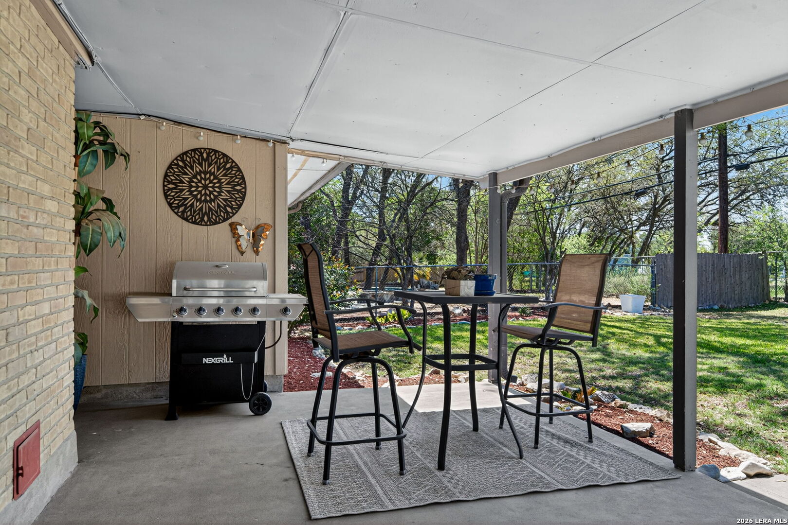 What a Mid-Century Modern beauty in the heart of San Antonio's northside! This well-appointed 1974 ranch-style home on a tree-shaded lot boasts four bedrooms, a kitchen with brand new appliances and new quartz countertops. Enjoy gatherings on your spacious covered back patio overlooking a lushly landscaped yard. This neighborhood has no HOA and is central to great schools and shopping with easy access to U.S. 281 and Loop 1604. The 2025 Whirlpool refrigerator stays and the water heater was just replaced. There's fresh interior paint and the house boasts plenty of closets and storage space, a large pantry and comfortable laundry room. The garage even has extra storage and a workshop area. San Pedro Hills is where you belong!