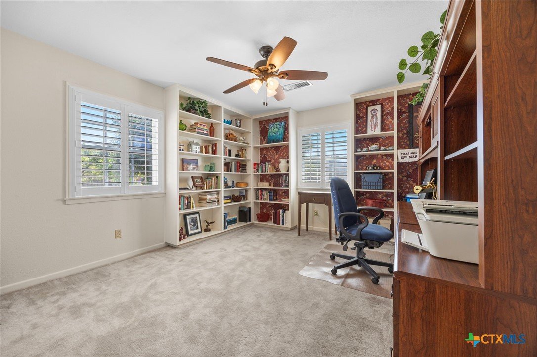 Located just minutes from the heart of Belton this beautifully maintained home offers space, comfort, and a prime location within sought-after Belton ISD, close to local dining, shops, and community events. Inside, the home flows effortlessly with multiple living areas, including a warm main space centered around a wood-burning fireplace with stone surround, built-ins, accented by crown molding and hardwood floors creating an inviting entertainment area. The kitchen features custom cabinetry, granite countertops, a gas cooktop, and double ovens, ideal for everyday living and hosting. The spacious primary suite offers a private retreat with a fully remodeled bathroom, including a walk-in shower, separate tub, and a large walk-in closet, while secondary bedrooms include a Jack-and-Jill bath and a flexible fourth bedroom with built-ins and a half bath, perfect for an office or guest space. Situated on a 0.5-acre corner lot with rear entry, the property provides plenty of parking for gatherings or visitors, along with a large live oak tree for evening shade, a storage custom made wooden shed, and established landscaping. A roof replaced two years ago and an oversized garage with built-in storage add to the home’s overall appeal.