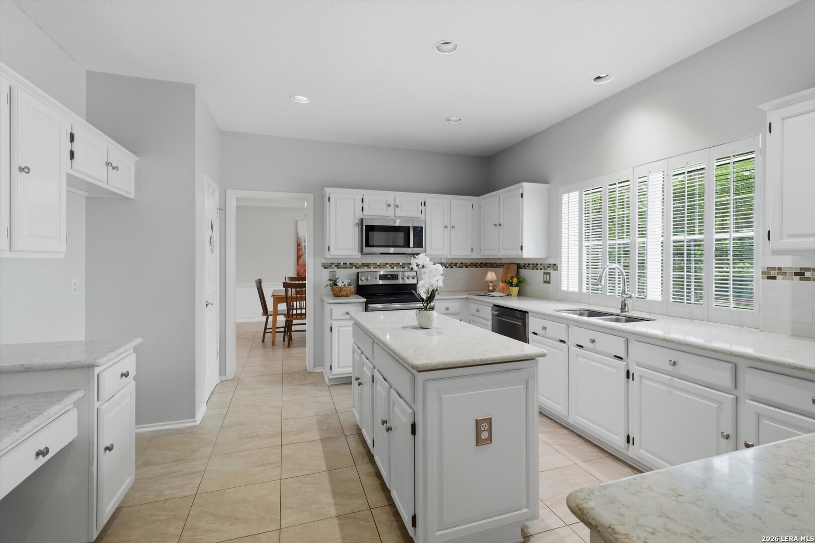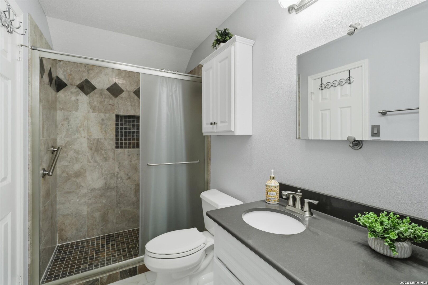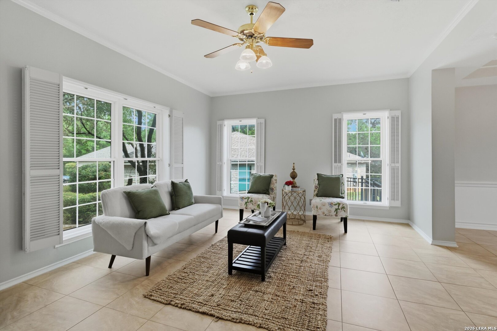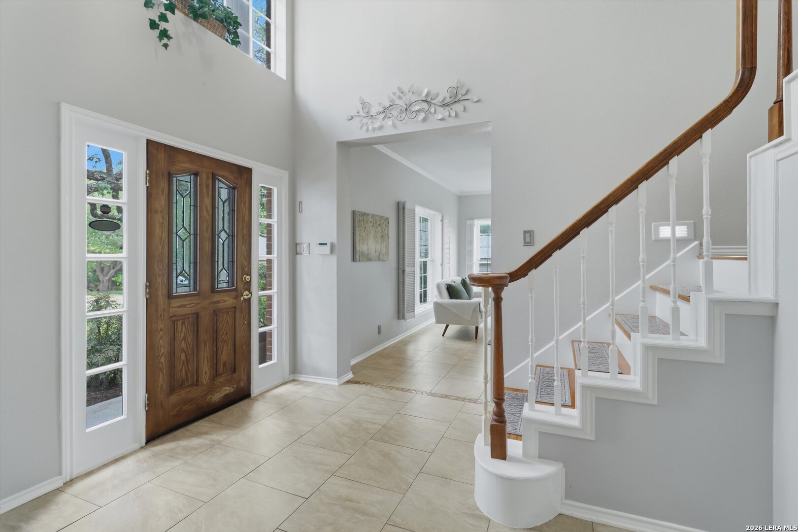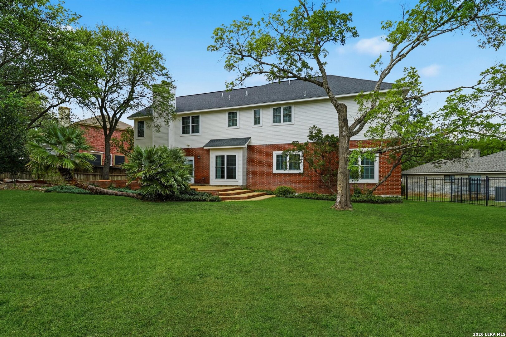 Welcome to 20103 Sierra Oscura, a beautifully maintained brick home nestled beneath a canopy of mature oaks in highly sought-after Encino Park. This stately two-story offers classic architecture, a welcoming front porch, and lush landscaping in a quiet cul de sac. Step inside to discover a warm and inviting layout designed for both everyday living and entertaining. Generous living spaces over 3500 square feet, abundant natural light and attractive views in almost every room. Well-appointed finishes create a comfortable yet refined atmosphere throughout. The home features 5 spacious bedrooms, two living areas, two dining areas and a private office offering a true functional floor plan, not to mention loads of storage both downstairs and up. The kitchen has been tastefully updated with soft tones and offers plenty of prep and storage space. The primary suite is 18x17, has room for a sitting area and has the convenience of dual closets. In the master bath wind down with a soak in the garden tub. Four additional spacious bedrooms offer plenty of room to grow or use as workout or craft room. Outdoors, enjoy a private backyard, on .34 acres shaded by mature trees-perfect for relaxing evenings, play, or weekend gatherings. Located in one of North San Antonio's most established communities, Encino Park is known for its tree-lined streets, strong sense of community, and access to top-rated NEISD schools. Enjoy neighborhood amenities including a Olympic size pool, park, sports courts, and year-round community events, all while being just minutes from Highway 281, Loop 1604, shopping, and dining. A few additional perks: newer windows 2017-2024, roof 25-30 year shingles, HVAC 3/2026, water heater 2025, paint 2024-2025, fireplace on remote electric. This is your opportunity to own a home that combines character, comfort, and an unbeatable location.