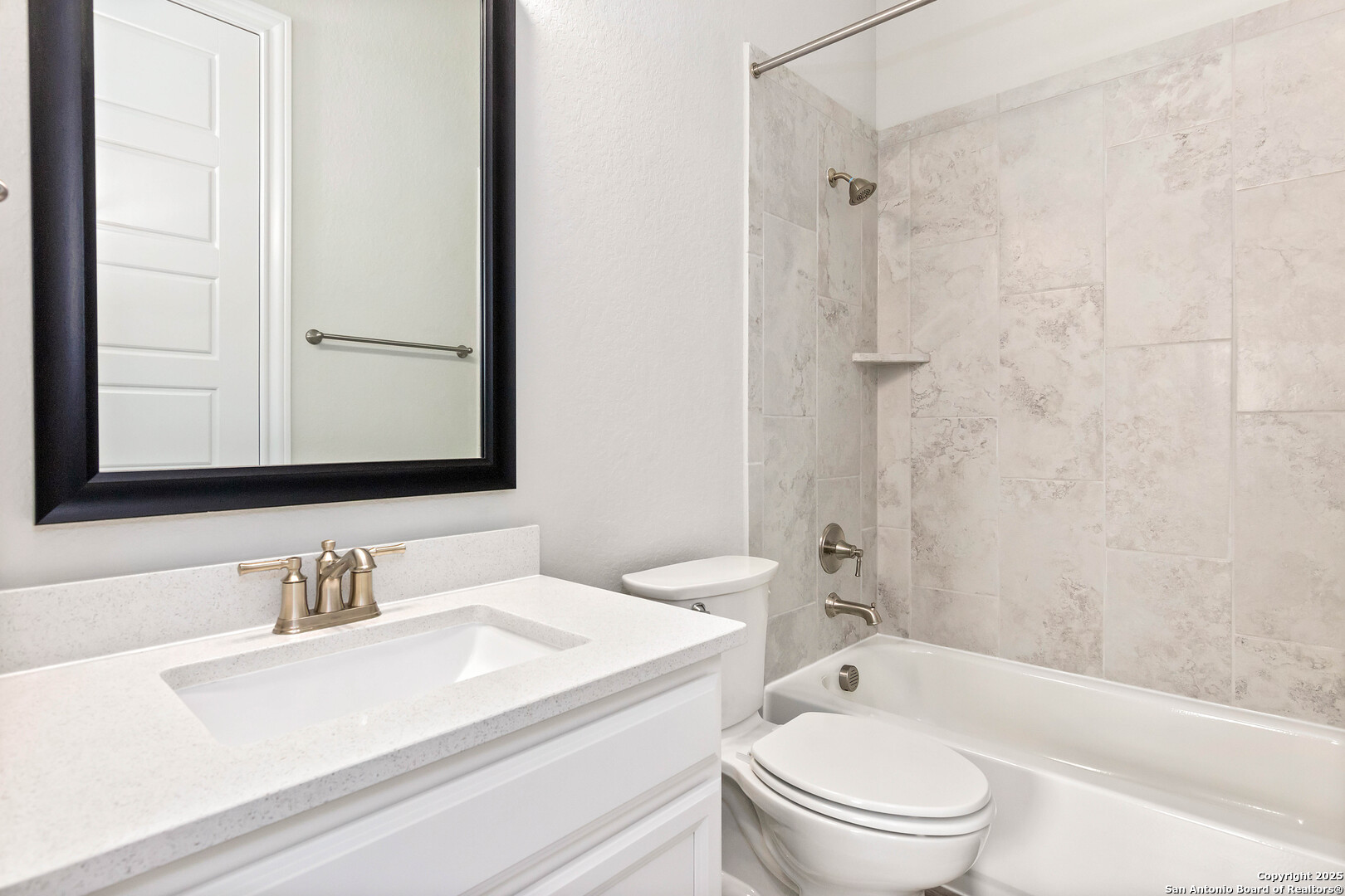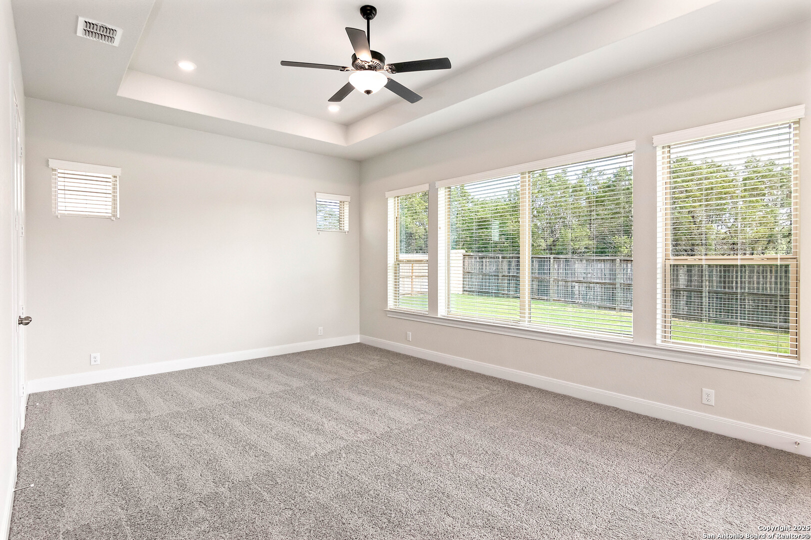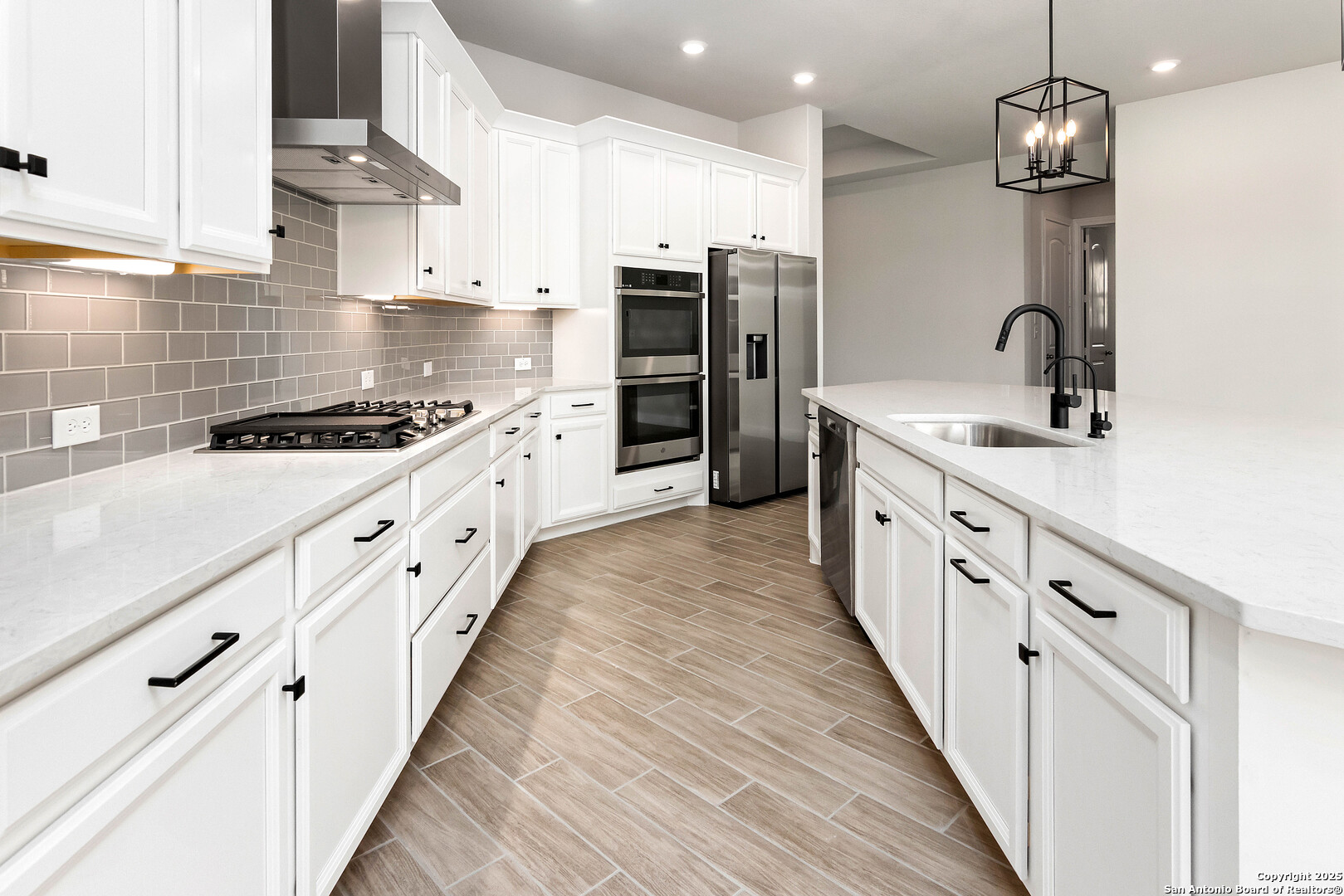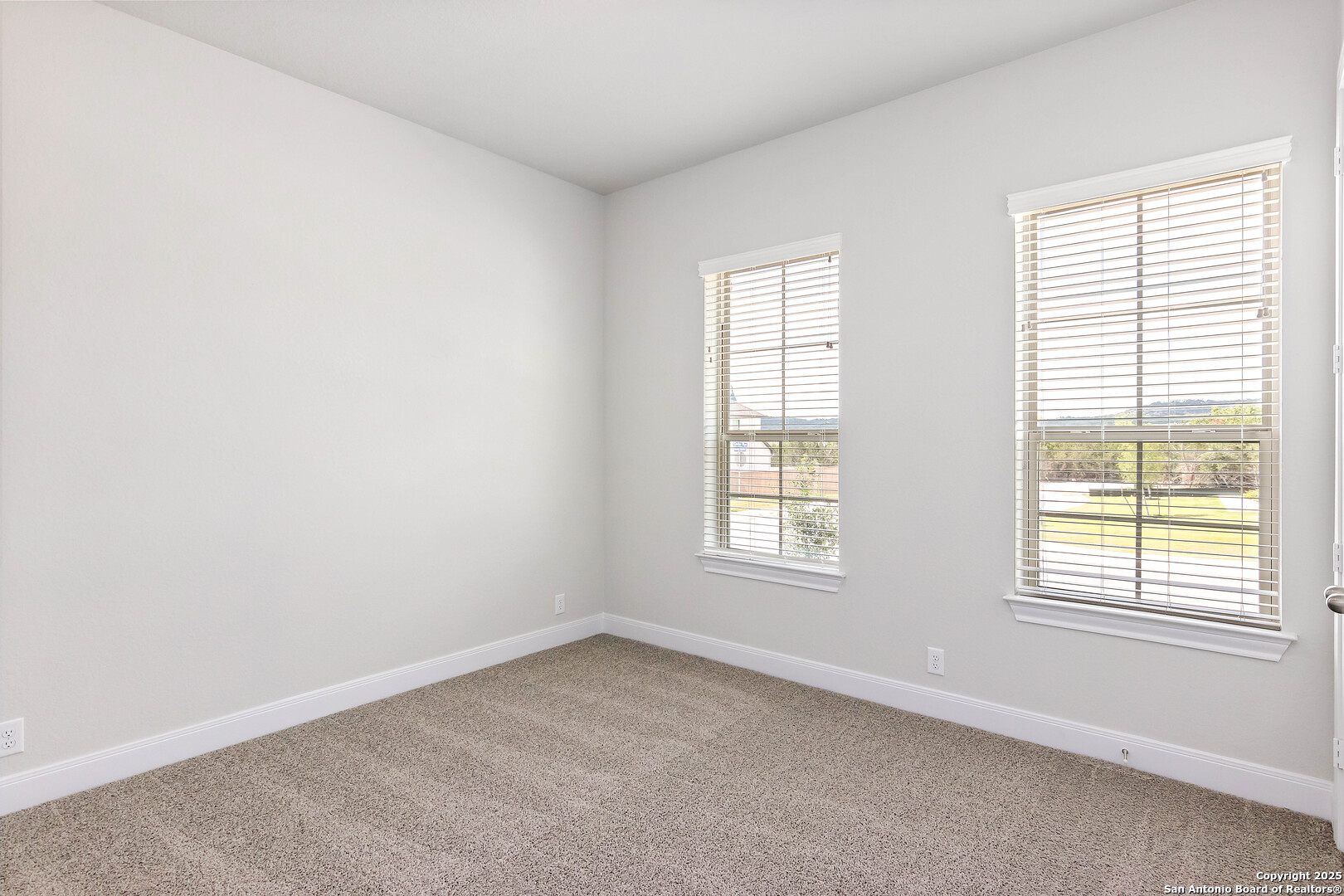 Stunning 3 Bedroom, 3.5 Bath home in Hastings Ridge at Kinder Ranch! This David Weekly single-story design combines modern living with everyday comfort.. Featuring 3 bedrooms, each with its own private bath, plus a guest powder room. The spacious open layout includes 12-foot ceilings, a chef-inspired kitchen with a 14-foot island, walk-in pantry, gas cooktop, and built-in stainless steel appliances. The primary suite features a Large shower with 9 ft ceilings, double vanities, and a walk-in closet. Additional spaces include a study, bonus room, and laundry room, all on one level. Enjoy a covered patio overlooking the greenbelt and hill views on a fully fenced .29-acre lot with a sprinkler system. Extras include a four-car tandem garage, water softener, fireplace, and energy-efficient windows. Located in the highly rated Comal ISD and minutes from shopping, dining, and highway access. Come tour today!