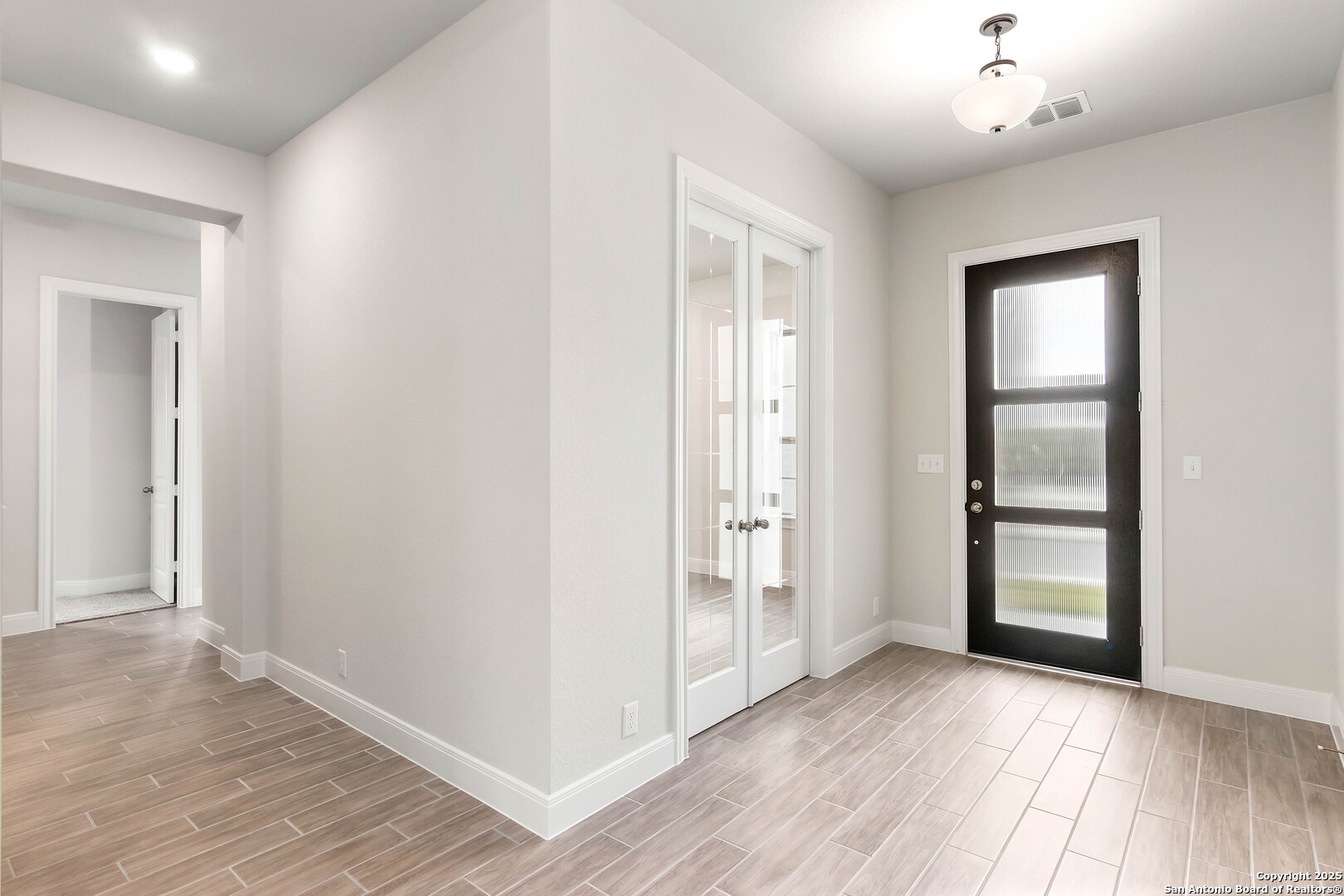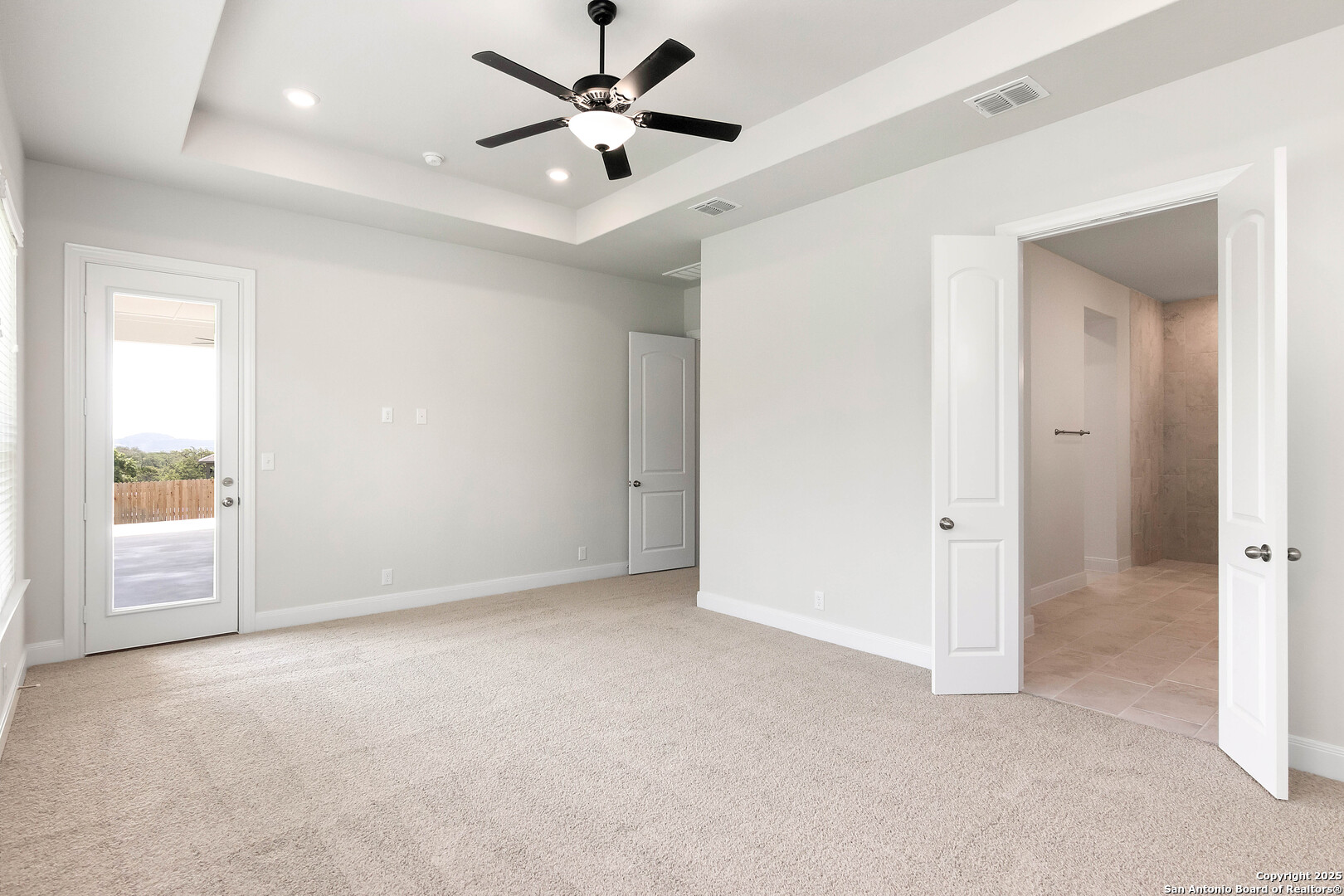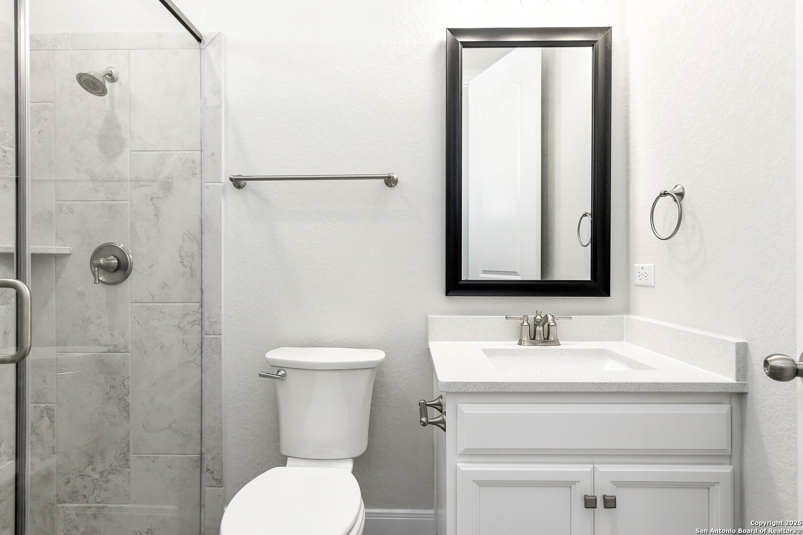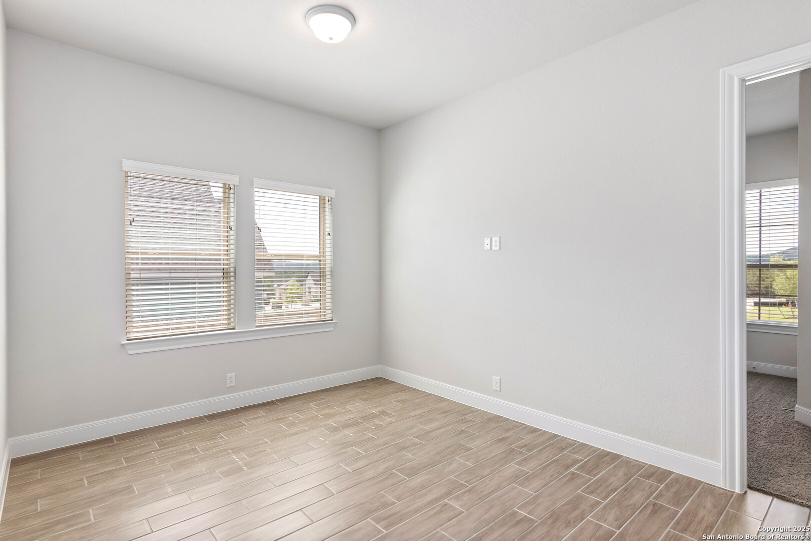 Stunning 3 Bedroom, 3.5 Bath home in Hastings Ridge at Kinder Ranch! This David Weekly single-story design combines modern living with everyday comfort.. Featuring 3 bedrooms, each with its own private bath, plus a guest powder room. The spacious open layout includes 12-foot ceilings, a chef-inspired kitchen with a 14-foot island, walk-in pantry, gas cooktop, and built-in stainless steel appliances. The primary suite features a Large shower with 9 ft ceilings, double vanities, and a walk-in closet. Additional spaces include a study, bonus room, and laundry room, all on one level. Enjoy a covered patio overlooking the greenbelt and hill views on a fully fenced .29-acre lot with a sprinkler system. Extras include a four-car tandem garage, water softener, fireplace, and energy-efficient windows. Located in the highly rated Comal ISD and minutes from shopping, dining, and highway access. Come tour today!