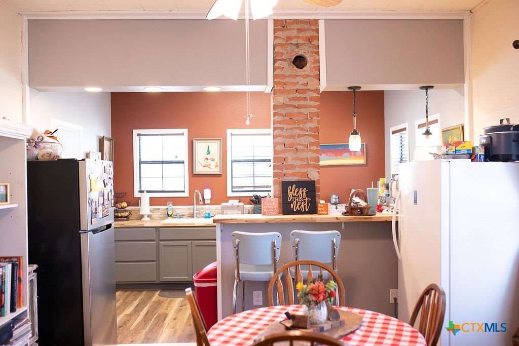 Step into timeless charm with this gorgeous, well-maintained home built in 1930. Thoughtfully updated while preserving its original character, this move-in ready property offers beautiful hardwood floors and a warm, inviting atmosphere throughout. The kitchen opens seamlessly to the dining area, creating a functional space ideal for everyday living and entertaining. Relax on the covered front porch and enjoy the convenience of in-town living on a spacious lot. Two large, detached shops provide exceptional storage, workshop space, or room for hobbies and projects. With classic curb appeal, modern updates, and pride of ownership evident throughout, this home is a rare opportunity to own a piece of history with the comforts of today