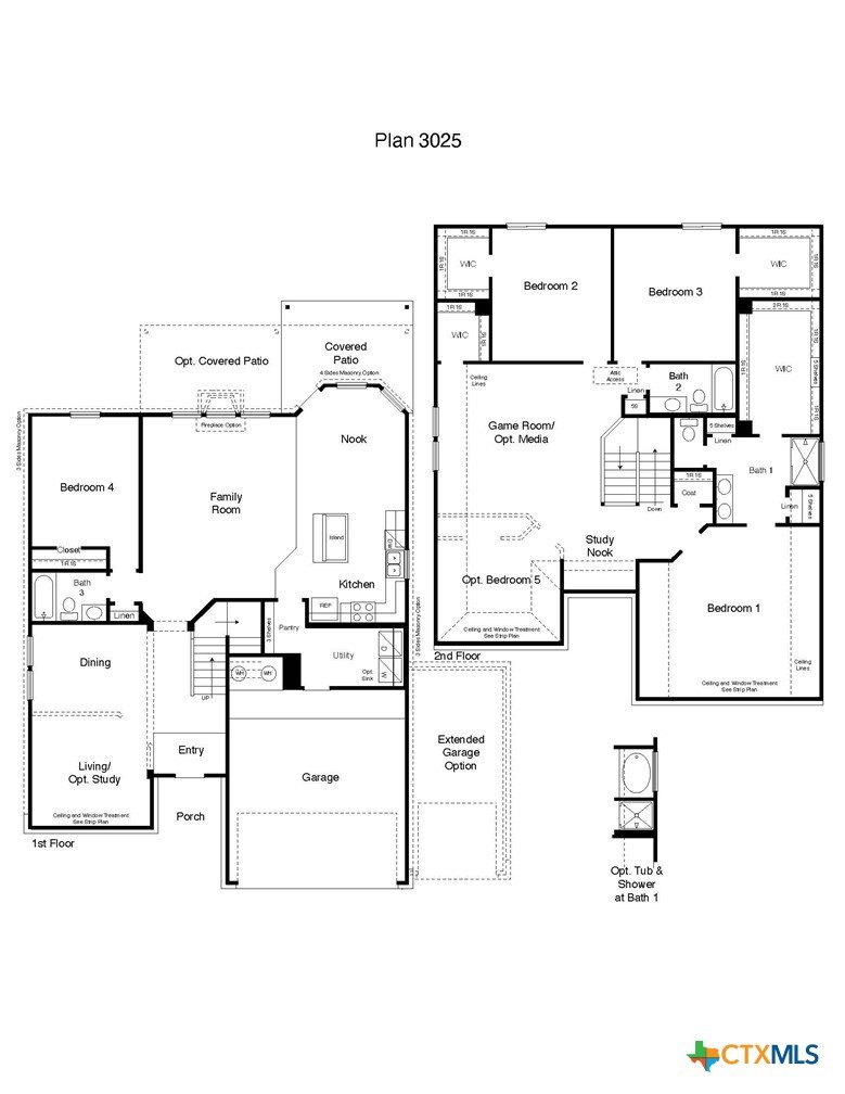 Welcome to the Kiawa plan, a beautiful two-story floor plan in our Warrior’s Legacy community in Nolanville, Texas. These 4-5 bedrooms, 3-bath plan has the perfect amount of space at approximately 3,150 sq. ft. and a 2 car garage. Enjoy the first floor as you walk into the entry to the dining area and the living area that can be opted for a study. Walking further in you will come to the family room and kitchen area, as well as a secondary bedroom with easy access to the secondary bathroom. You can find the laundry room next to the garage, that is easily accessed from the kitchen. The kitchen also features flat panel birch cabinets and granite countertops, with decorative tile backsplash. Find time to enjoy nature from the two option covered patios that is connected to the nook. Heading upstairs, you’ll find two secondary bedrooms with an option of adding another bedroom. With easy access to a secondary bathroom, and the game-room that can be opted for a media room. Retreat to the primary bedroom that has an attached bathroom with a walk-in shower that has an option for a tub and shower, and a spacious walk-in closet. Like with all our homes, you’ll never be too far from home with our smart home technology thoughtfully designed into every detail. Find security and control through the Qolsys panel, your phone, or voice. Contact us today to learn more about the Kiawa floorplan!