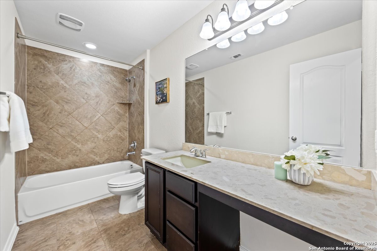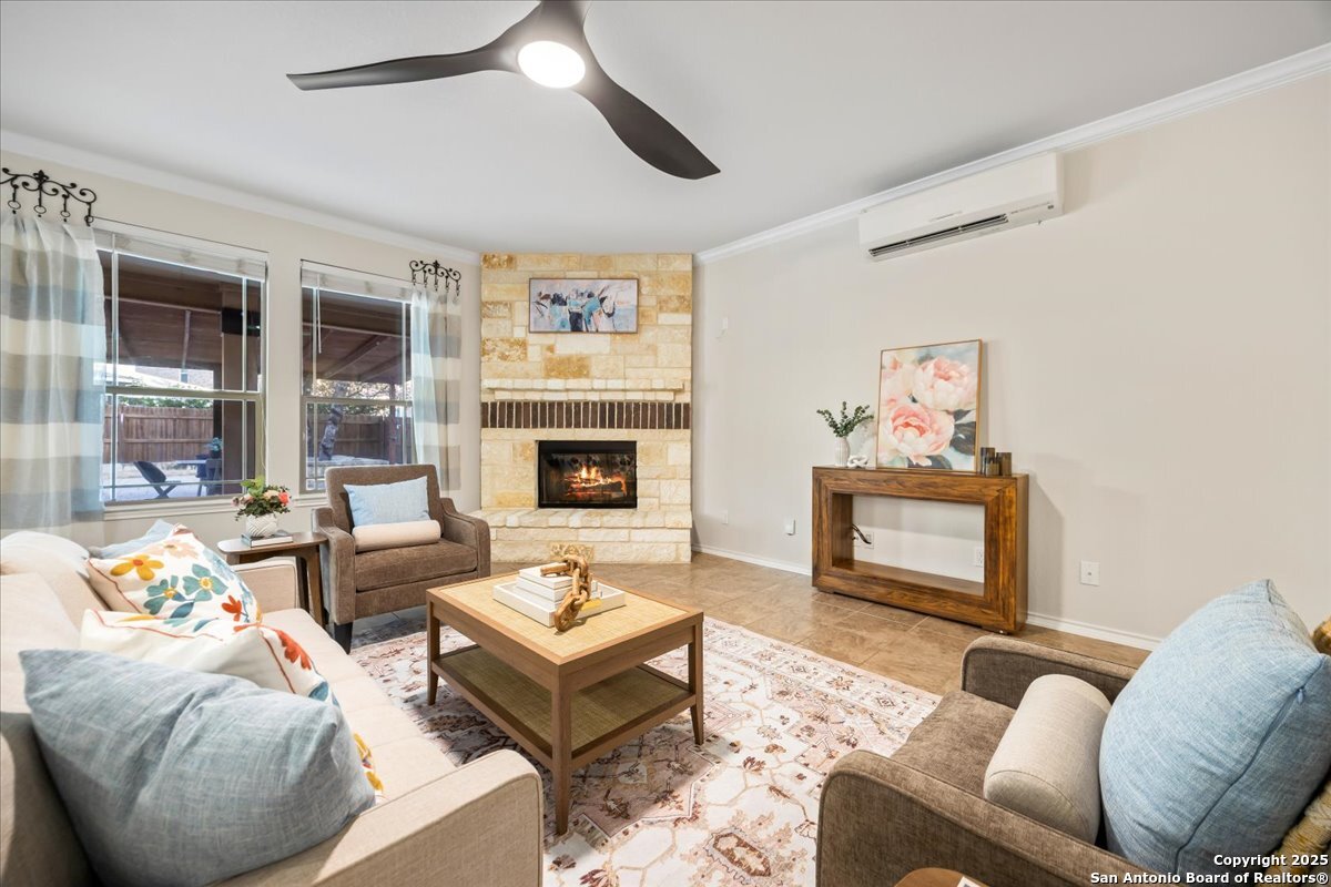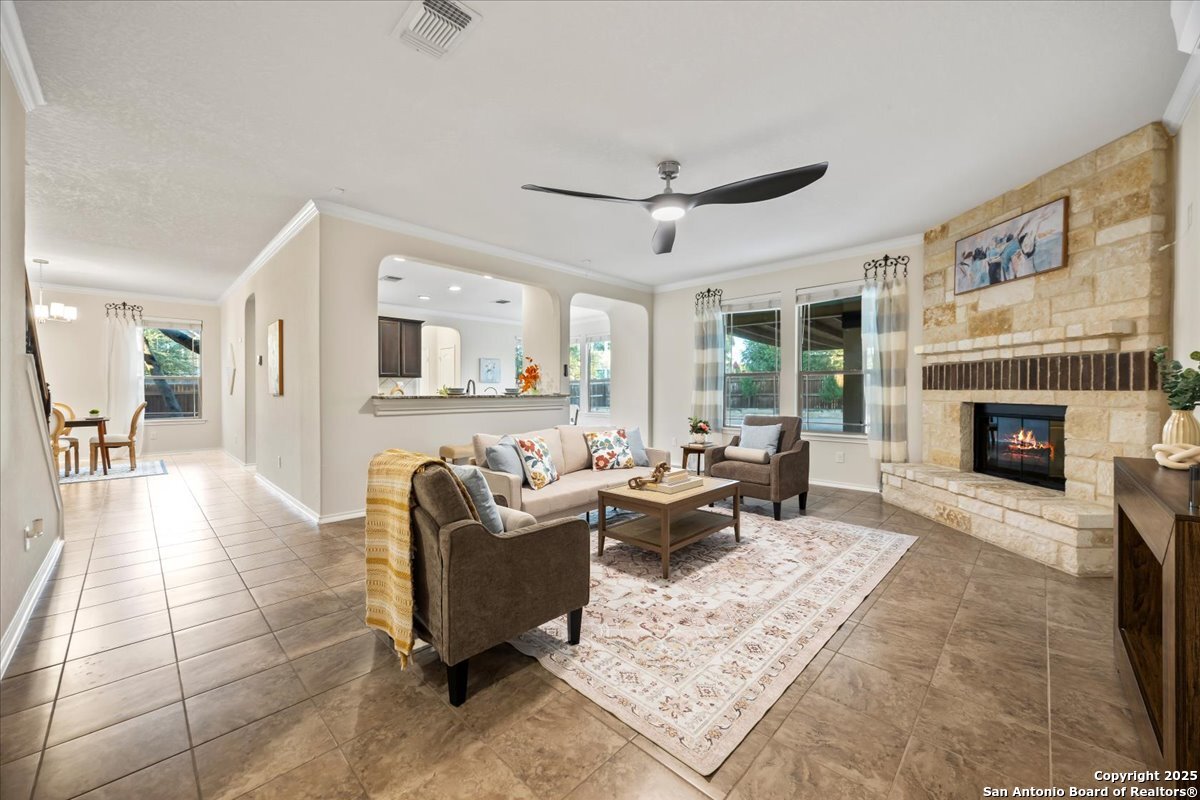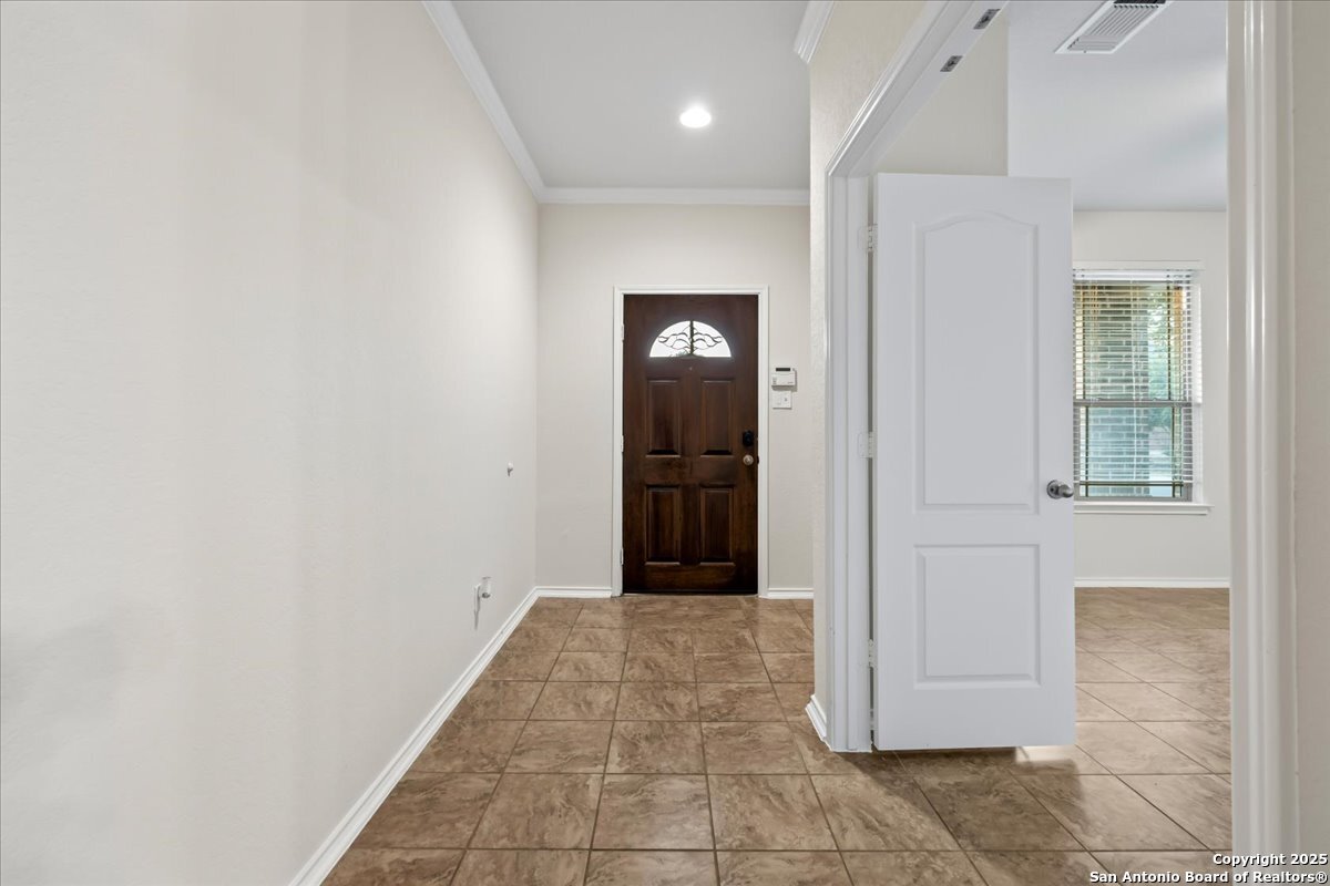 Stunning 4 bedroom home with pool in highly desirable Fox Grove! Fresh paint throughout, a private study, and a spacious game room make this home both functional and inviting. The island kitchen with granite and stainless appliances opens to the family room with a rock fireplace. Primary suite features a walk-in closet with custom built-ins, garden tub, and separate shower. Corner lot offers extra privacy, extended covered patio, pergola and flat work area - perfect for relaxing or entertaining! Tile floors downstairs, garage with its own AC unit, and excellent storage add convenience. Enjoy top-rated NEISD schools, fantastic community amenities such as a pool and playground, and a prime North San Antonio location with easy access to Loop 1604, Hwy 281, Randolph AFB, and Fort Sam Houston. Welcome home!