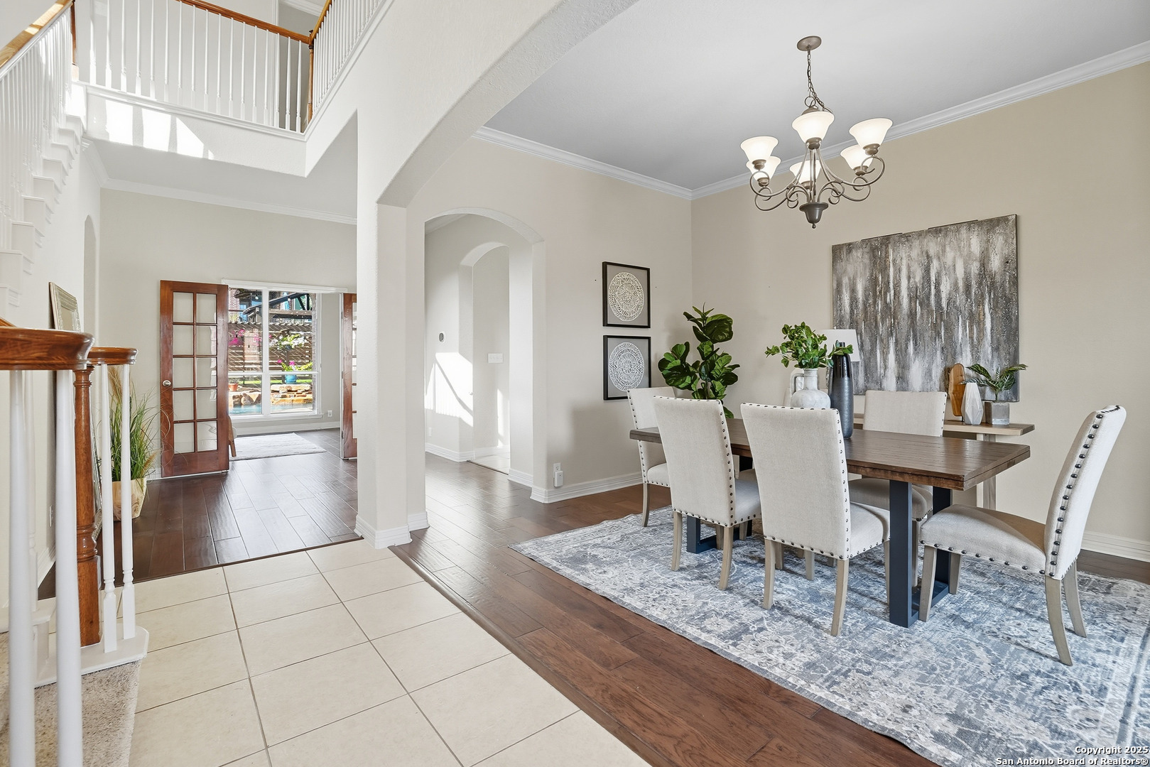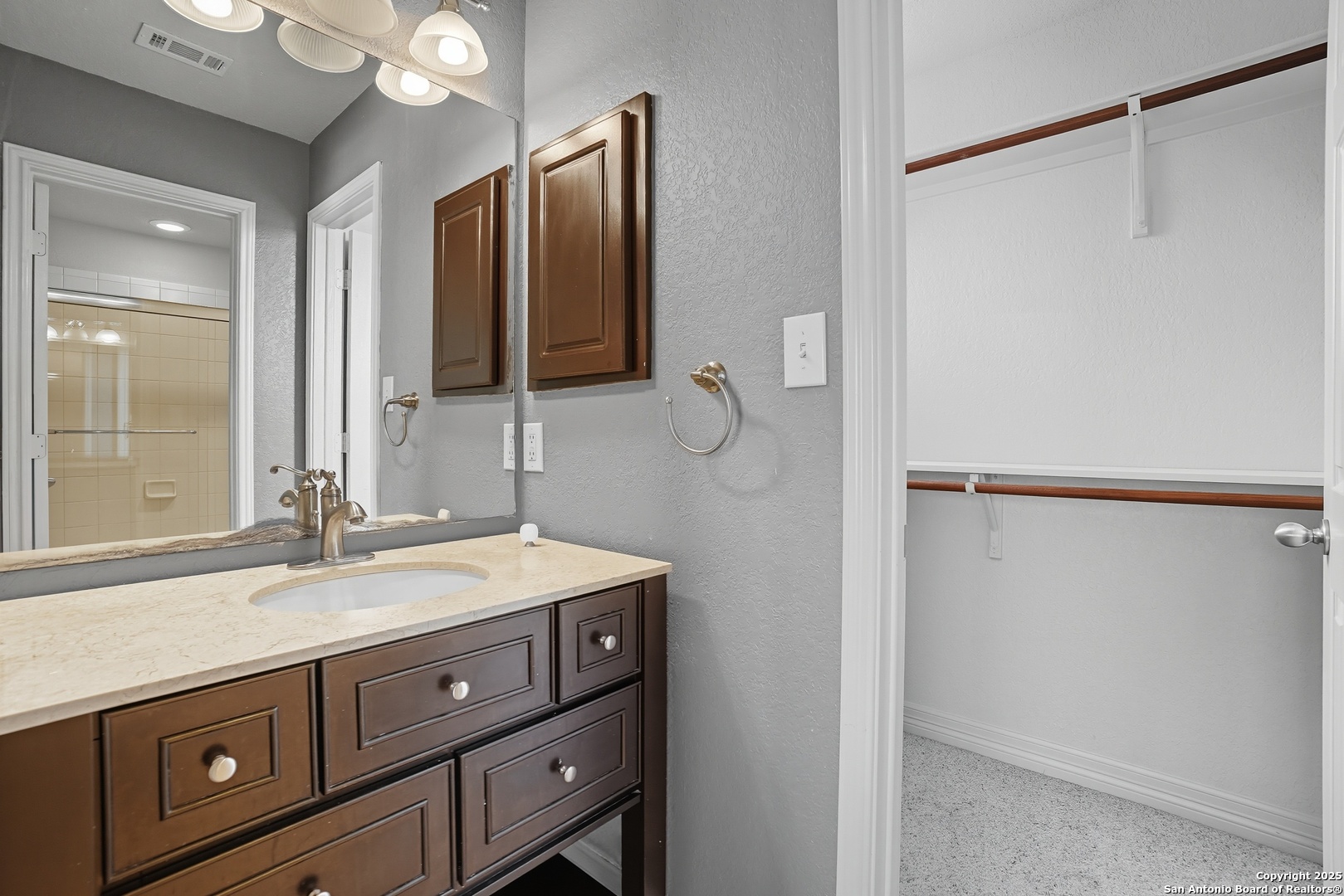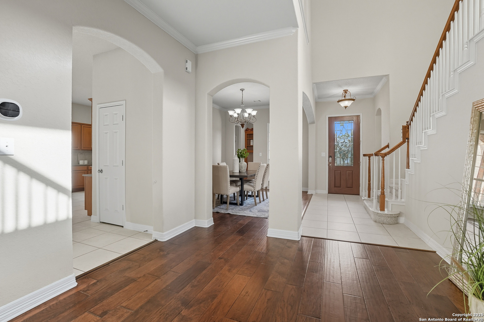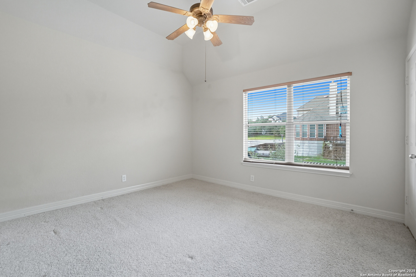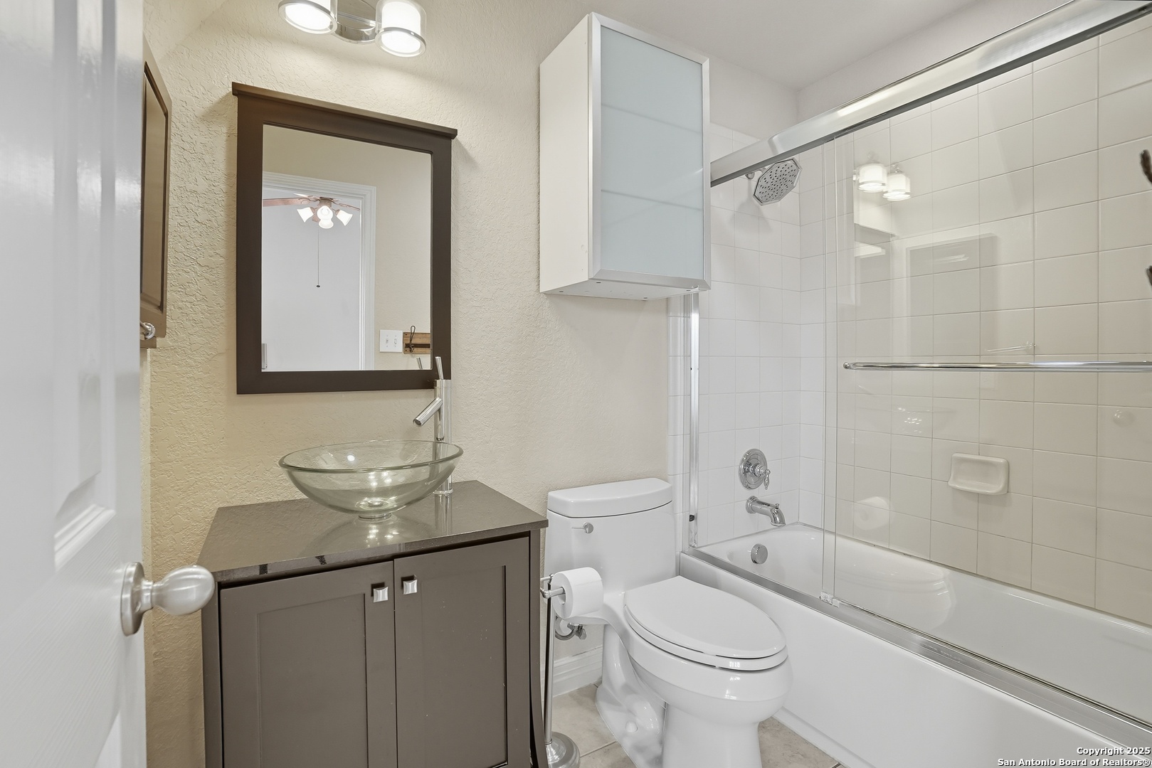 Nestled in the gated enclave of the Stone Oak Mesa Grande, this stately residence sits on a beautifully landscaped .36-acre lot. Featuring five bedrooms plus a dedicated study, the layout includes a private upstairs guest suite-ideal for visitors or multigenerational living. The expansive open-concept living room impresses with soaring ceilings, abundant natural light, and a cozy gas fireplace. The spacious island kitchen features gas cooking, extensive cabinetry, and generous prep space for any culinary endeavor. Upstairs offers a large second living room- perfect for media, play, or fitness, and a versatile bonus room. The primary suite is a peaceful retreat, complete with a sitting area. Step outside into a resort-style backyard oasis, highlighted by a custom heated pool and spa designed by Keith Zars Pools. Surrounded by mature landscaping and ample patio space, it's perfect for year-round entertaining. Additional highlights includes abundant storage space in the garage.