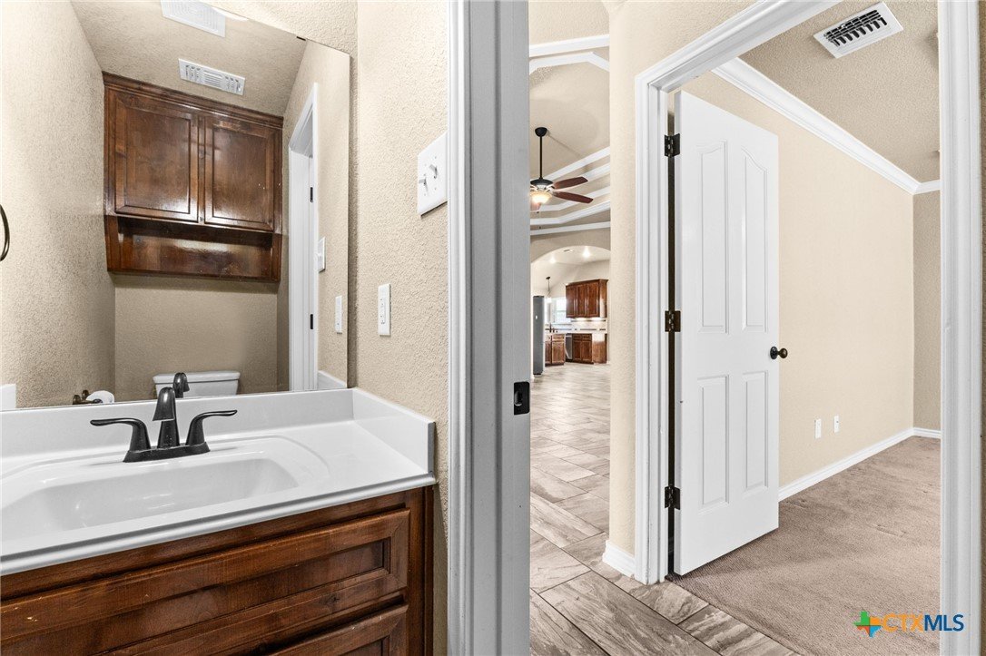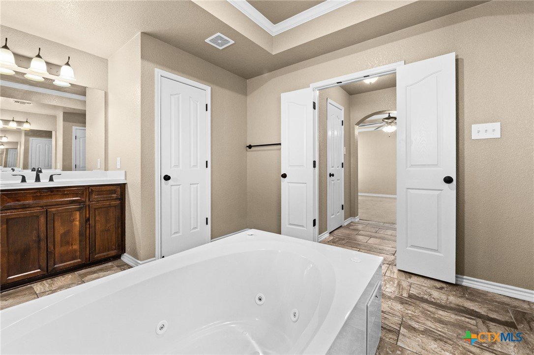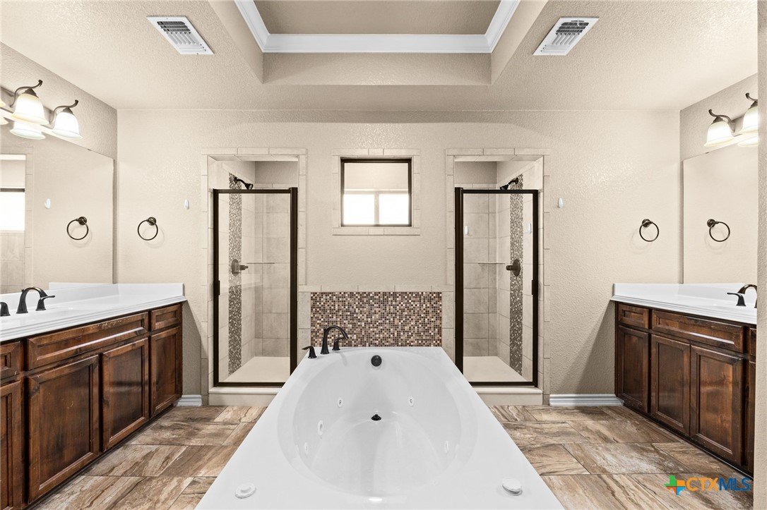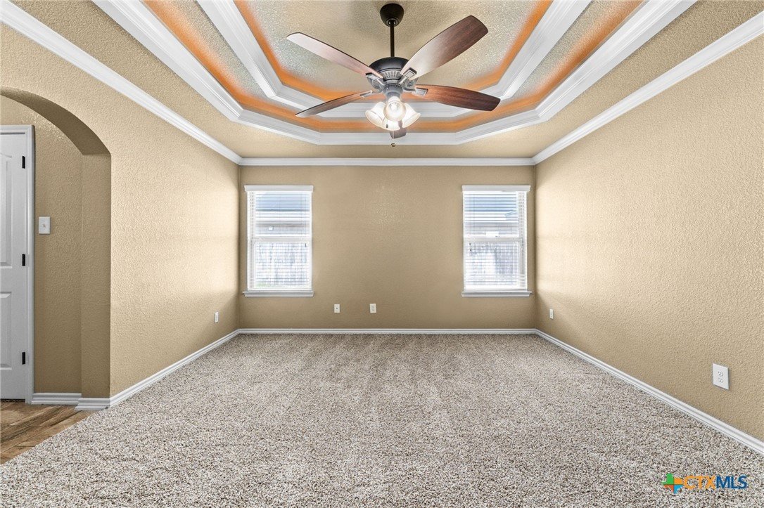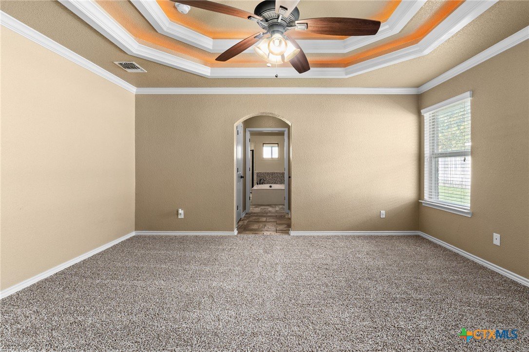 3.99% assumable rate! This beautifully designed four bedroom, two and half bath home blends classic style with today’s modern upgrades, to include a brand new roof & back privacy fence (2025). This home offers generous room sizes and exceptional entertaining spaces. Step into the spacious living room, complete with a cozy corner stone fireplace and double tray ceiling enhanced by soft mood lighting. The chef’s kitchen is a true highlight, featuring granite countertops throughout, a large center island, tiled backsplash, under-cabinet lighting, and stainless steel appliances to include double ovens. The secluded master suite is a luxurious retreat with its own tray ceiling and built-in mood lighting. The spa-like bathroom offers his-and-hers walk-in closets, dual vanities on separate sides, an oversized jetted tub, and a LARGE walk-through shower with dual shower heads. Every bedroom & closet in this home is a great size giving you the comfort and flexibility you’ve been searching for. Step outside to a large covered patio overlooking the huge flat yard with a sprinkler system—perfect for gatherings, play, or relaxation. You will also love the large three car garage , Manicured lawn, walking distance to schools, The dishwasher/microwave are less than a year old, HVAC recently serviced, and living in one of the most highly desirbled neighborhoods, not only in Harker heights but the Fort. Hood area! New carpet 9/27 (never lived on!)