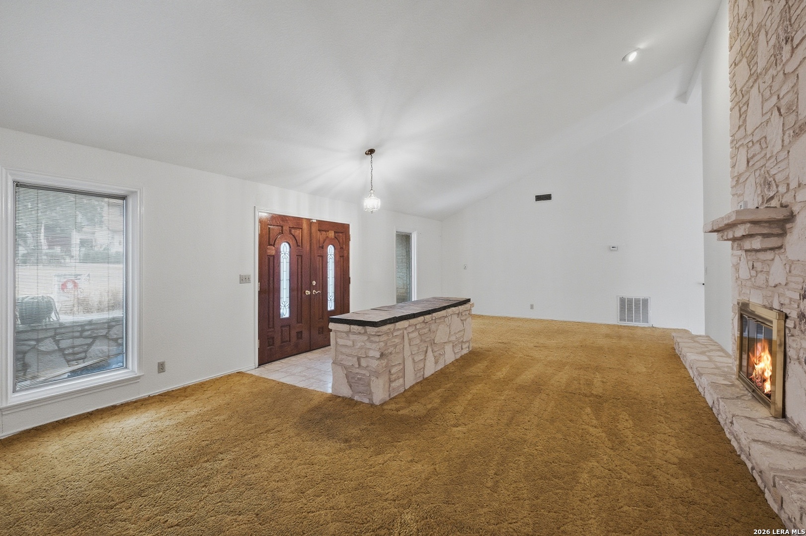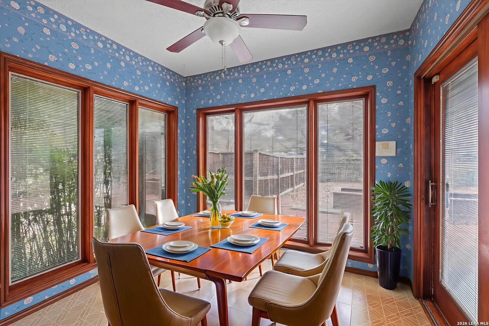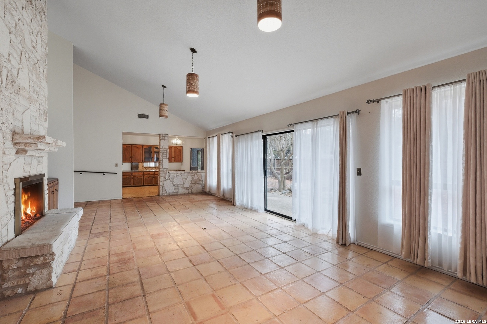 Located in the highly sought-after Churchill Estates, this 1977 single-story home offers a rare opportunity in an established neighborhood known for mature trees and strong resale value. Situated on a generous corner lot, the side-entry garage and classic rock exterior create standout curb appeal. A newer roof replaced in 2023 provides peace of mind and a solid foundation for future updates. Inside, the spacious floor plan offers multiple living areas and flexible spaces ideal for today's lifestyle. Two living rooms are separated by a double-sided fireplace, perfect for entertaining or creating defined gathering spaces. A formal dining area connects seamlessly to the kitchen and breakfast nook, with views overlooking the private backyard. The kitchen retains its original character and layout, offering a great starting point for renovation or a bold mid-century modern refresh. Just off the garage, a full bathroom and full-size laundry room add everyday convenience. An adjacent pantry area provides extra storage and could easily function as a home office or study space. The primary bedroom is privately split from the secondary bedrooms and features exterior access to the backyard. Three closets and an en suite bath with dual vanities and a walk-in tiled shower complete the primary suite. Secondary bedrooms are generously sized and share a full bathroom near the front of the home. The interior showcases original finishes throughout, presenting an ideal canvas for buyers seeking a renovation project or investment opportunity. Outside, the privacy-fenced backyard offers ample space for outdoor living, gardening, or future enhancements. Sidewalk-lined streets and an inviting neighborhood atmosphere make this community especially appealing. Residents enjoy access to a community pool, park, and sports court. The location provides easy access to shopping, dining, and major highways. Zoned to award-winning schools in North East Independent School District, this home checks a major box for long-term value. With strong bones, a desirable location, and endless potential, this property is ready for your vision. Whether you choose to update throughout or embrace its vintage charm, this is a chance to create something truly special.