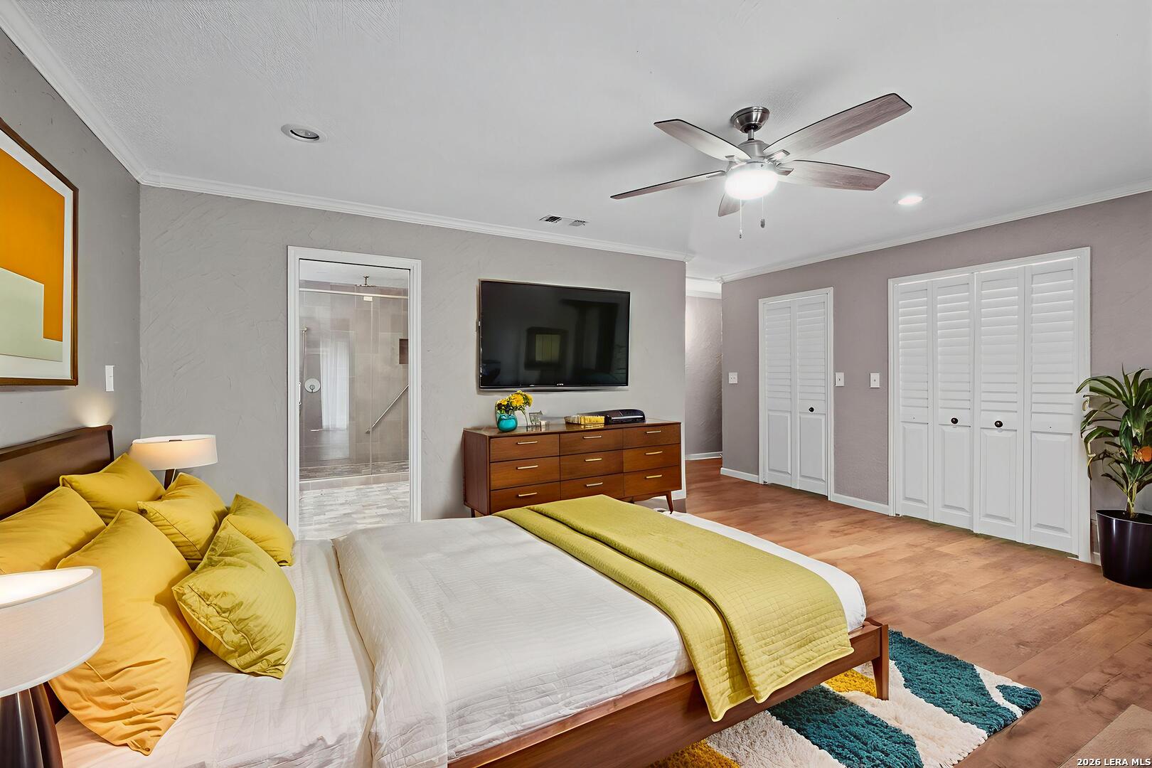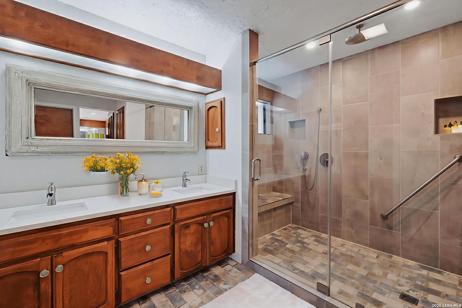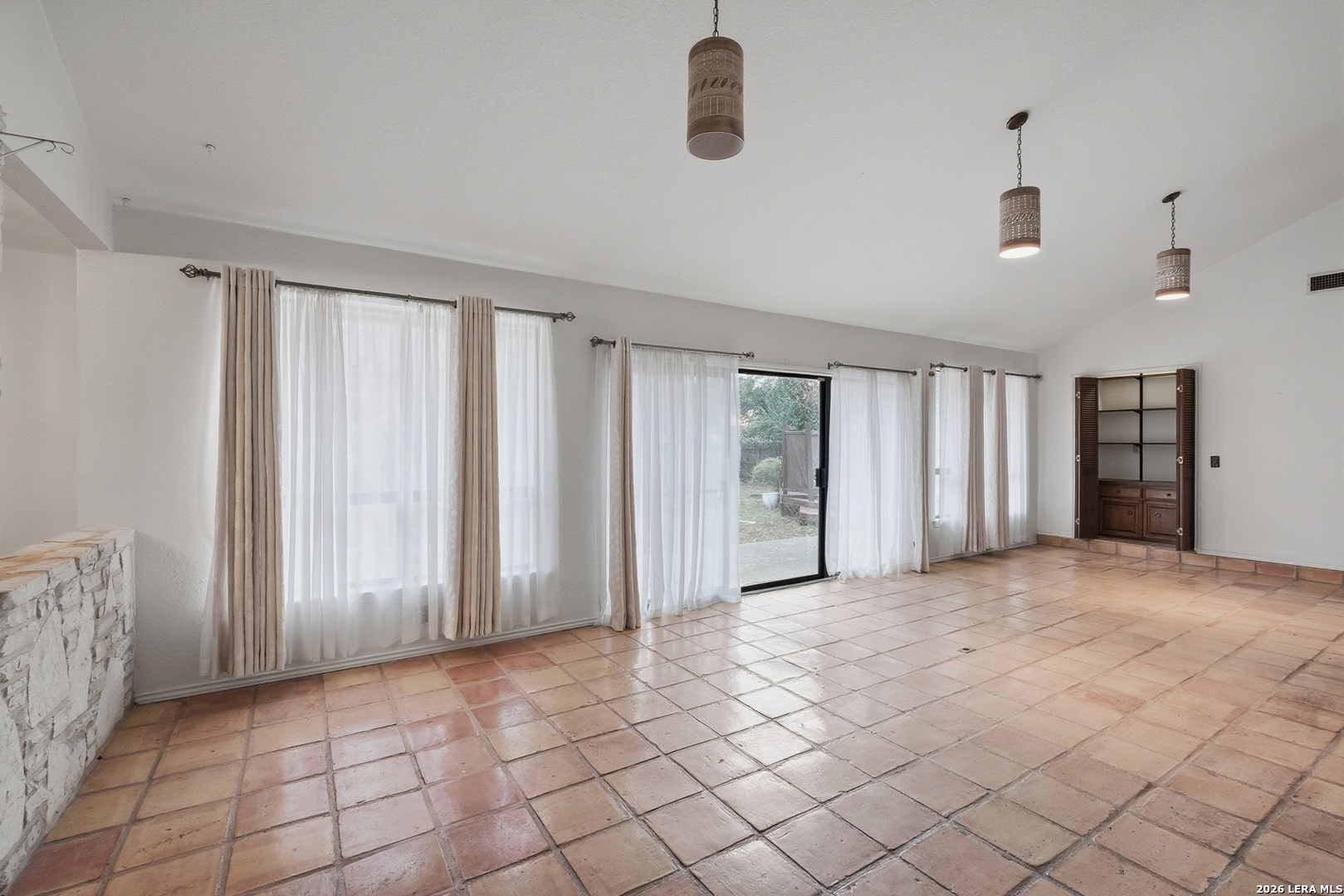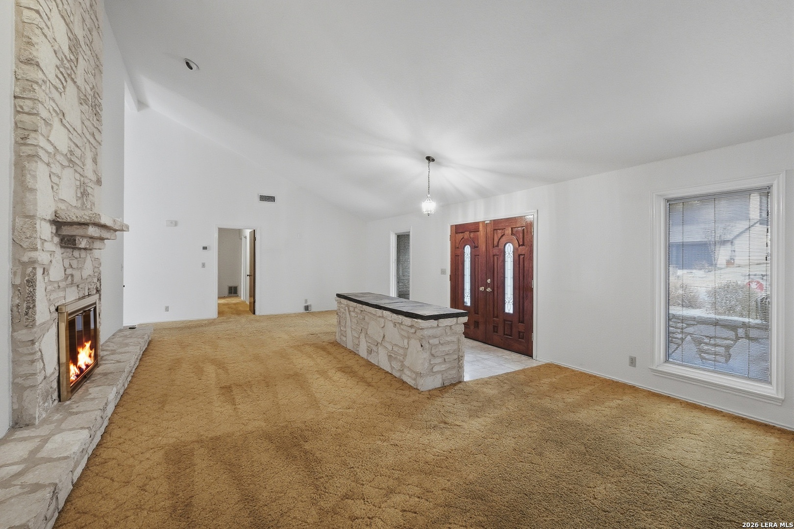 Located in the highly sought-after Churchill Estates, this 1977 single-story home offers a rare opportunity in an established neighborhood known for mature trees and strong resale value. Situated on a generous corner lot, the side-entry garage and classic rock exterior create standout curb appeal. A newer roof replaced in 2023 provides peace of mind and a solid foundation for future updates. Inside, the spacious floor plan offers multiple living areas and flexible spaces ideal for today's lifestyle. Two living rooms are separated by a double-sided fireplace, perfect for entertaining or creating defined gathering spaces. A formal dining area connects seamlessly to the kitchen and breakfast nook, with views overlooking the private backyard. The kitchen retains its original character and layout, offering a great starting point for renovation or a bold mid-century modern refresh. Just off the garage, a full bathroom and full-size laundry room add everyday convenience. An adjacent pantry area provides extra storage and could easily function as a home office or study space. The primary bedroom is privately split from the secondary bedrooms and features exterior access to the backyard. Three closets and an en suite bath with dual vanities and a walk-in tiled shower complete the primary suite. Secondary bedrooms are generously sized and share a full bathroom near the front of the home. The interior showcases original finishes throughout, presenting an ideal canvas for buyers seeking a renovation project or investment opportunity. Outside, the privacy-fenced backyard offers ample space for outdoor living, gardening, or future enhancements. Sidewalk-lined streets and an inviting neighborhood atmosphere make this community especially appealing. Residents enjoy access to a community pool, park, and sports court. The location provides easy access to shopping, dining, and major highways. Zoned to award-winning schools in North East Independent School District, this home checks a major box for long-term value. With strong bones, a desirable location, and endless potential, this property is ready for your vision. Whether you choose to update throughout or embrace its vintage charm, this is a chance to create something truly special.