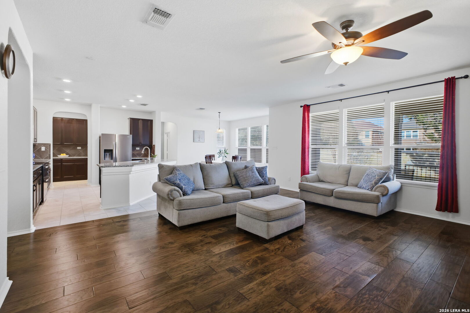 OPEN HOUSE Sat Feb. 28th from 11am-1pm. Welcome to 20331 Roche Oak in The Oaks of Fox Grove. Spacious, functional, and thoughtfully designed, this stunning two-story home offers 5 bedrooms and 3.5 bathrooms with a layout that truly works for everyone. A downstairs secondary bedroom with a full bath provides the perfect setup for multigenerational living or guests who prefer main floor living. The heart of the home is the open living space, where rich hardwood floors anchor the room and natural light fills the space. The island kitchen is perfect for gathering around friends and family, featuring stainless steel appliances, 42-inch upper cabinets, a butler's pantry for added storage, and a refrigerator that conveys - making this home move-in ready from day one. Upstairs, the grand primary suite offers a private retreat with separate his-and-hers closets and an en suite bath complete with a large walk-in shower and double vanity. Generously sized secondary bedrooms provide flexibility for family, office space, home gym or hobbies. Step outside to enjoy the covered back patio - ideal for relaxing or entertaining while staying shaded from the Texas sun. Situated on a greenbelt lot for added privacy. Located in the highly desirable North East ISD and no city taxes, this community also offers exceptional neighborhood amenities including a pool, covered playground, and full-size basketball court. This turn-key home checks all the boxes - space, functionality, and location.
