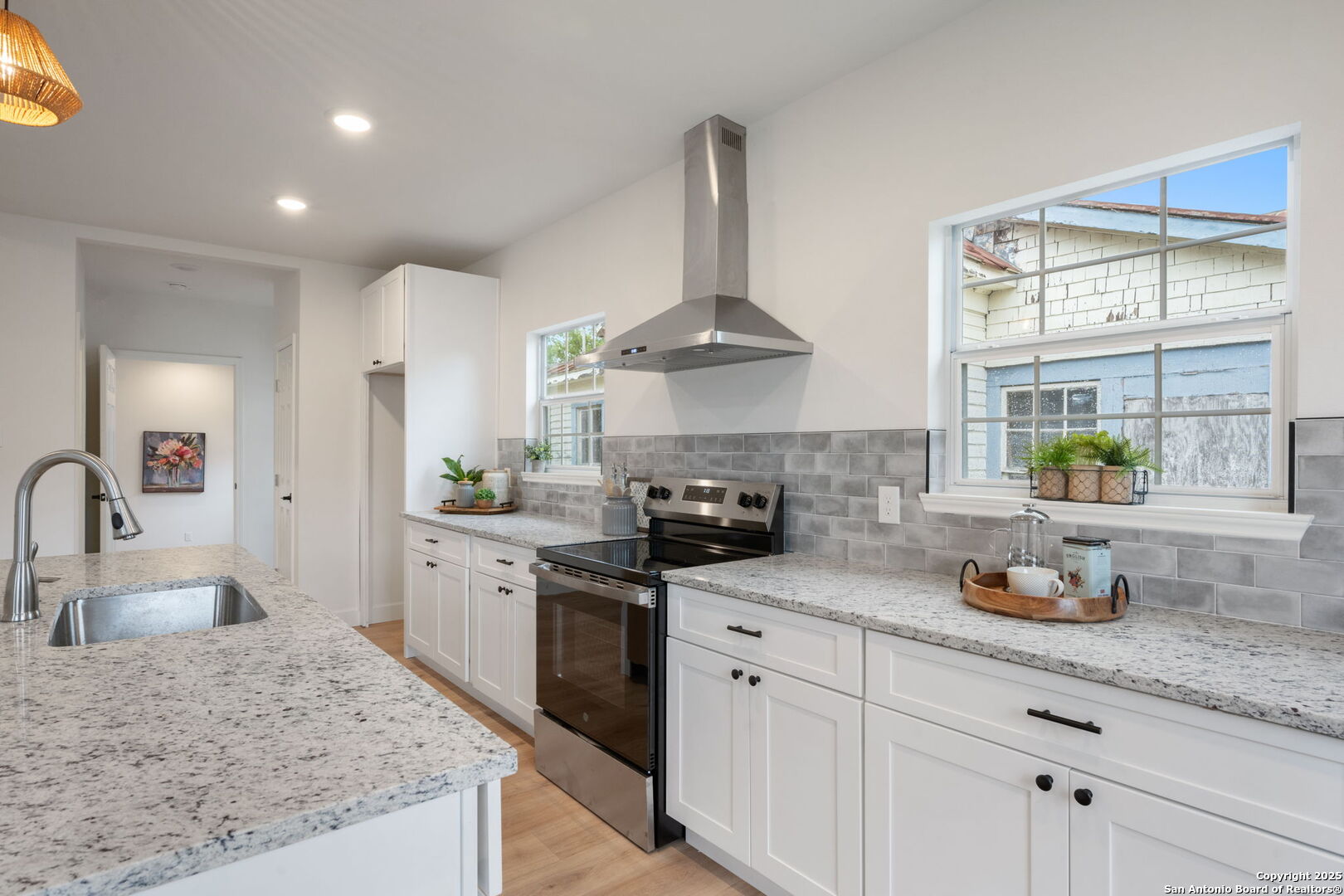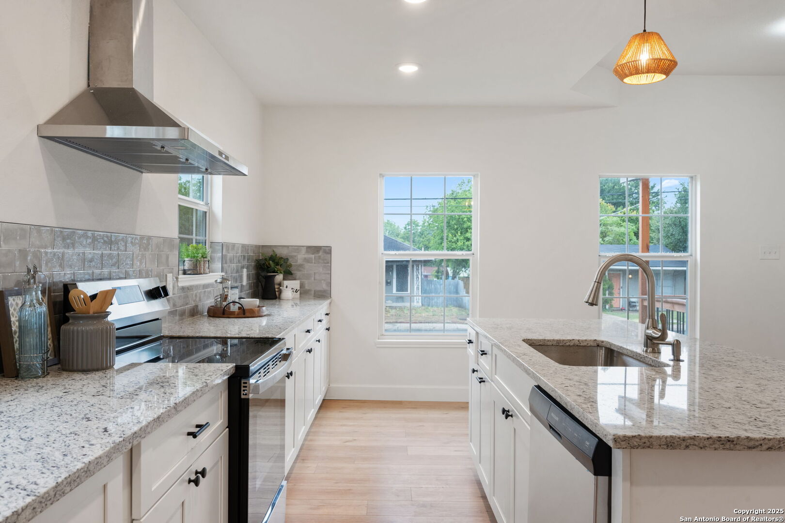 This beautifully renovated home has been thoughtfully reimagined from the studs up, boasting a sleek, modern open-concept design that's perfect for entertaining. The expansive island kitchen is a chef's dream, featuring brand-new appliances, abundant counter space, and generous storage. Enjoy year-round comfort with a brand-new HVAC system and the efficiency of a tankless water heater. Unwind in the oversized primary suite, complete with a luxurious, spa-inspired full bath. Spacious secondary bedrooms offer flexibility for guests, family, or a home office. Step outside to a large backyard with a brand-new deck-ideal for hosting gatherings or relaxing in your private retreat. Located just minutes from Dignowity Hill and downtown.