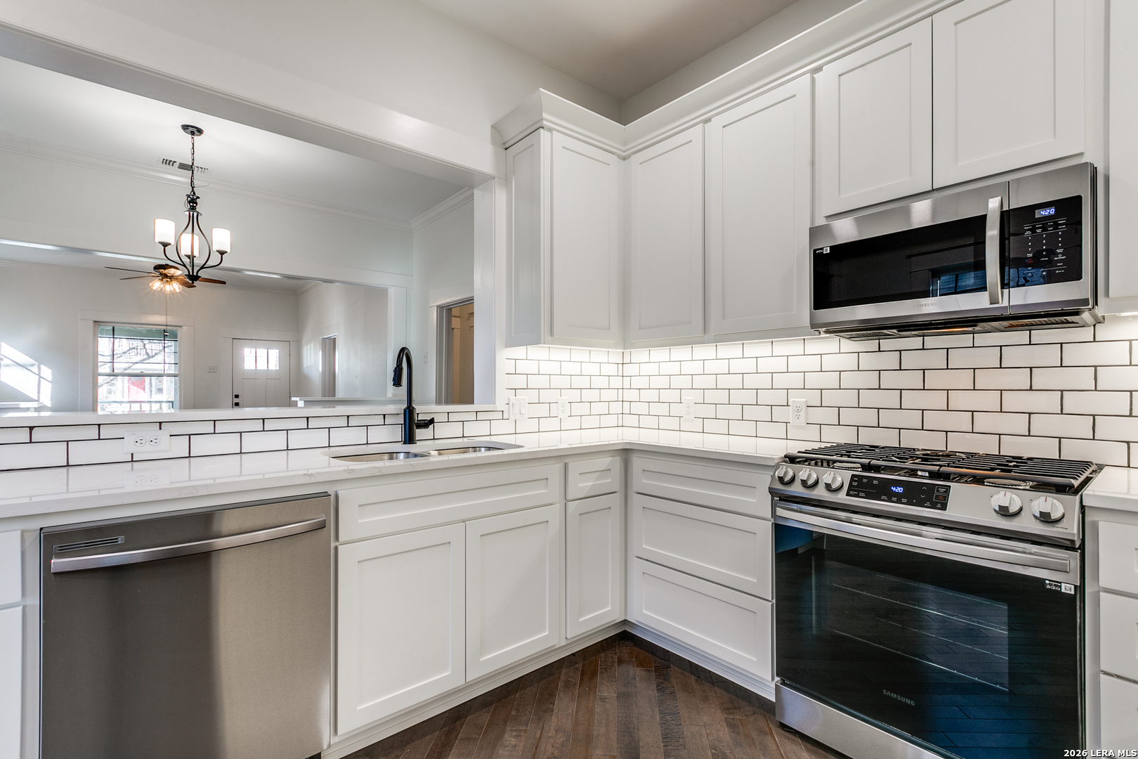 Located in San Antonio's desirable Mahncke Park neighborhood, this thoughtfully updated 2-bedroom, 2-bath home blends 1928 charm with a high-quality, professionally executed renovation just minutes north of downtown. An inviting oversized front porch leads into a bright interior featuring high ceilings, new hardwood floors, custom cabinetry, and new kitchen appliances including a gas range, microwave, and dishwasher. The primary suite offers an office/sitting area and a fully renovated ensuite bathroom with a polished, modern finish-out. A spacious laundry room provides excellent flexibility for additional storage or pantry use. Recent improvements include fresh interior and exterior paint and a new back deck with covered patio, extending the home's usable living space. With its central location near parks, museums, restaurants, and major corridors, and a renovation that reflects careful planning and craftsmanship, 204 Queen Anne Court is truly movein ready and exceptionally well done.